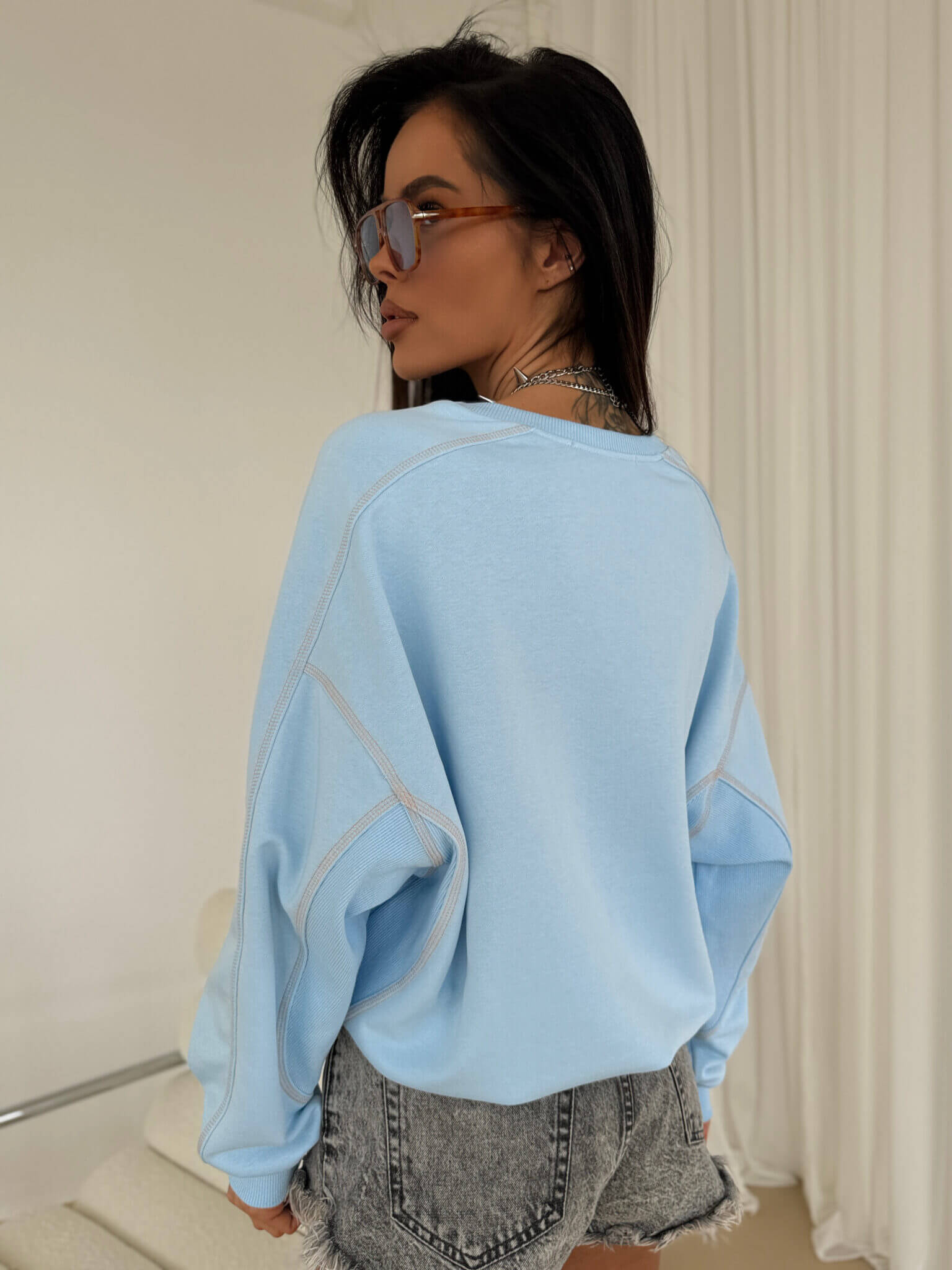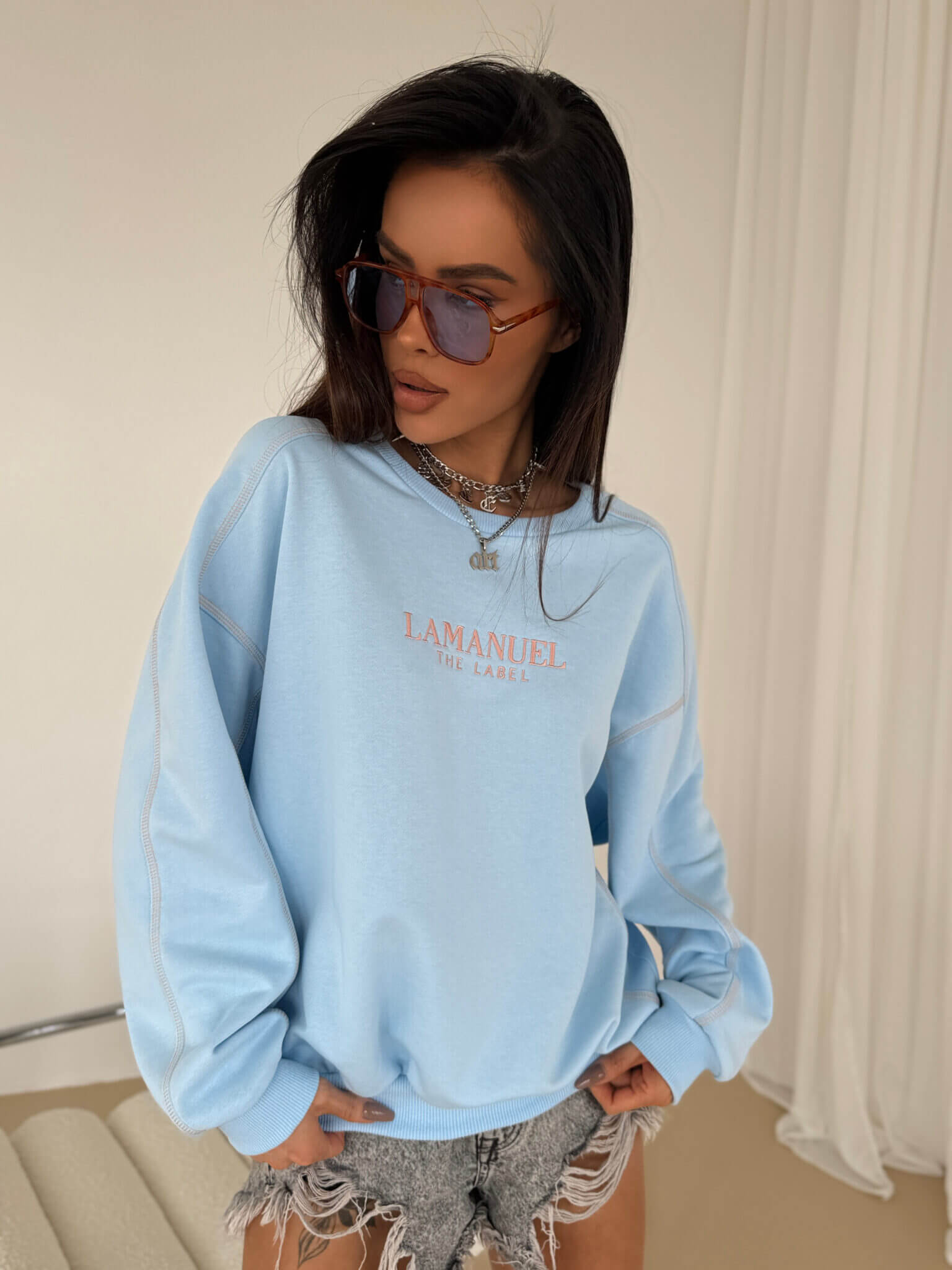 Bluza o kroju oversize BLOSSOM LA MANUEL z szerokimi, opadającymi rękawami i delikatnie wydłużonym tyłem. Wykonana z miękkiego, przyjemnego w dotyku materiału, który zapewnia komfort noszenia przez cały dzień. Z przodu subtelne haftowane logo, dodające całości minimalistycznego, ale eleganckiego charakteru. Dekolt, mankiety i dół bluzy wykończone ściągaczami, co zapewnia dobre dopasowanie i zapobiega deformacji materiału. Charakterystycznym elementem są kontrastowe przeszycia wykonane kolorową nicią, które podkreślają konstrukcję bluzy i dodają jej unikalnego wyglądu. Uniwersalny fason sprawia, że świetnie komponuje się zarówno ze spodniami dresowymi, jak i jeansami czy spódnicą, tworząc casualowe i stylowe zestawy na każdą okazję.