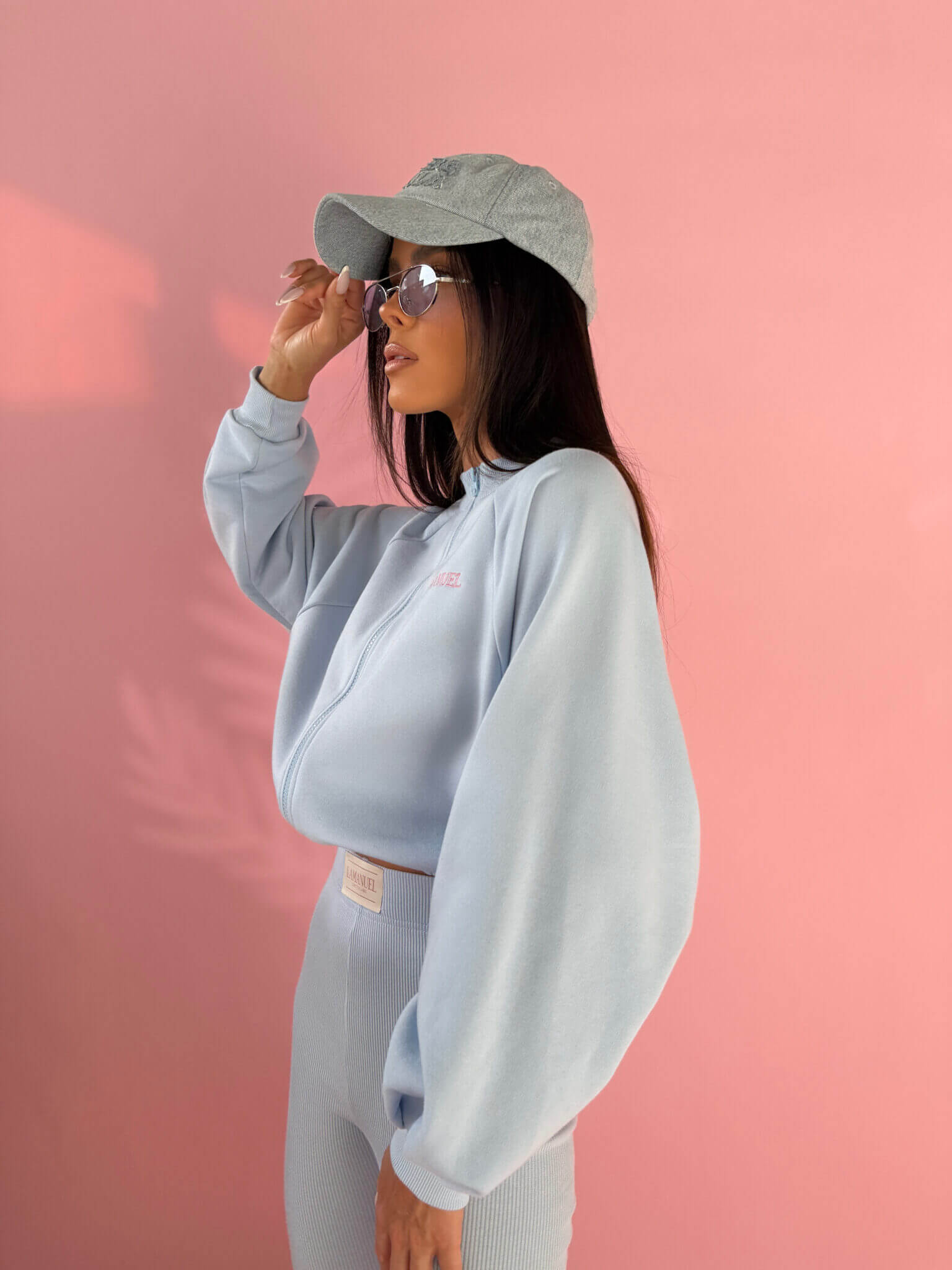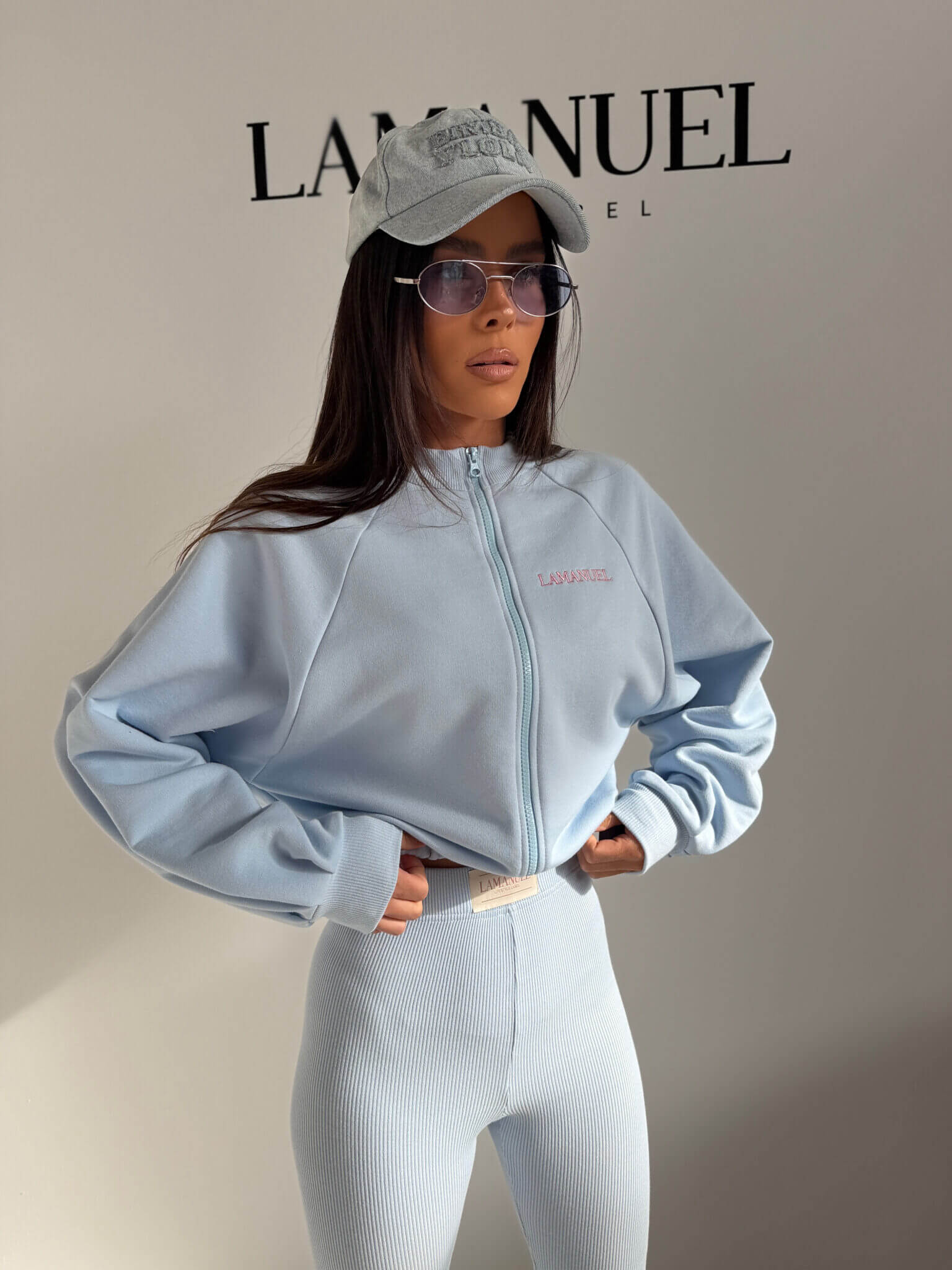 Bluza DOLL LAMANUEL o krótszej, lekko bombkowej formie zapinana na zamek, z elastycznym dołem i miękkimi ściągaczami przy rękawach. Wykonana z dzianiny typu pętelka – przyjemnej w dotyku, oddychającej i komfortowej w noszeniu. Ma subtelny haft na wysokości piersi, który nadaje jej dopracowanego charakteru. Świetnie układa się na sylwetce i buduje nowoczesne proporcje.
