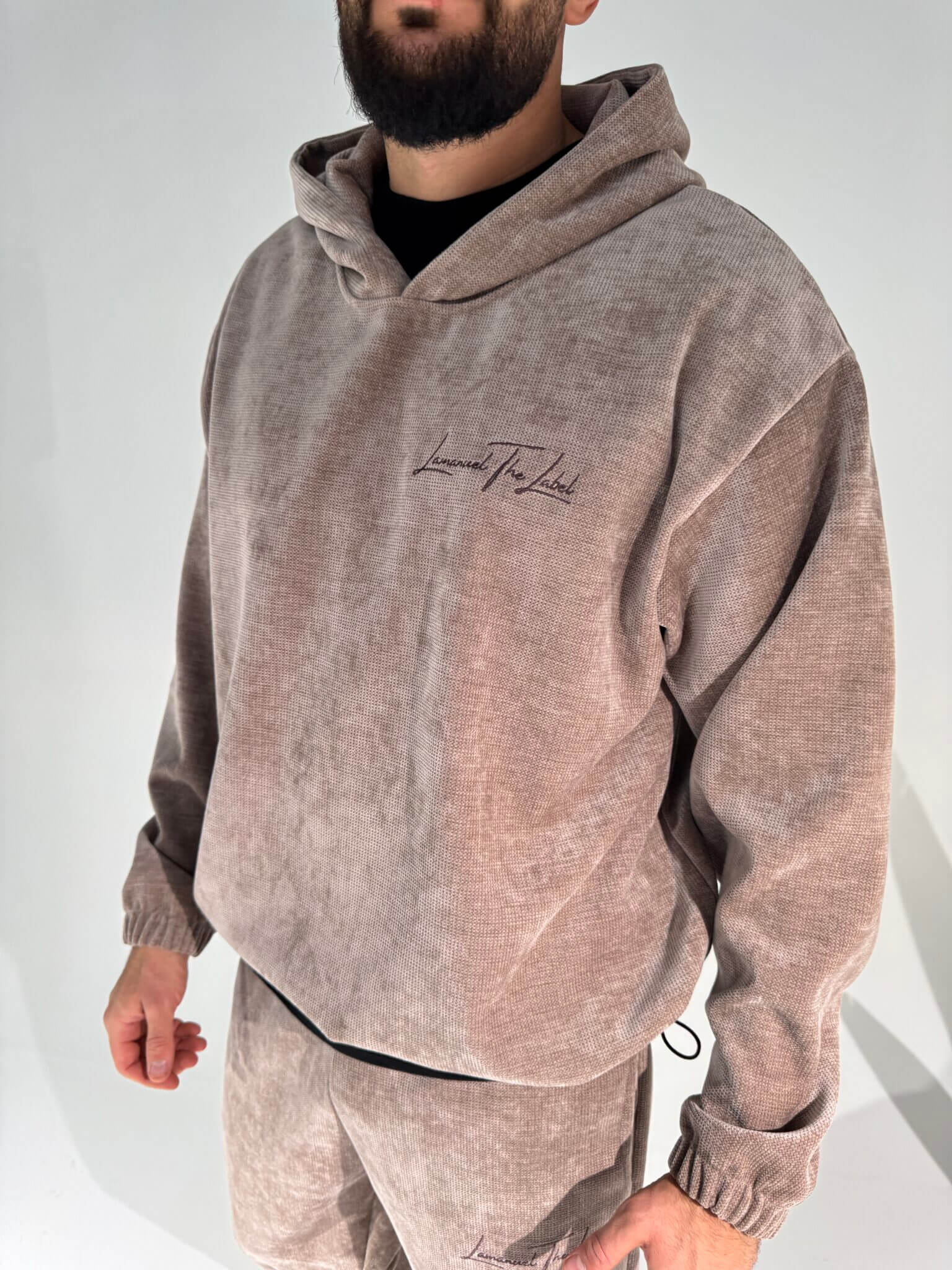 Welurowa bluza z kapturem, która pasuje do stylu après-ski, ale działa też w mieście. Miękka, ciepła, wygodna – zakładasz ją i czujesz, że jesteś dokładnie tam, gdzie powinieneś. Luźny krój, ściągacze, subtelny haft. Idealna po całym dniu na mrozie albo na spokojny wieczór z playlistą zimowych klimatów. Styl domowo-wyjazdowy z klasą.