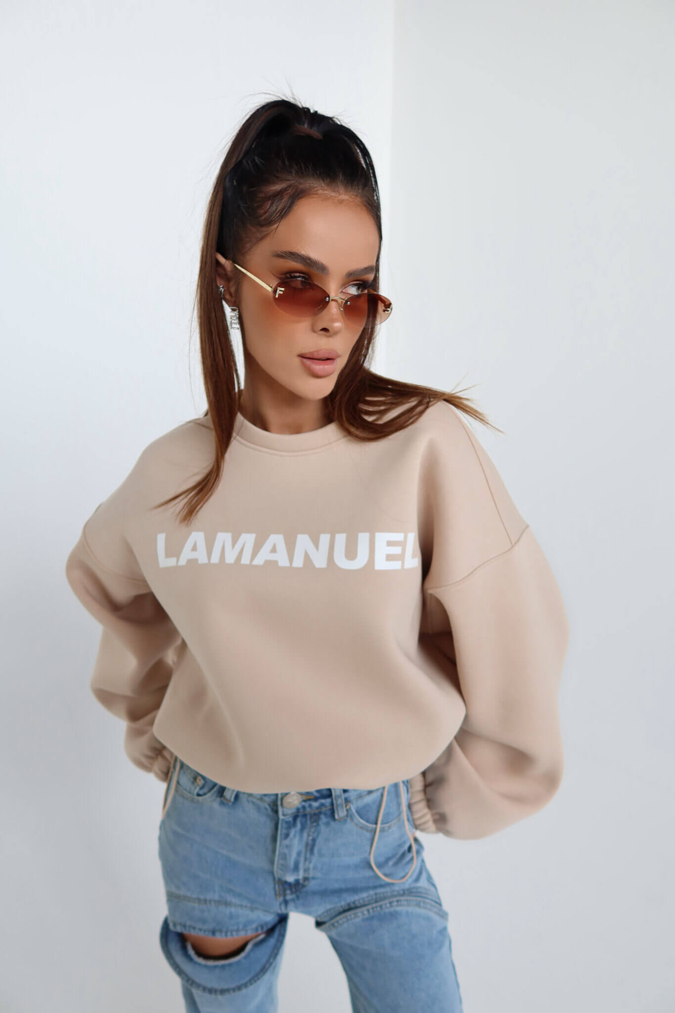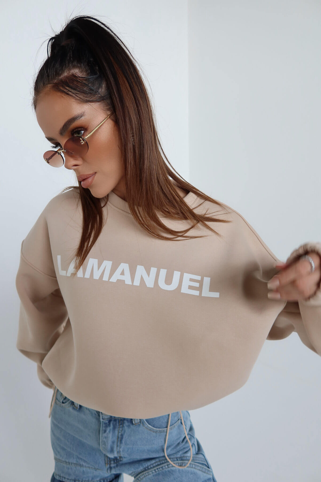 Bluza NOIR LAMANUEL o luźnym, oversize’owym kroju z efektownymi, szerokimi rękawami i klasycznym dekoltem. Dół regulowany za pomocą ukrytego tunelu ze ściągaczem – można nosić ją w wersji klasycznej lub podciągniętą, z efektem crop. Uszyta z wysokogatunkowej bawełny z drapanym wnętrzem, która daje poczucie miękkości i komfortu. Konstrukcja pozwala na swobodę ruchu, a detale takie jak elastyczne mankiety czy starannie wykończone szwy nadają jej charakteru premium. Model idealny zarówno do stylizacji sportowych, jak i miejskich.