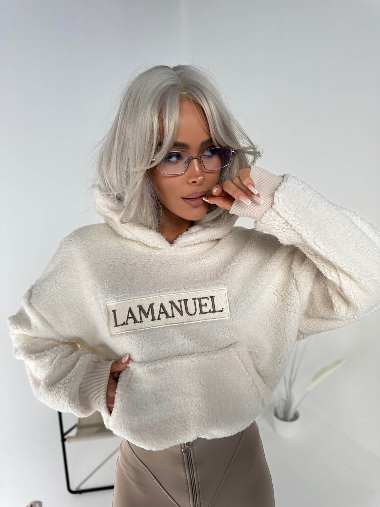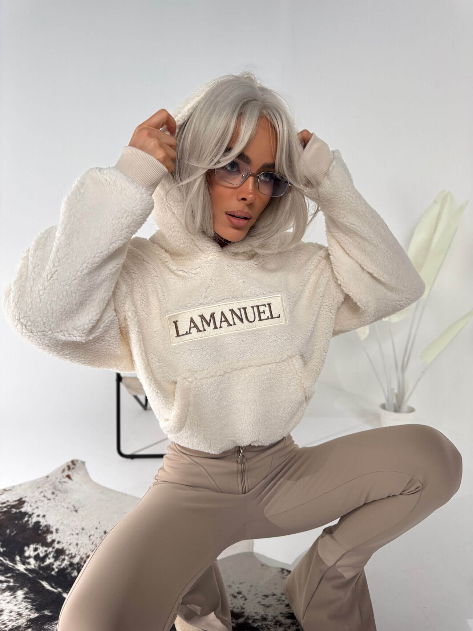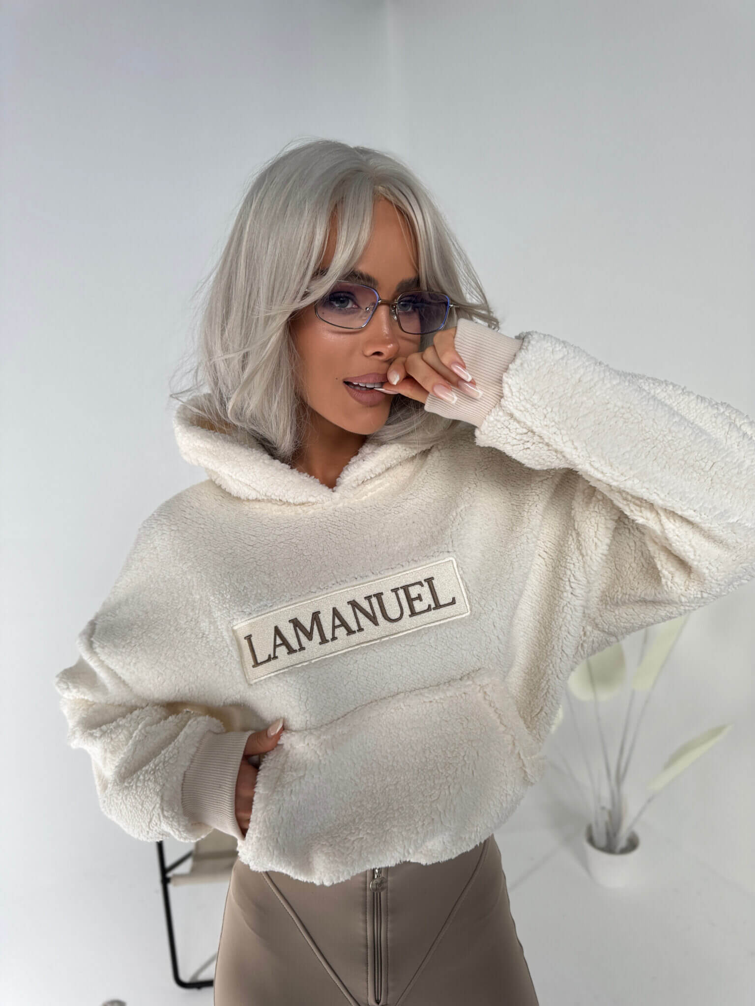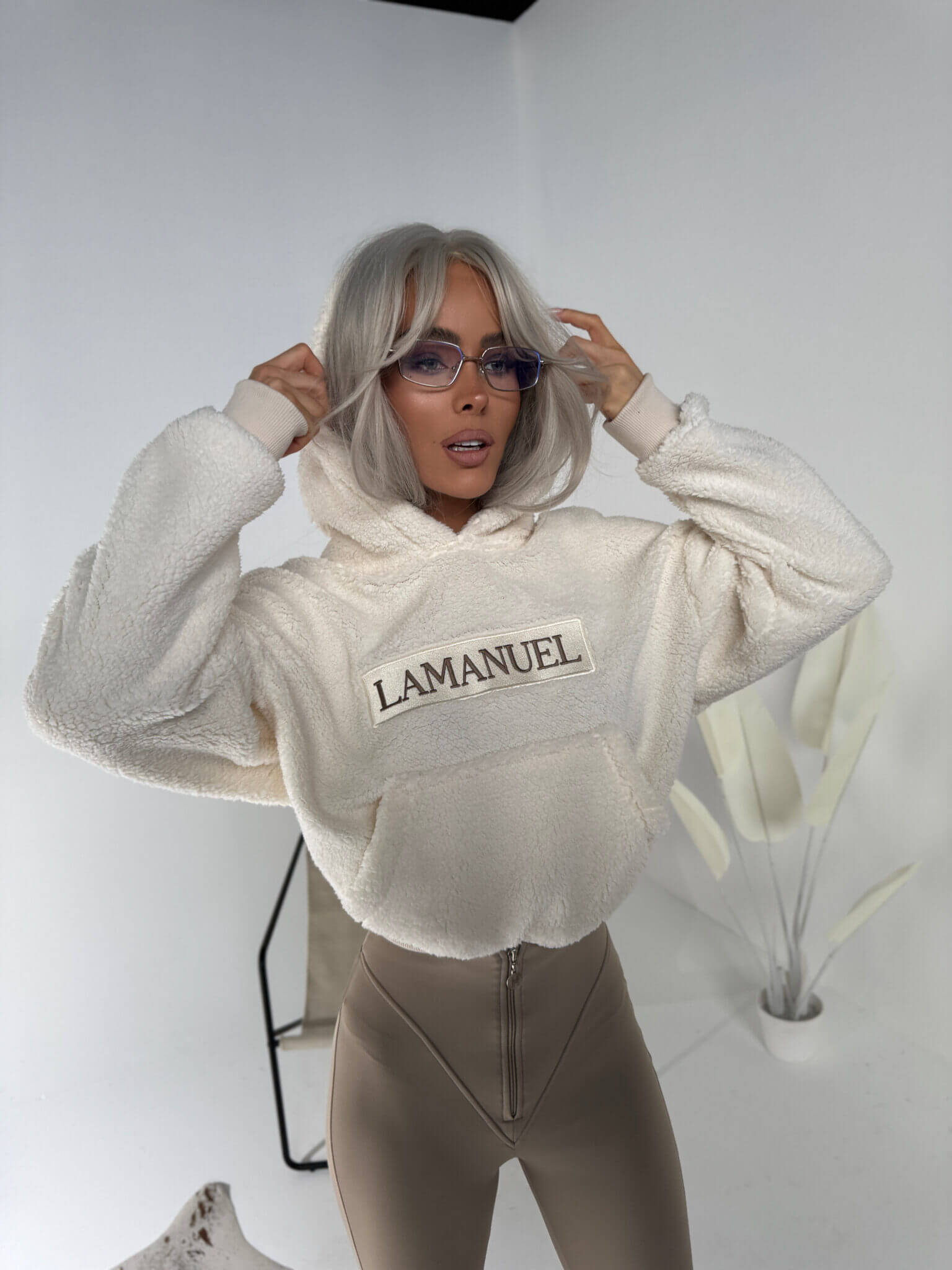 Bluza PUFFY LAMANUEL z miękkiego baranka, która otula jak koc i wygląda tak, że nie chcesz jej zdejmować. Oversize’owy krój bluzy daje luz, a naszywka z logo na przodzie dodaje charakteru – nie za głośno, ale konkretnie. Kieszeń typu kangur to klasyk, który tu gra nie tylko praktycznie, ale też stylowo. To bluza, którą wrzucasz na siebie z rana i nagle dzień staje się przyjemniejszy.