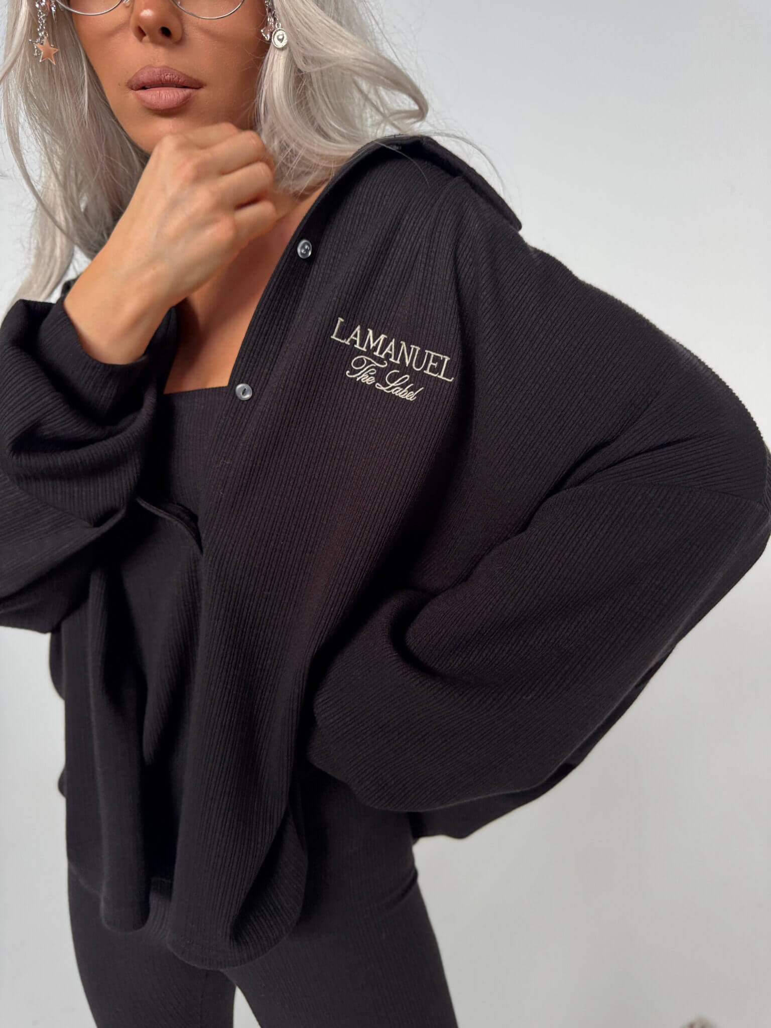 Bluza SEPARATE LAMANUEL z prążkowanej dzianiny, która wygląda jak totalny chill, ale ma w sobie coś więcej. Rozpinana przy dekolcie, z obszernym kapturem i luźnym krojem – stworzona do warstw, do luzu, do noszenia “niby od niechcenia”, ale z efektem. Haft z logo na piersi robi tu całą robotę – subtelny, ale przyciąga oko. To ten typ bluzy, którą wrzucasz na siebie i nie musisz już nic kombinować. Styl sam się broni.