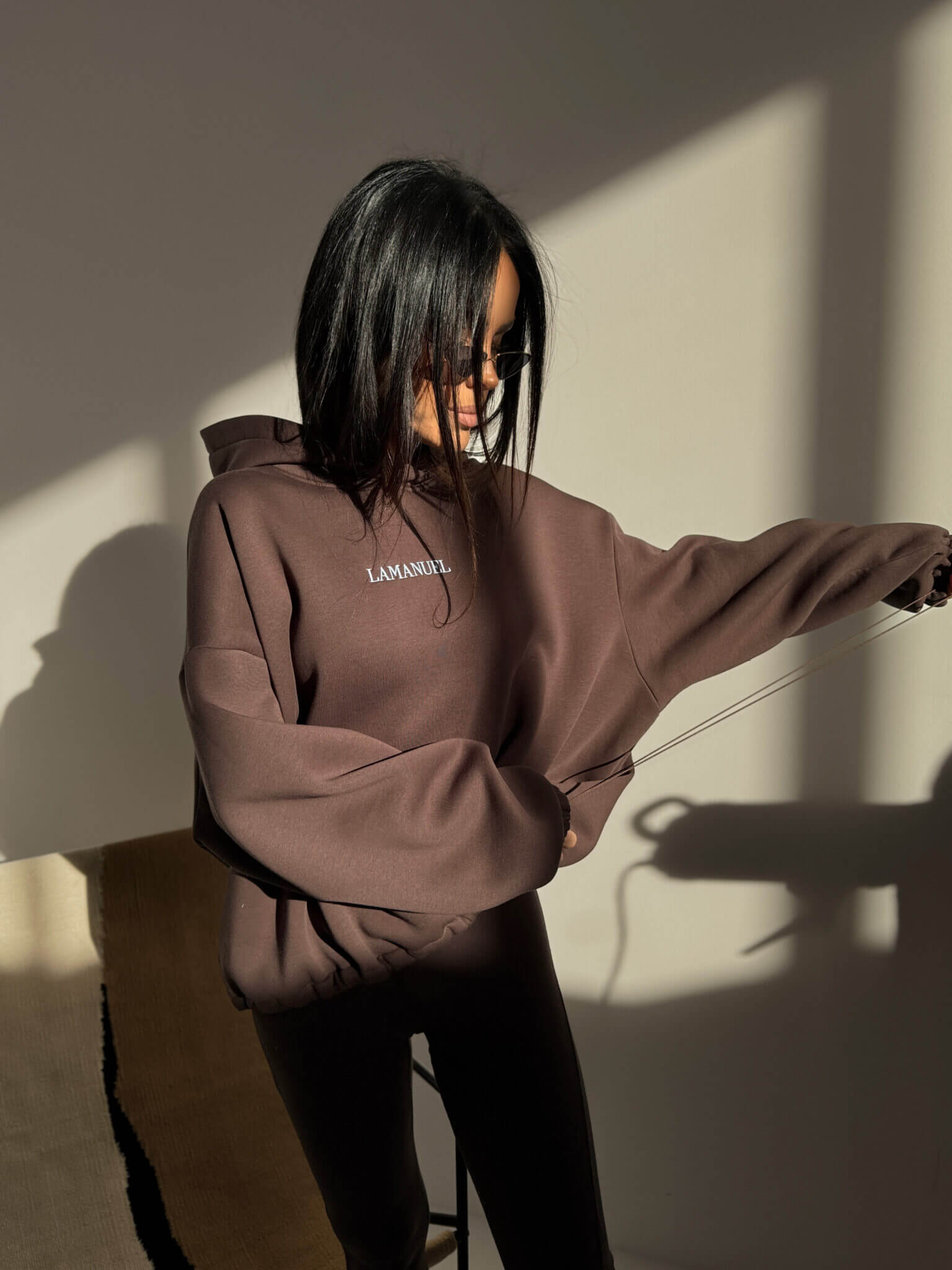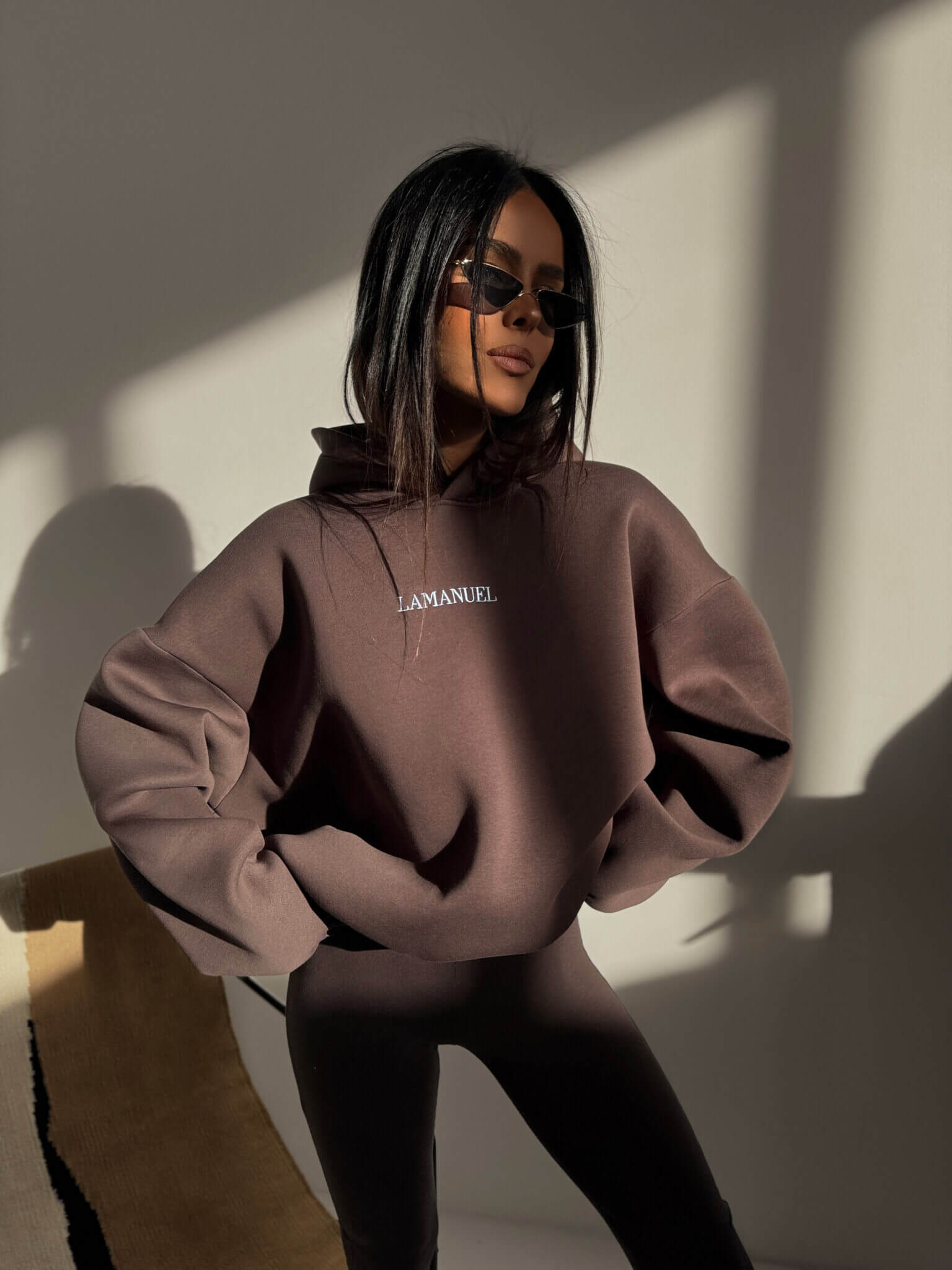 Bluza TONE LAMANUEL z grubszej, drapanej dzianiny daje totalny komfort i porządne wykończenie, a klasyczna długość z regulacją na dole pozwala nosić ją tak, jak lubisz — luźno, prosto albo lekko podciągniętą, z przodu logo, z tyłu konkretny tekst, który mówi wszystko za Ciebie.