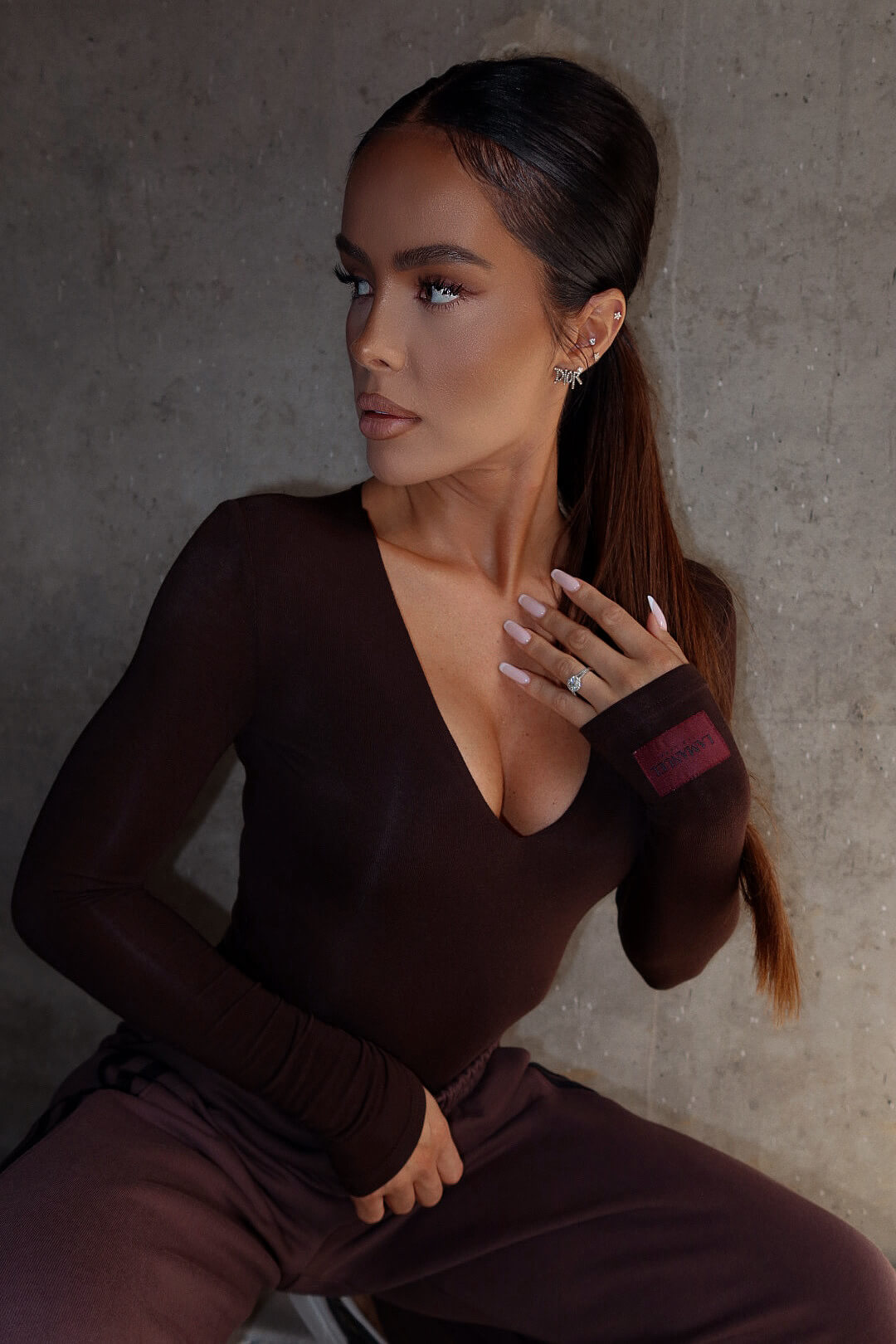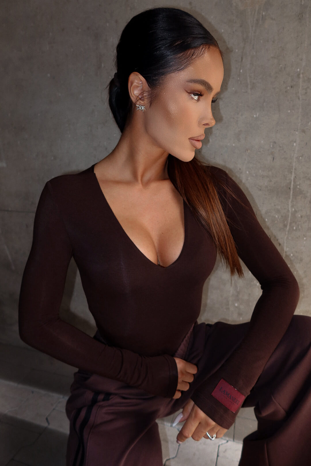 Body SOFTIE LAMANUEL wykonane z wyjątkowo miękkiej, sweterkowej dzianiny, która zapewnia komfort noszenia i przyjemne otulenie. Przód podszyty dodatkową warstwą materiału dla większego komfortu i lepszego krycia. Dopasowany fason pięknie układa się na sylwetce, a elastyczny materiał dopasowuje się do ciała bez uczucia ucisku. Model z głębokim dekoltem w kształcie litery V oraz przedłużonym rękawem z naszywką z logo na mankiecie. Zapinane na haftki w kroku, z wykończeniem typu string – idealne pod dopasowane spodnie czy spódnice. Uniwersalna baza do codziennych i wieczorowych stylizacji.