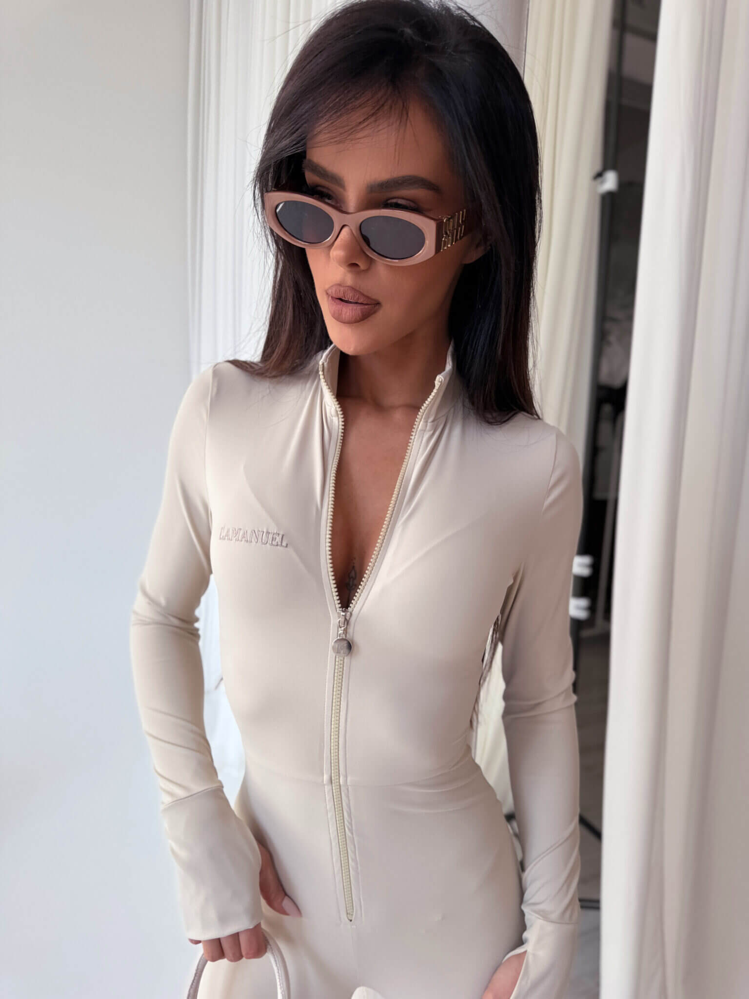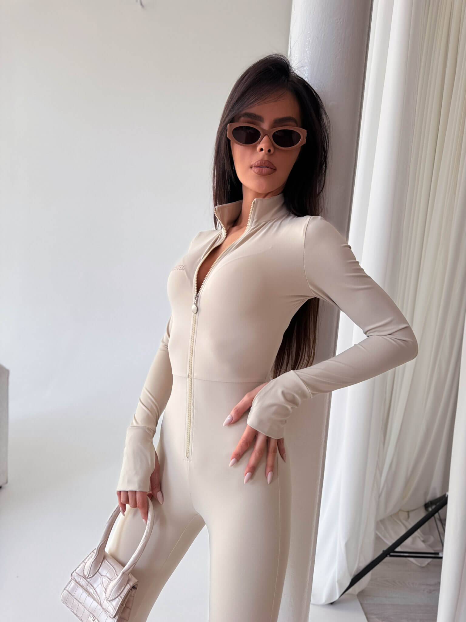 Stylowy i kobiecy kombinezon z lycry RUMORS LAMANUEL, który podkreśla sylwetkę dzięki dopasowanemu krojowi. Wykonany z elastycznego materiału, idealnie przylega do ciała, zapewniając wygodę i swobodę ruchów. Długi rękaw dodaje elegancji, a praktyczny suwak z przodu ułatwia zakładanie i pozwala regulować głębokość dekoltu. Świetnie sprawdzi się zarówno na co dzień, jak i na wieczorne wyjścia. Wystarczy dodać ulubione buty i akcesoria, by stworzyć modny, przyciągający spojrzenia look!