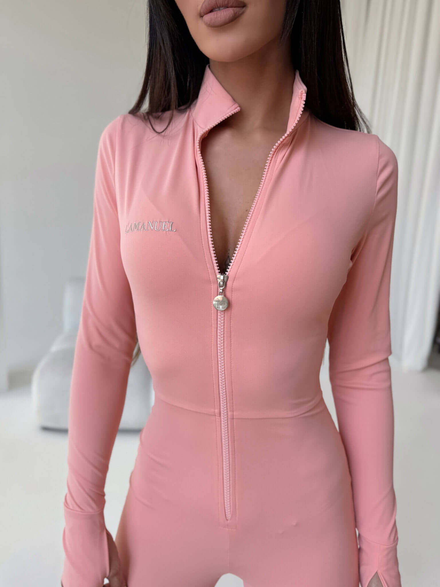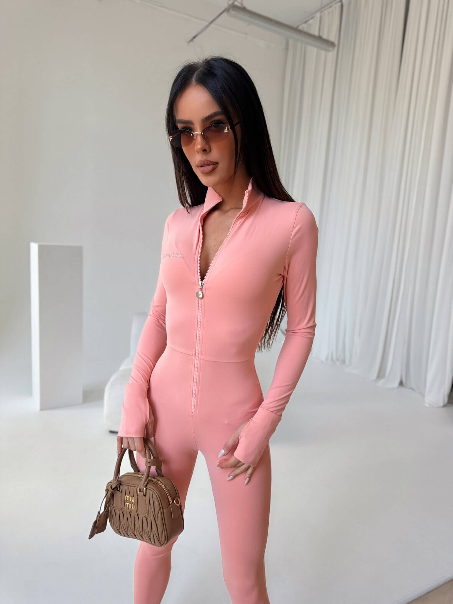 Stylowy i kobiecy kombinezon z lycry RUMORS LAMANUEL, który podkreśla sylwetkę dzięki dopasowanemu krojowi. Wykonany z elastycznego materiału, idealnie przylega do ciała, zapewniając wygodę i swobodę ruchów. Długi rękaw dodaje elegancji, a praktyczny suwak z przodu ułatwia zakładanie i pozwala regulować głębokość dekoltu. Świetnie sprawdzi się zarówno na co dzień, jak i na wieczorne wyjścia. Wystarczy dodać ulubione buty i akcesoria, by stworzyć modny, przyciągający spojrzenia look!