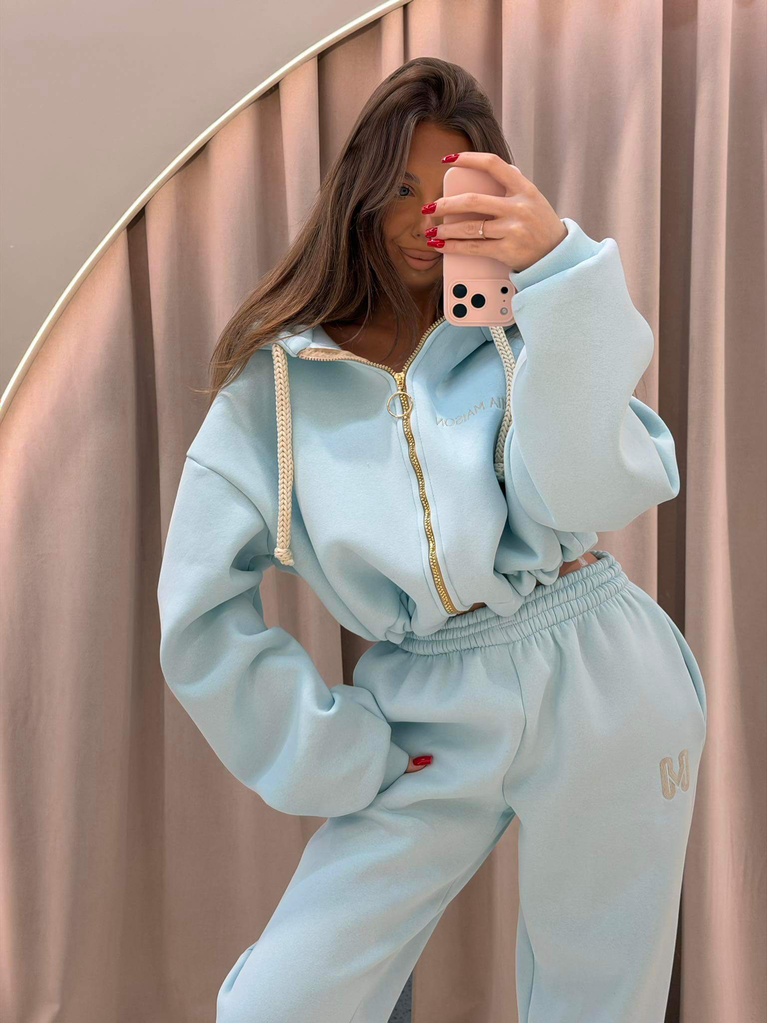 Stylowy, 3-częściowy komplet dresowy idealny na co dzień, jak i na luźniejsze wyjścia. W skład zestawu wchodzi: