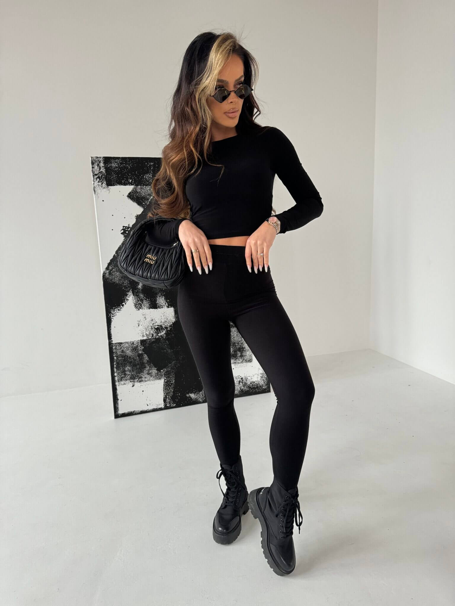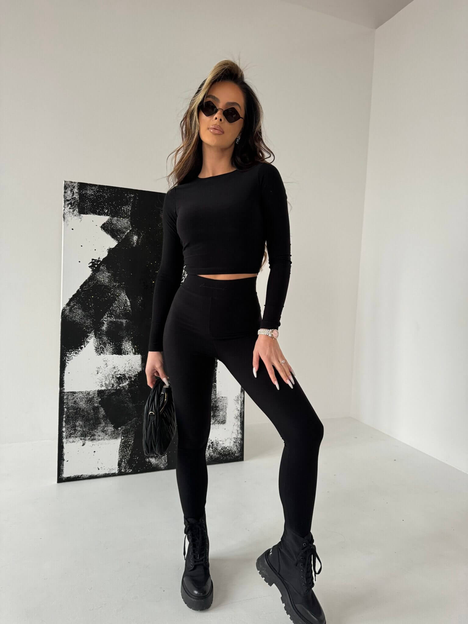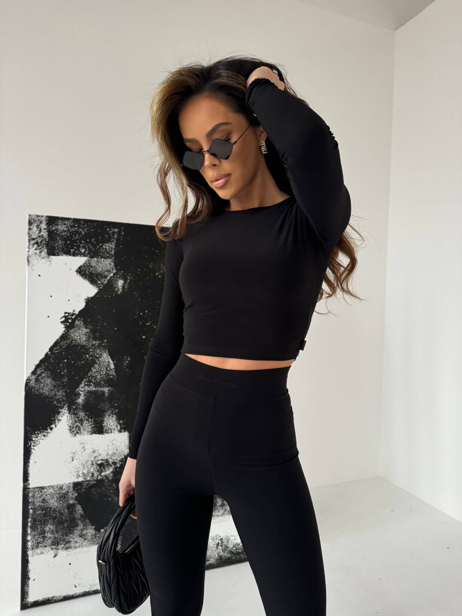 Komplet damski ALLURE LA MANUEL, zestaw składa się z dopasowanego topu o długim rękawie i nieco krótszym kroju, który podkreśla talię, zapewniając modny i zmysłowy wygląd. Top wykonany jest z elastycznego, oddychającego materiału, który idealnie dopasowuje się do sylwetki, podkreślając jej atuty. Do kompletu dołączone są legginsy z wysokim stanem, które pięknie modelują sylwetkę i zapewniają pełen komfort noszenia. Pas legginsów zdobi haftowane logo na elastycznej gumie, dodając całości sportowego charakteru i oryginalności.