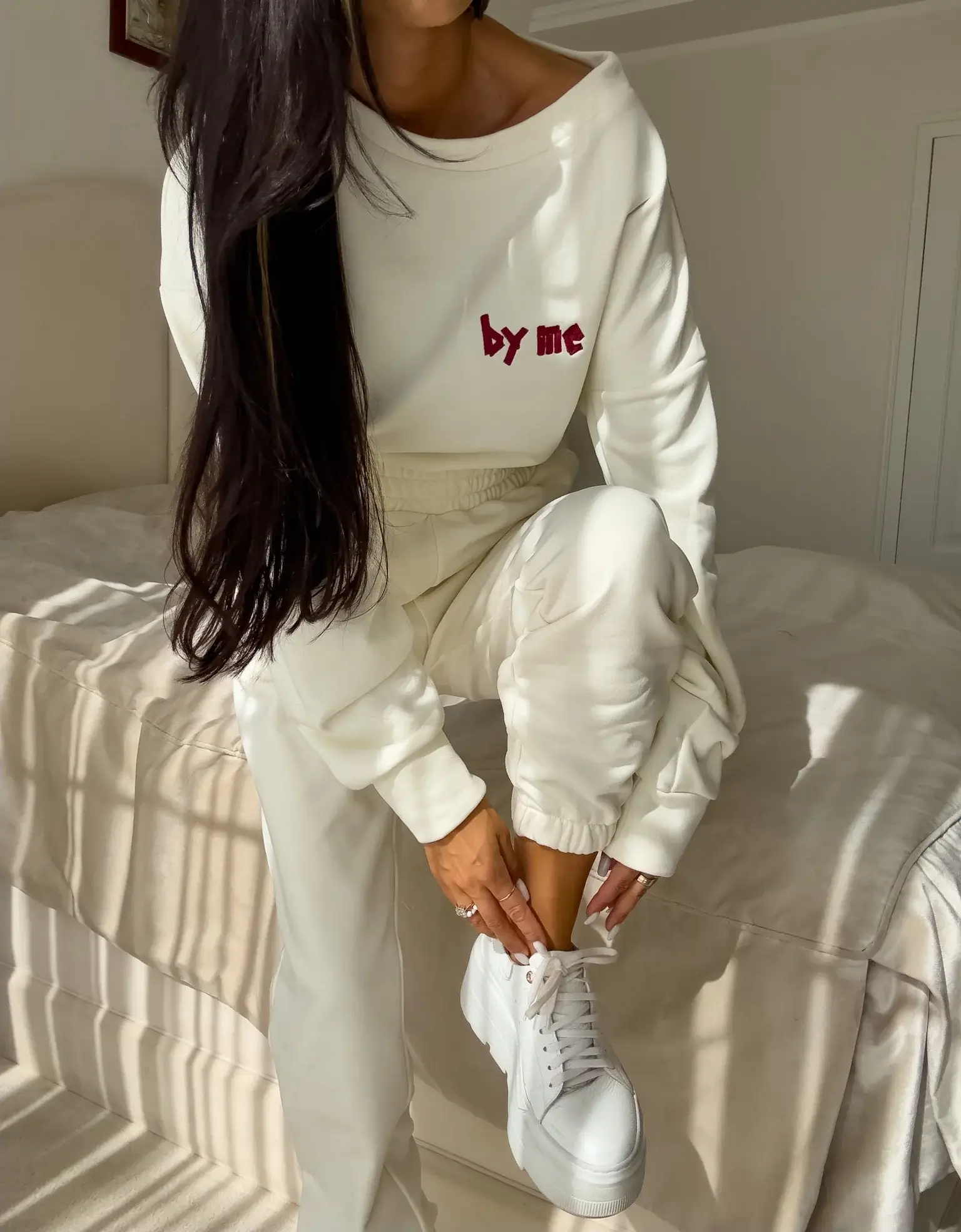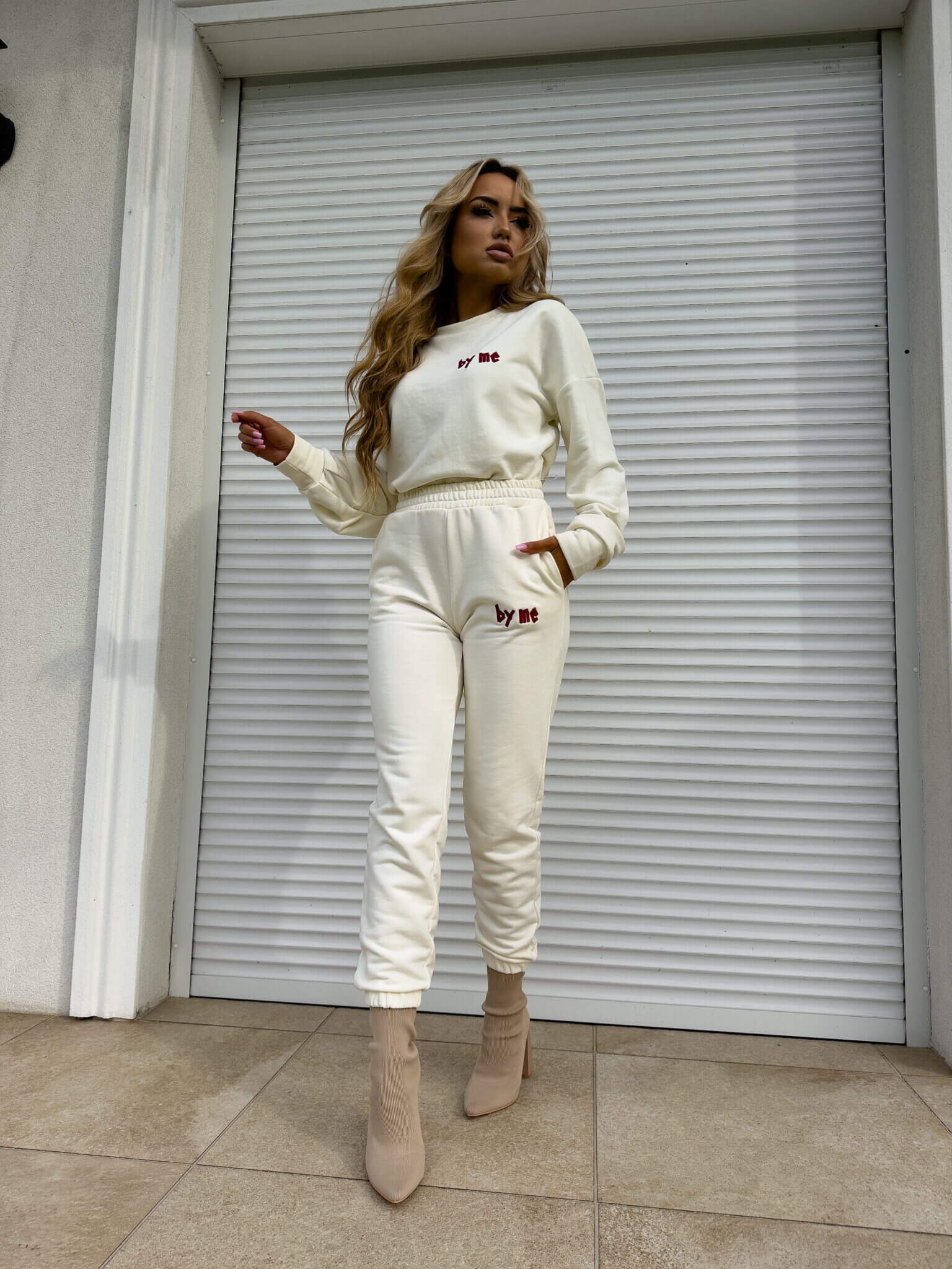 Komplet Avenue składający się z bluzy o luźnym kroju, z długim rękawem. Spodnie mają gumki na nogawkach i w pasie oraz dwie wbudowane kieszenie. Z logowaniem na bluzie i spodniach.
