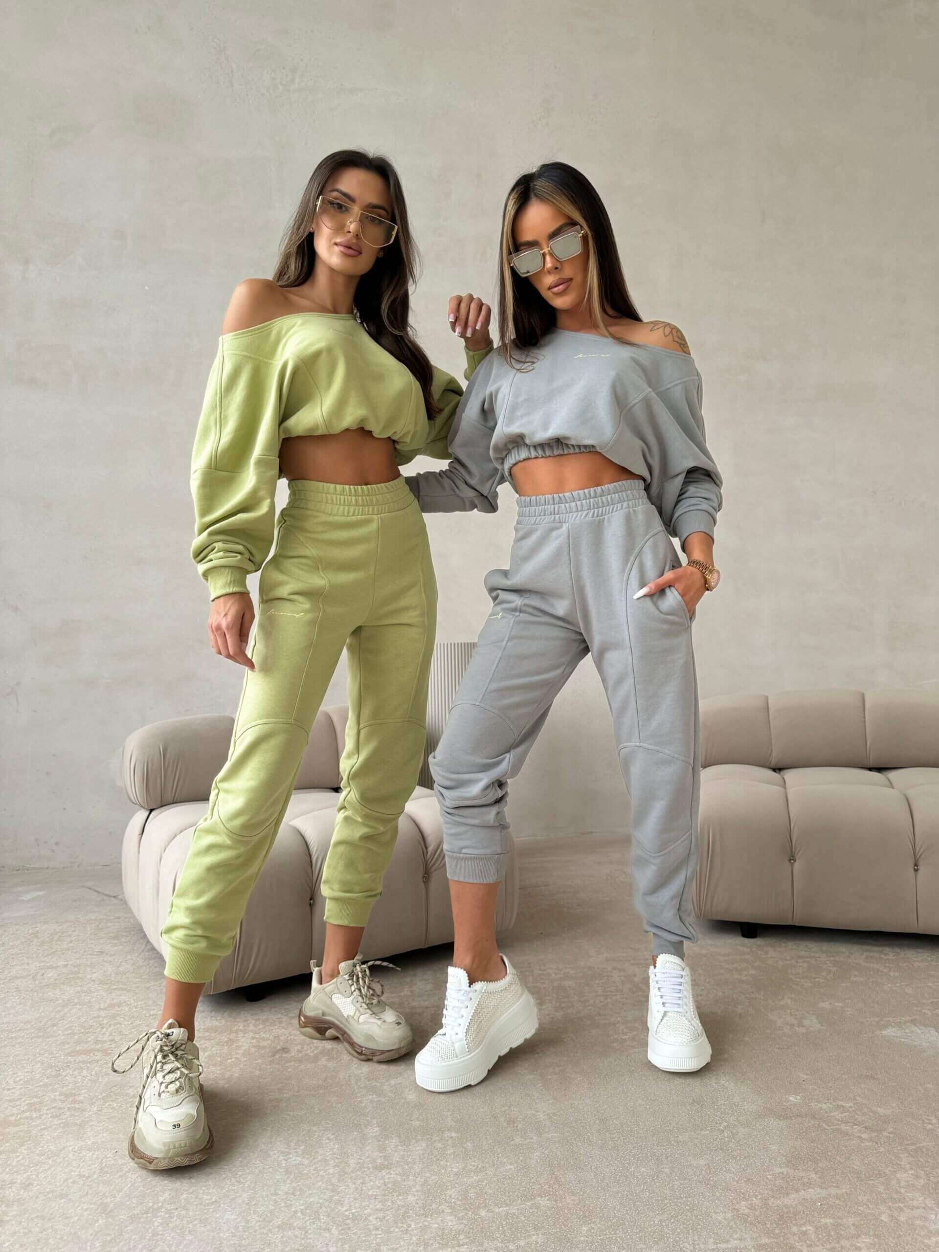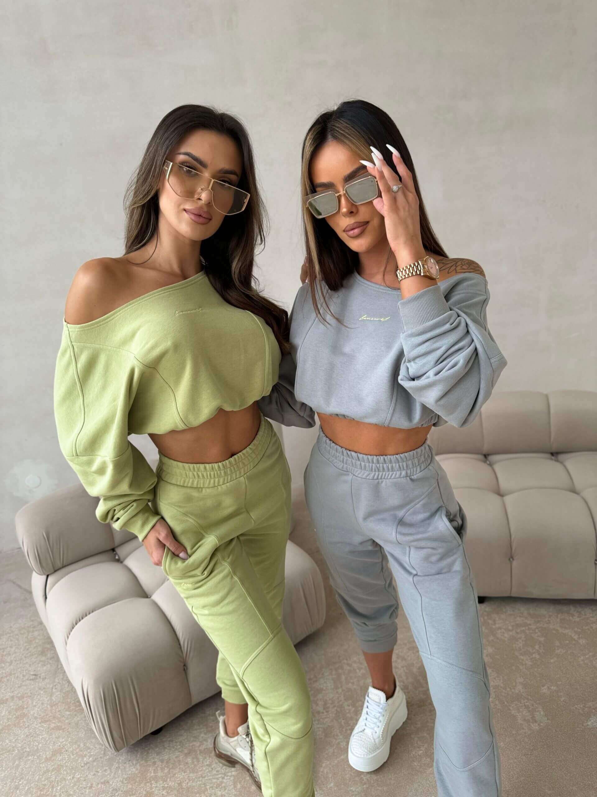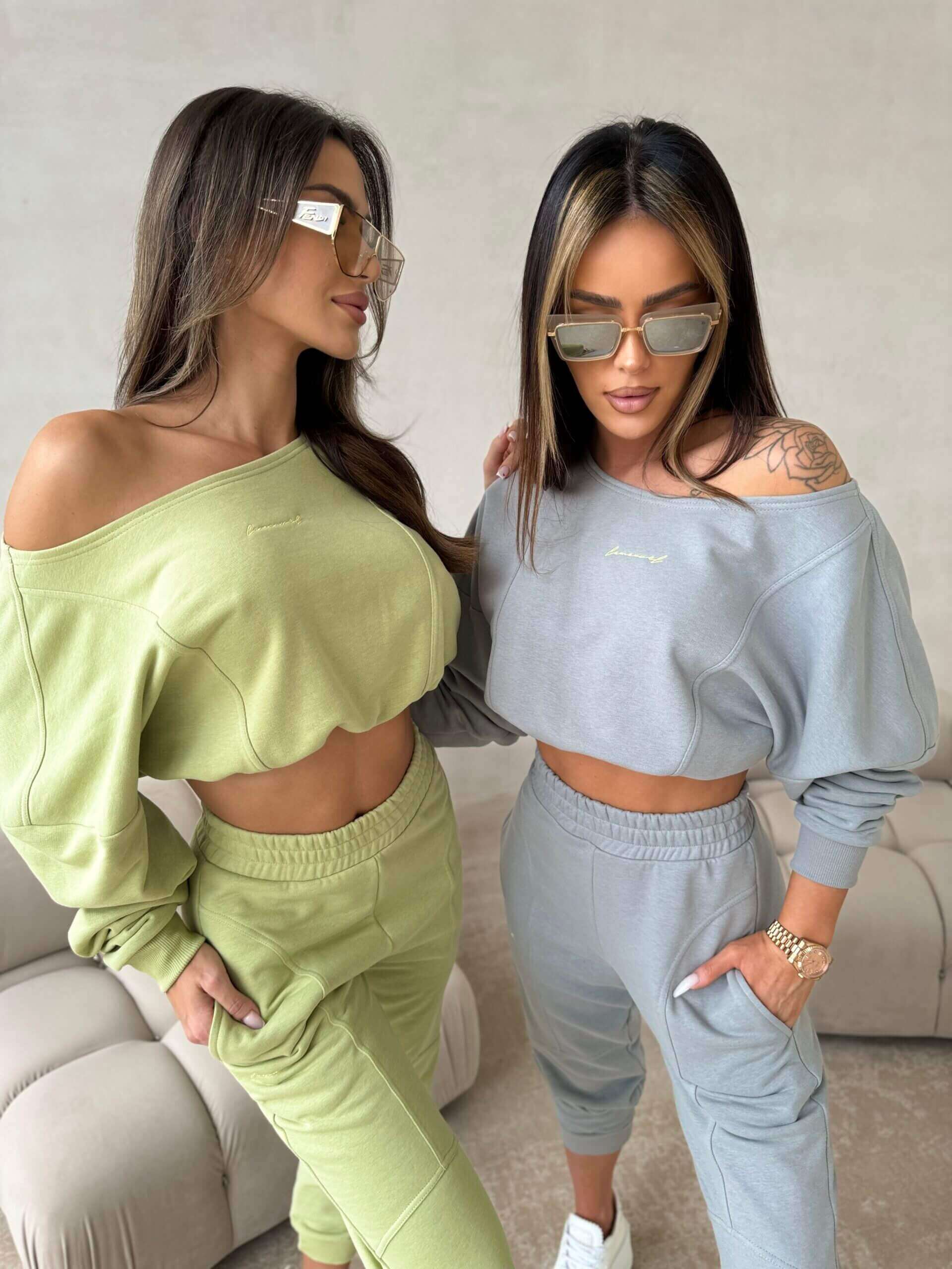 Komplet dresowy BIG ENERGY La Manuel , składający się z bluzy i spodni. Krótka bluza z możliwością noszenia na jedno ramię to nowoczesny akcent, który nadaje zestawowi lekkości i subtelnej nonszalancji. Jej zakończenie ściągaczem idealnie odzwierciedla element miejskiego stylu. Spodnie dresowe z kieszeniami zdobione przeszyciami będą idealnym uzupełnieniem stylizacji. To połączenie wygody, funkcjonalności i nowoczesnej estetyki.