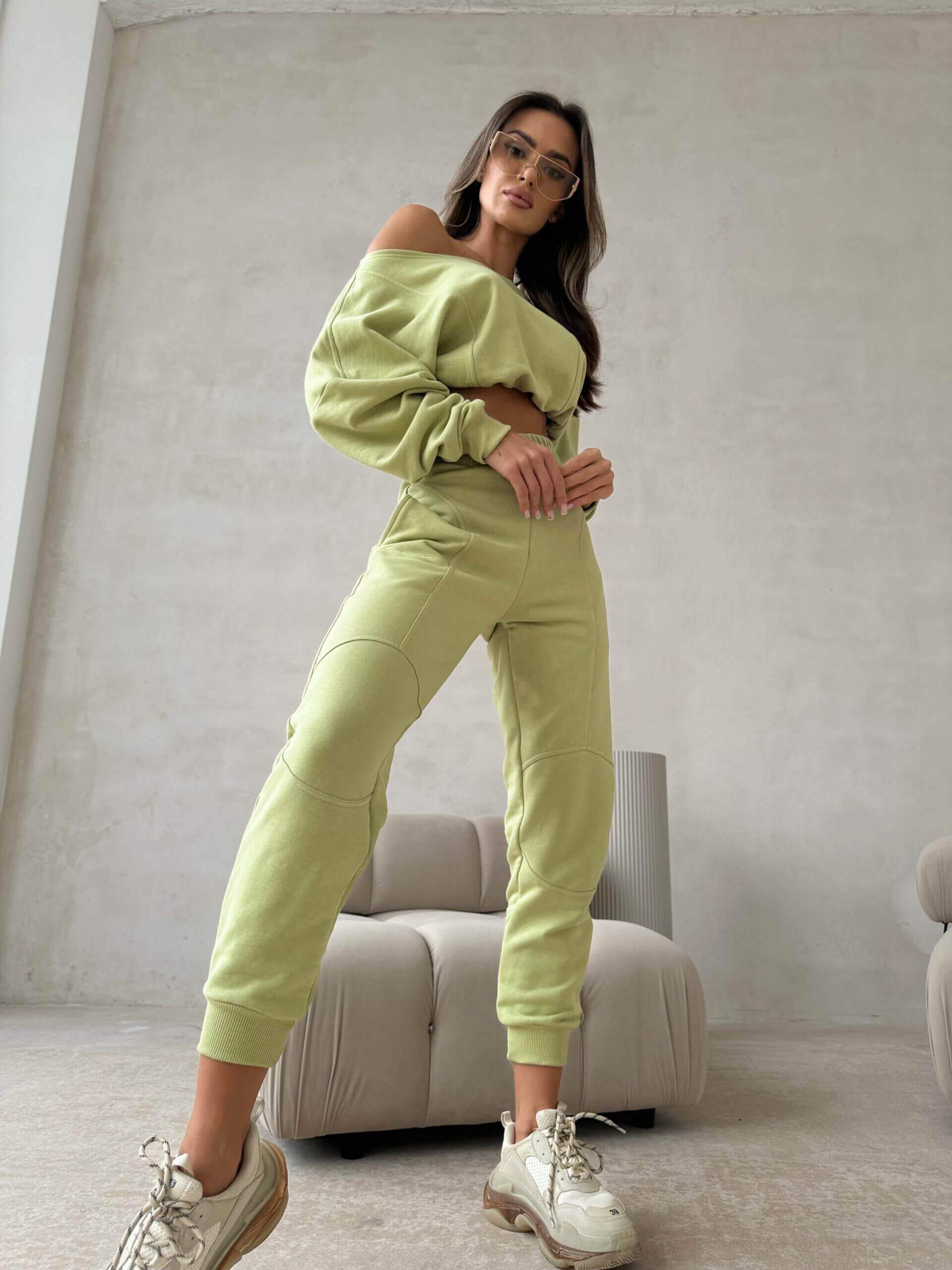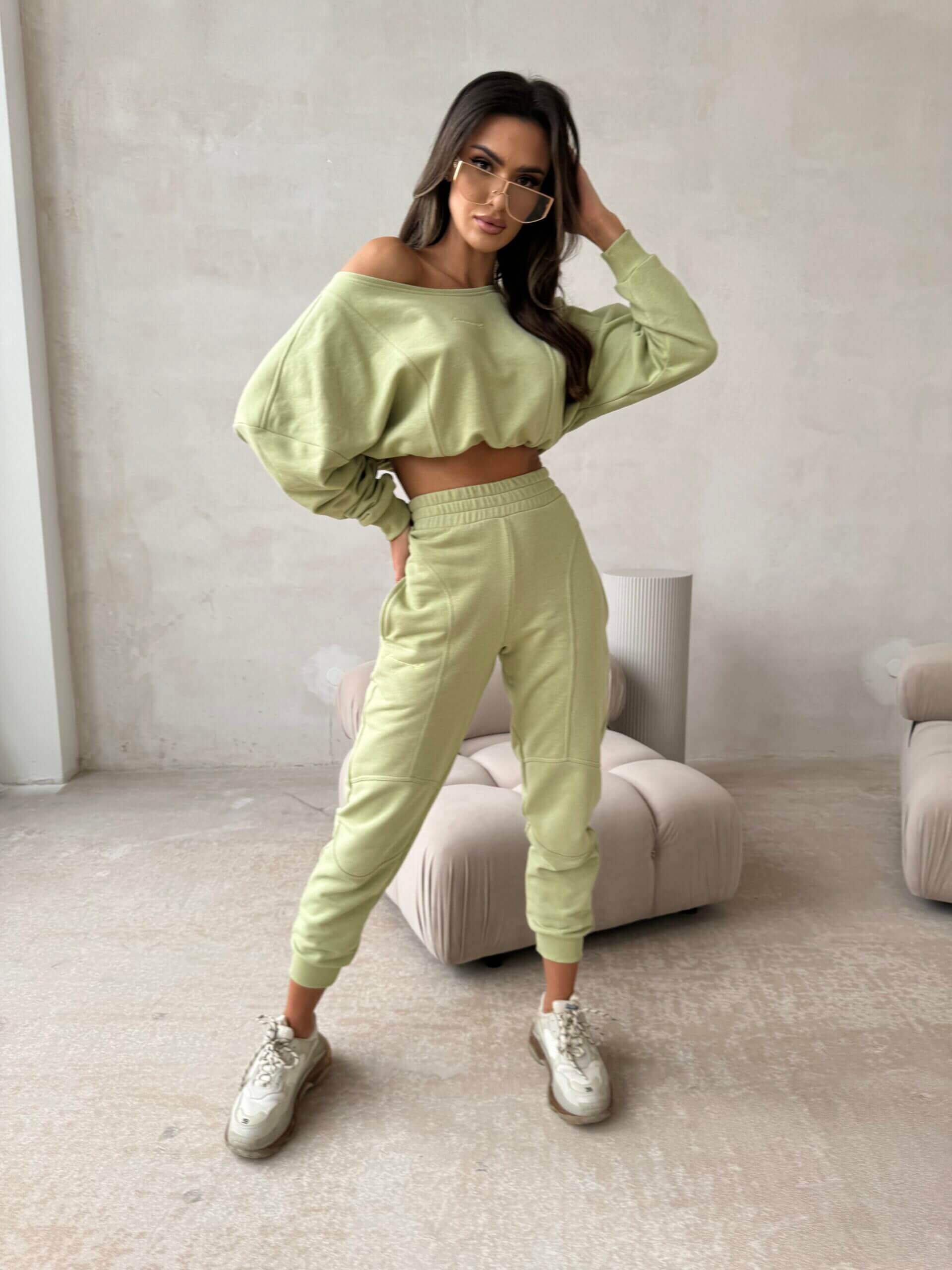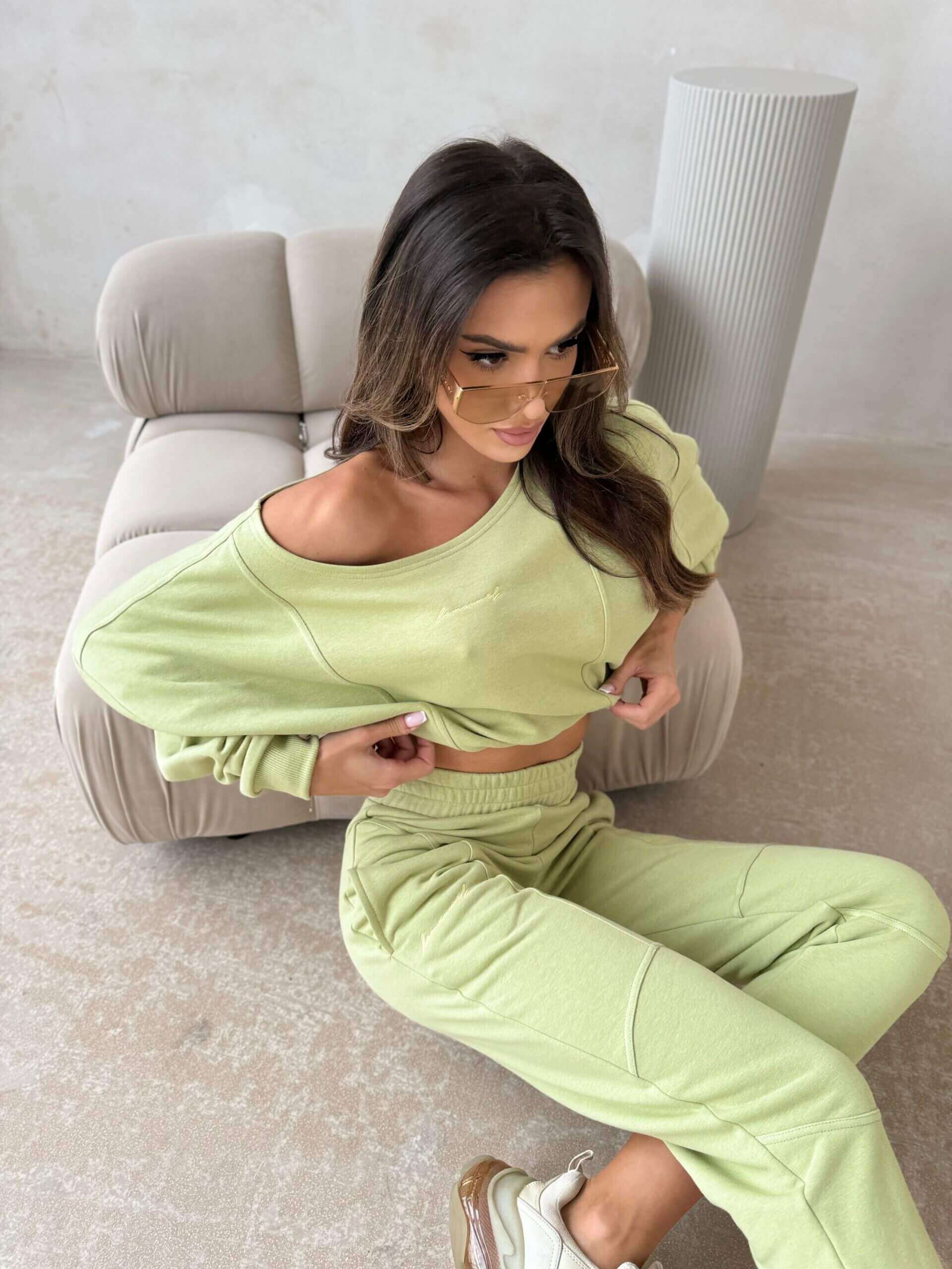 Komplet dresowy BIG ENERGY La Manuel , składający się z bluzy i spodni. Krótka bluza z możliwością noszenia na jedno ramię to nowoczesny akcent, który nadaje zestawowi lekkości i subtelnej nonszalancji. Jej zakończenie ściągaczem idealnie odzwierciedla element miejskiego stylu. Spodnie dresowe z kieszeniami zdobione przeszyciami będą idealnym uzupełnieniem stylizacji. To połączenie wygody, funkcjonalności i nowoczesnej estetyki.
