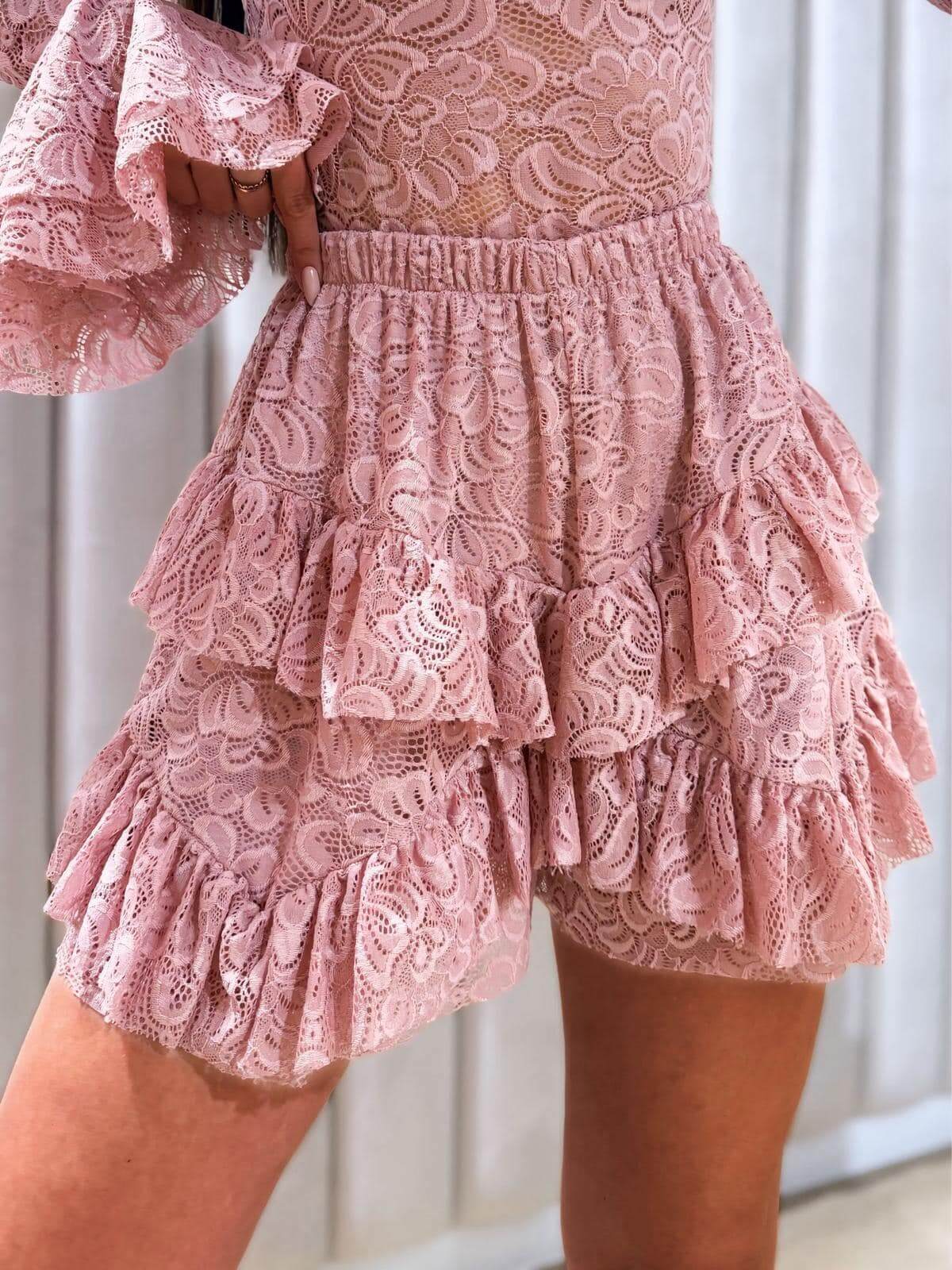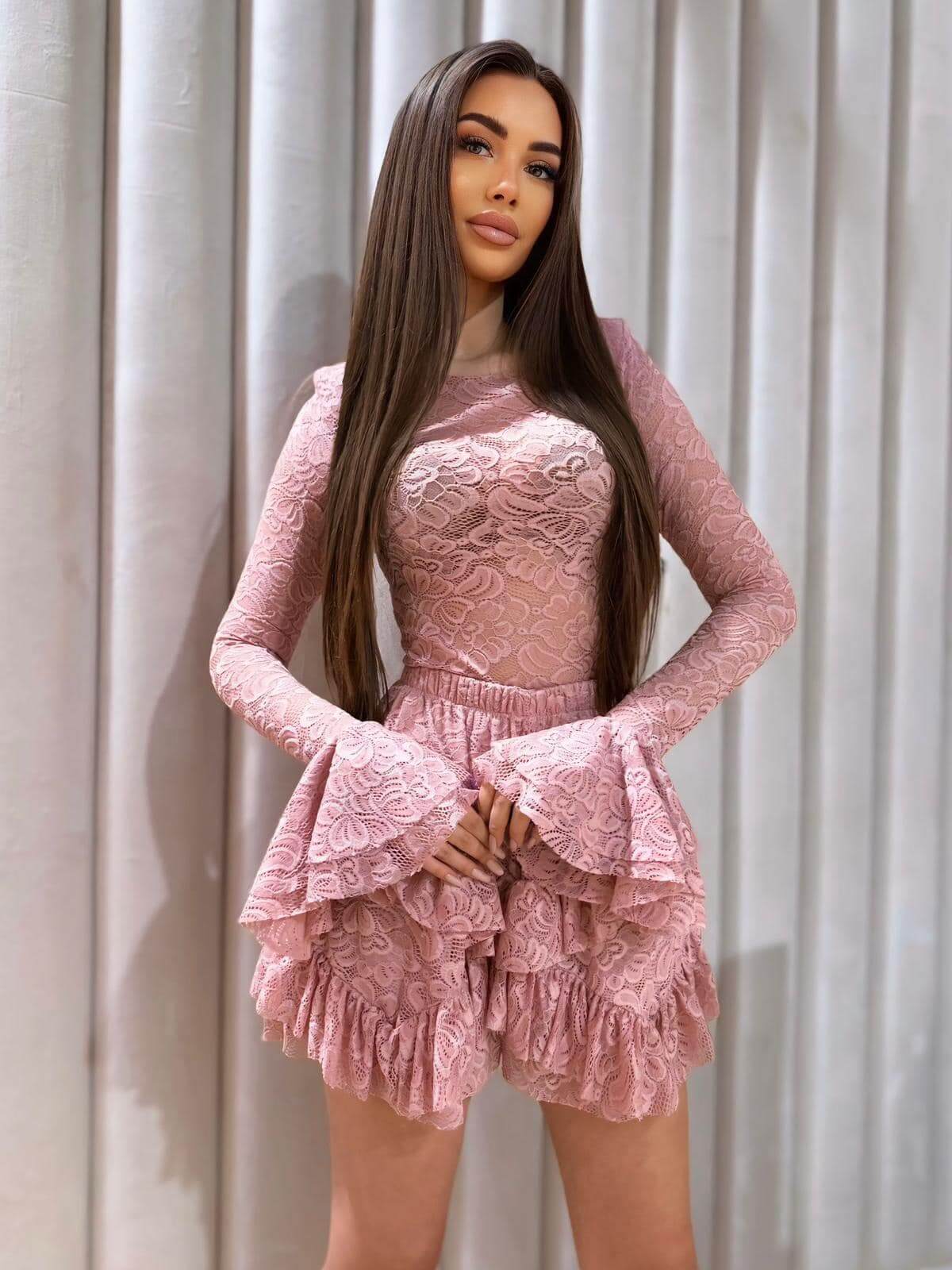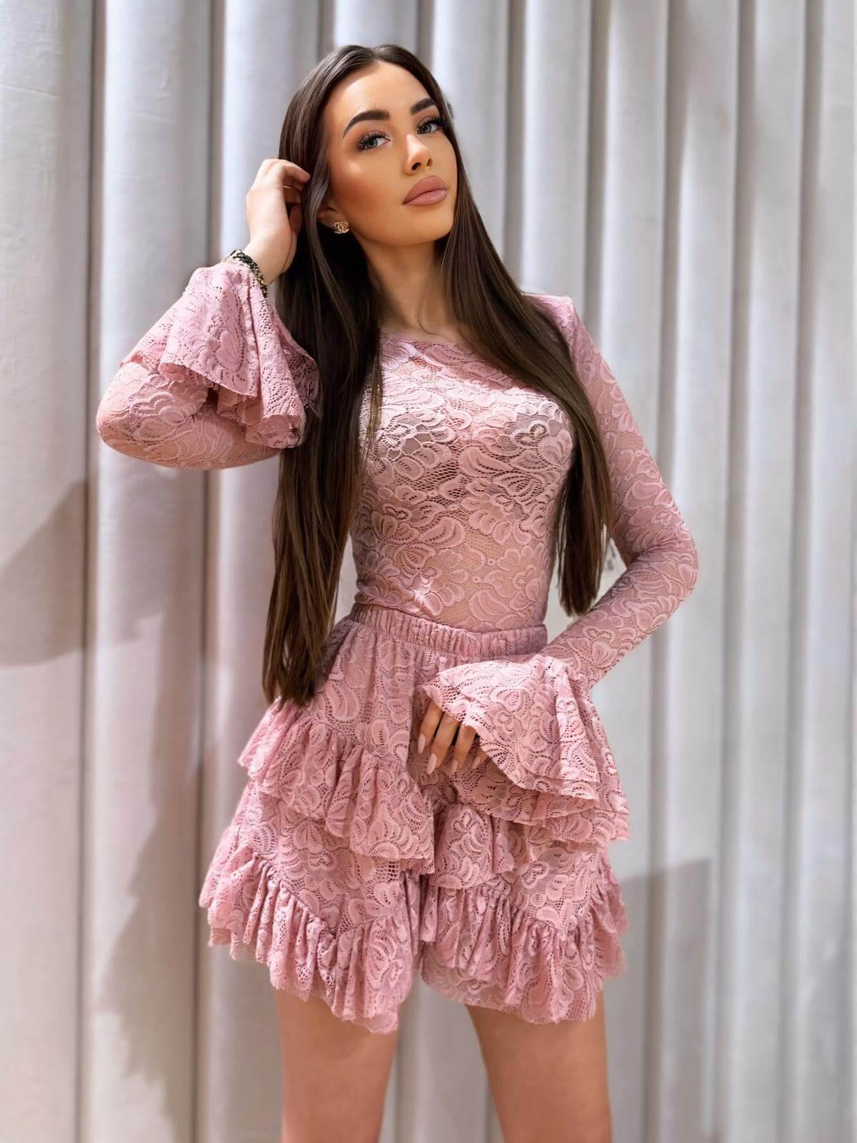 Komplet Koronkowy – Body + Spódnico-Spodenki