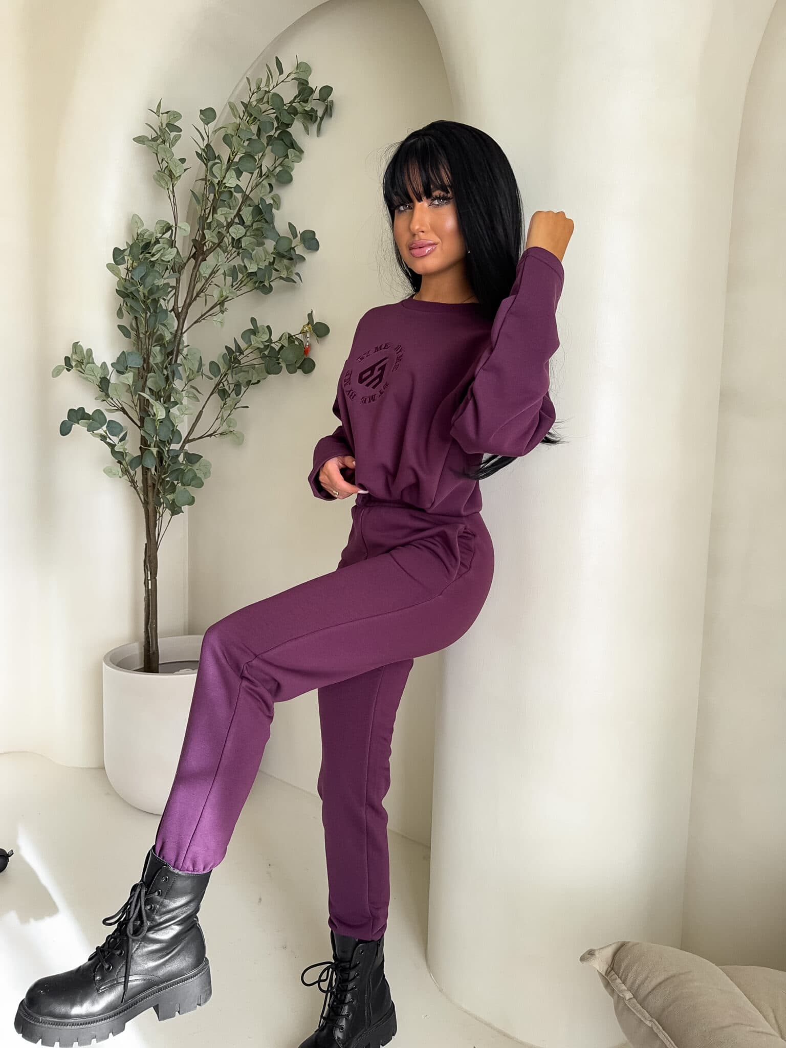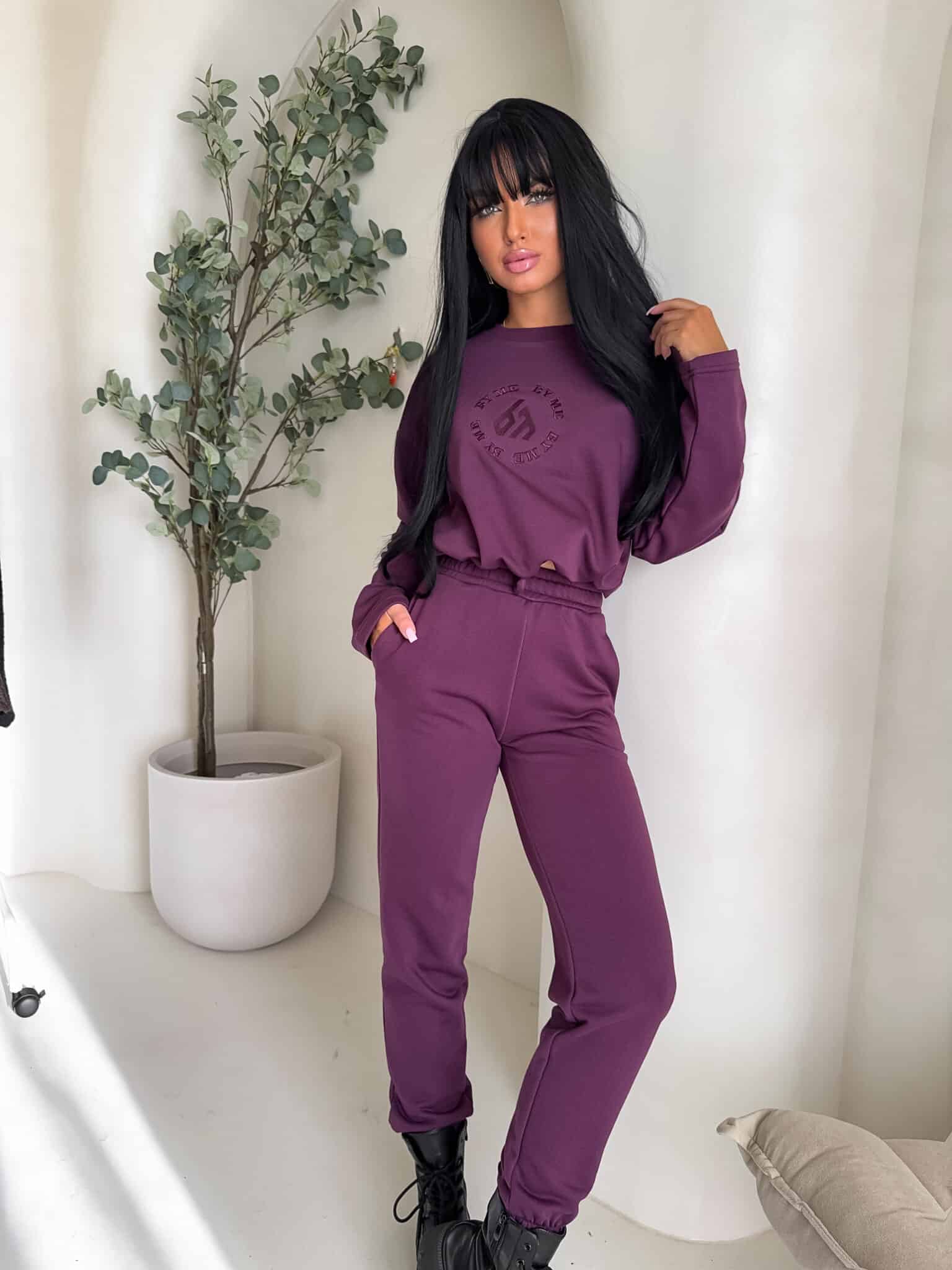 Komplet Louis składający się z bluzy o luźnym kroju, z długim rękawem z troczkiem regulującym długość oraz logowaniem na środku. Spodnie mają gumki na nogawkach i w pasie oraz dwie wbudowane kieszenie.