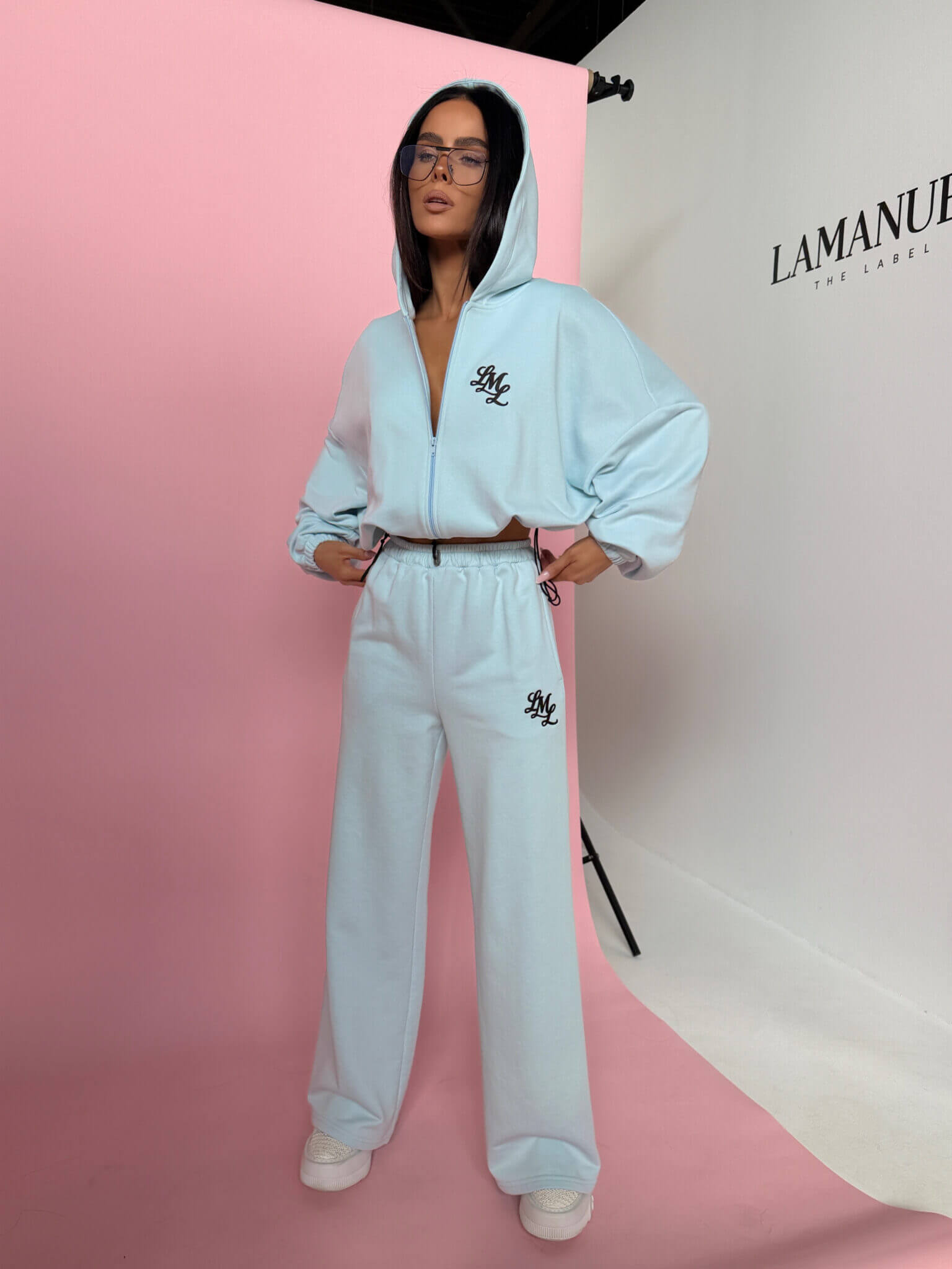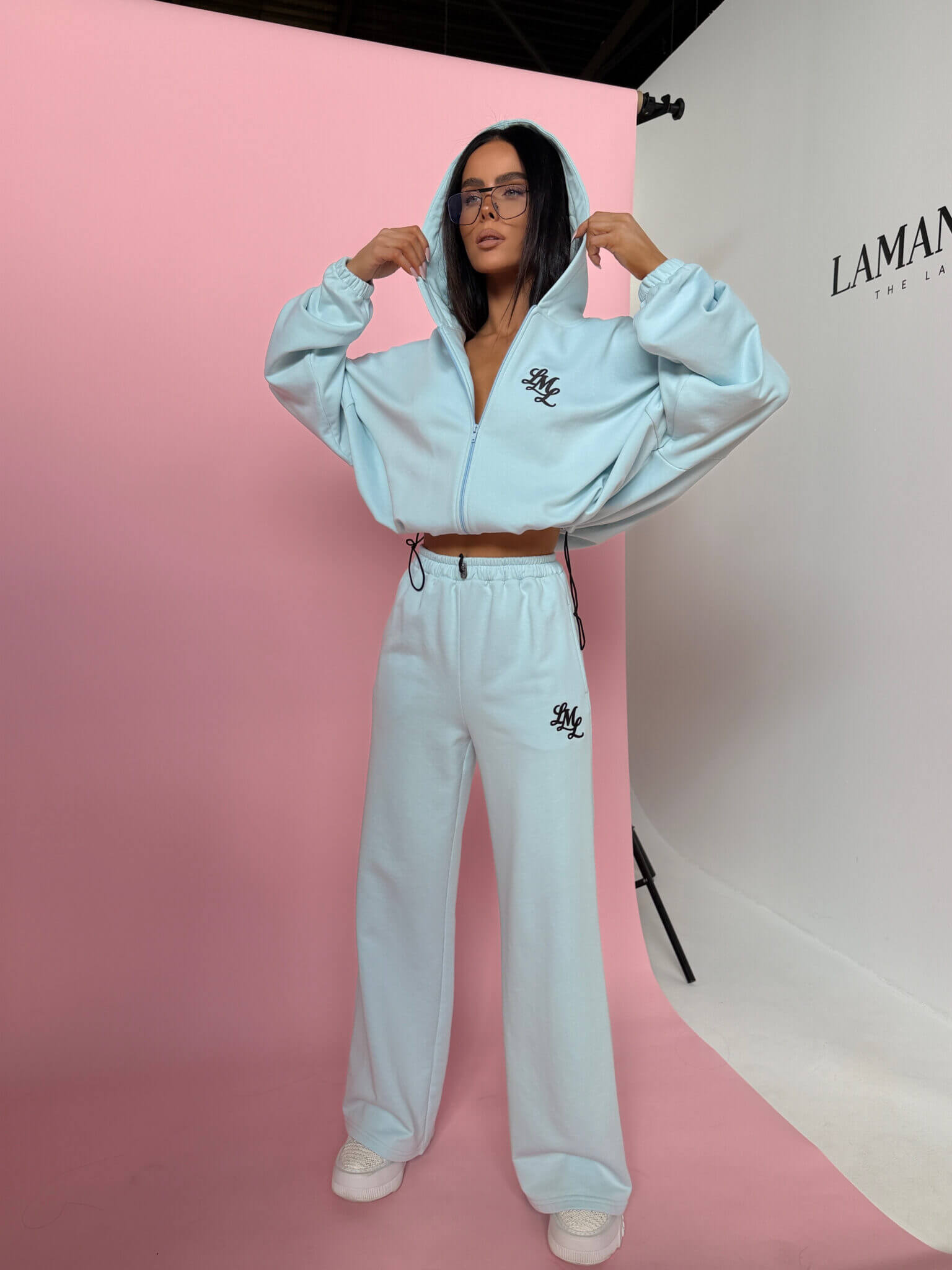 Komplet dresowy POSITIVE LAMANUEL o luźnym, oversize’owym kroju. Bluza z kapturem zapinana na zamek, z obniżoną linią ramion i regulacją dołu, która pozwala dopasować fason. Spodnie z szeroką nogawką, gumą w pasie i swobodnym krojem, który dobrze układa się na sylwetce. Na przodzie subtelne haftowane logo, na plecach duży, wyrazisty nadruk. Model tworzy spójny, nowoczesny look idealny do codziennych stylizacji i kompletów.