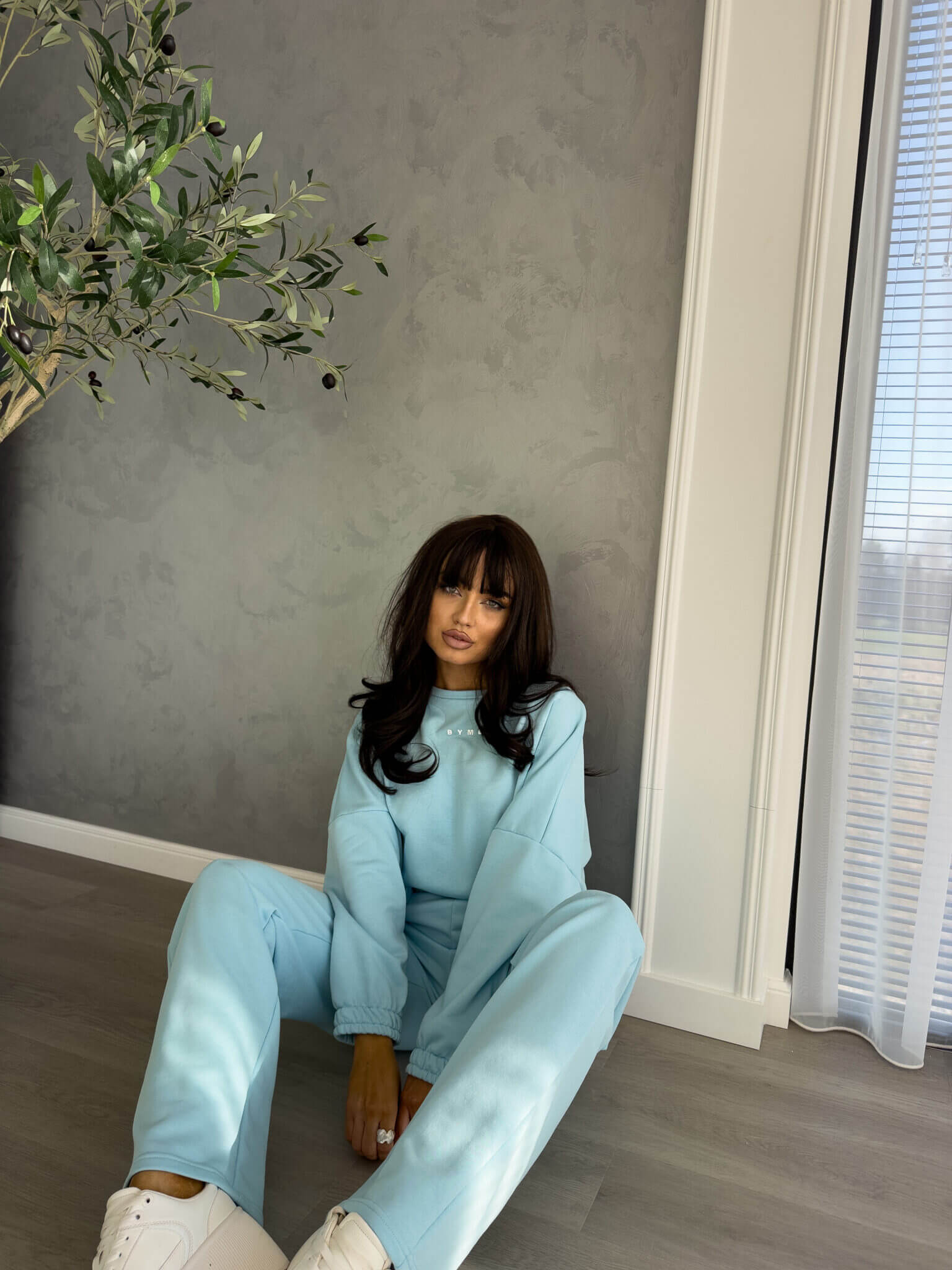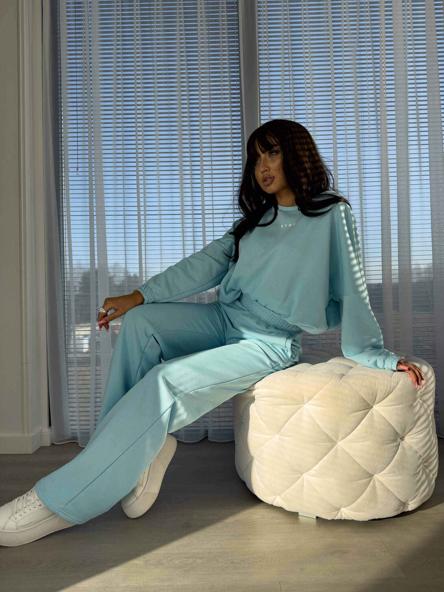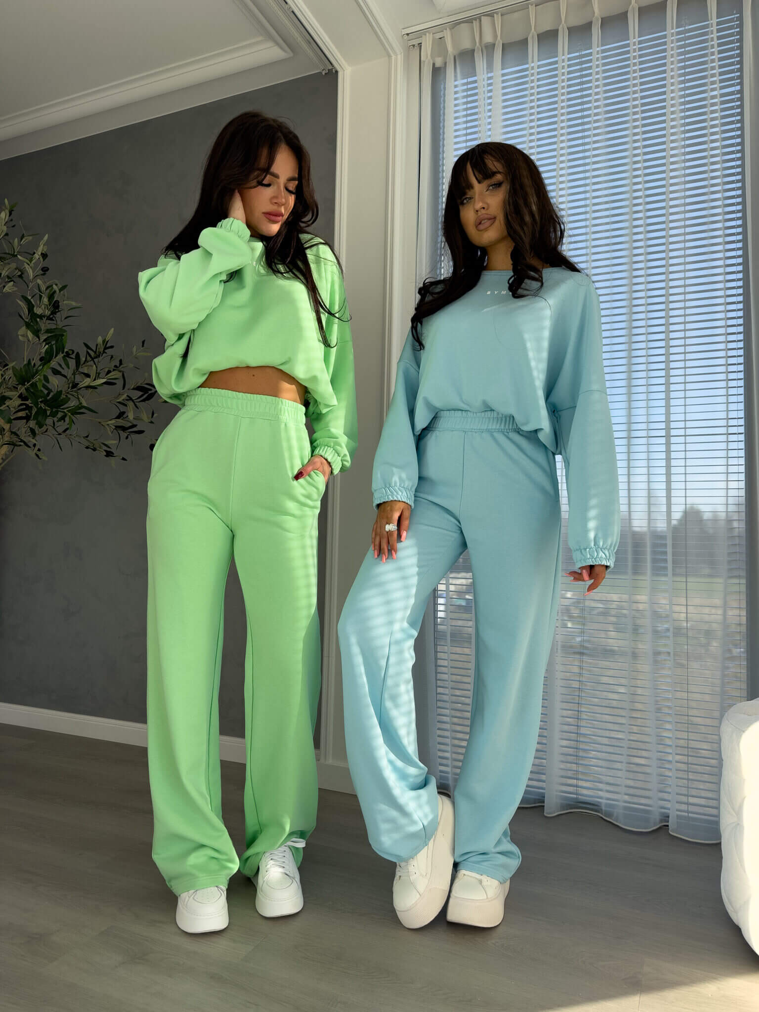 Komplet Sydney składający się z bluzy i spodni.  Bluza o prostym, luźnym kroju, z długim rękawem zakończonym gumą. Szerokie spodnie z gumką w pasie