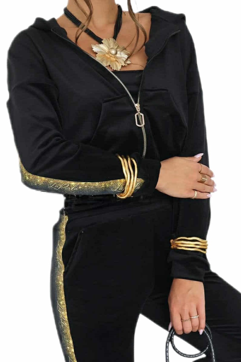 Welurowy 3 częściowy komplet ze złotymi lampasami.