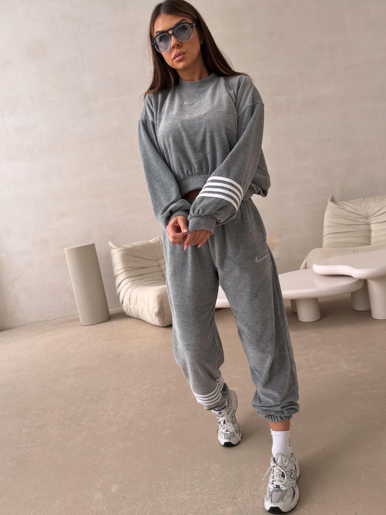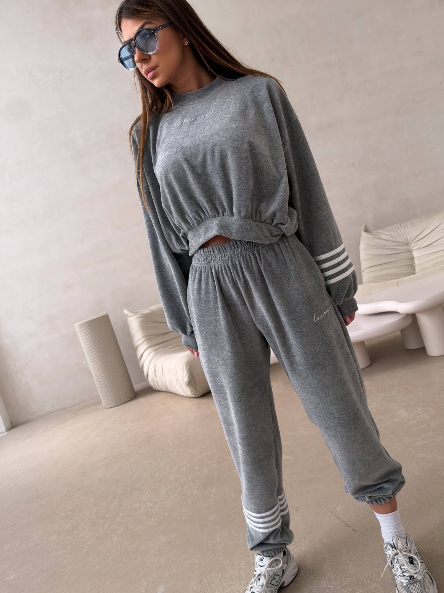 Set z wysokiej jakości bawełnianego weluru, który łączy wygodę z modowym lookiem. Idealny model do codziennych stylizacji.