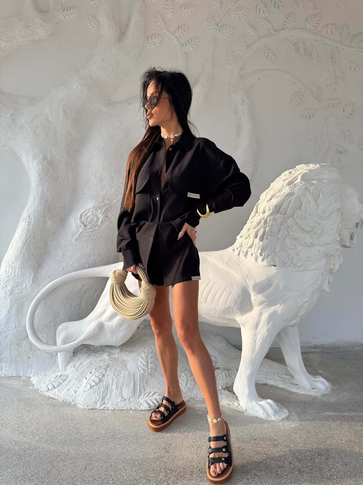 Oversize’owa koszula SAFARI LAMANUEL wykonana z lekkiej, miękko układającej się tkaniny. Klasyczna forma została przełamana dużymi, nieregularnymi kieszeniami z klapkami, które przyciągają uwagę i nadają charakteru. Zapinana na guziki, z naszywką marki umieszczoną na jednej z kieszeni. Uniwersalna, stylowa, idealna zarówno do miejskich stylizacji, jak i na wyjazdy.
