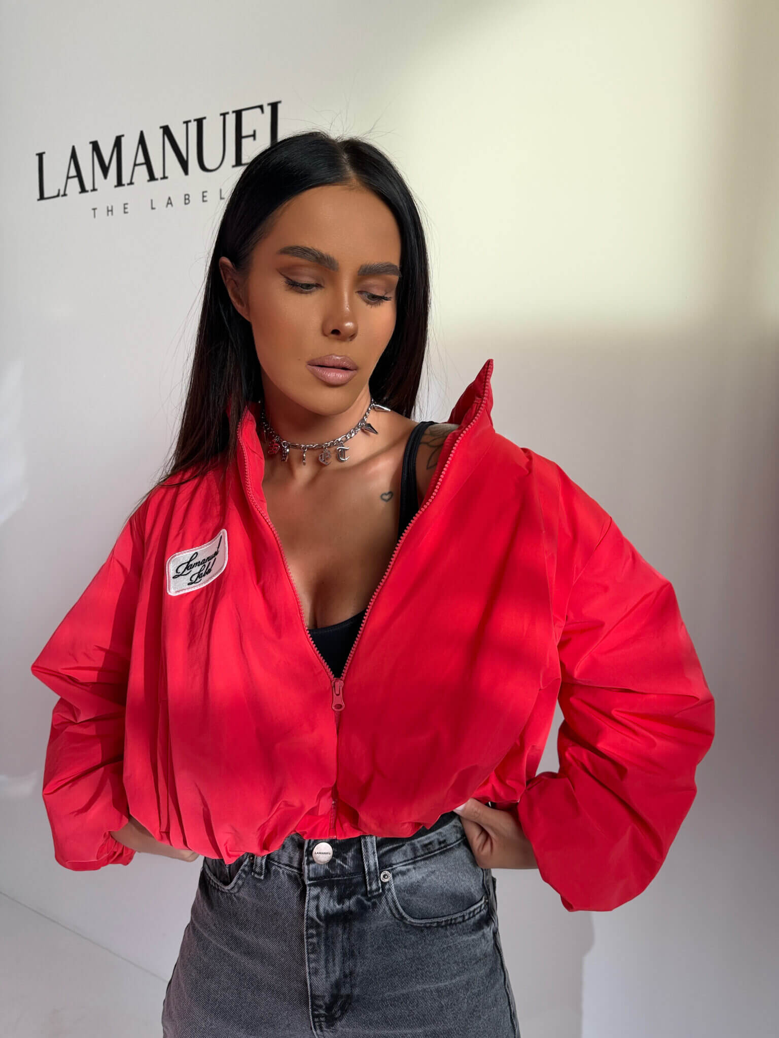 Lekka kurtka wiosenna BLOOM LAMANUEL, która robi efekt od pierwszego założenia. Oversize’owa forma z obniżoną linią ramion i podwyższonym kołnierzem buduje wyrazistą, pewną sylwetkę. Dół delikatnie zbiera się w bombkę, dzięki czemu całość ma modowy, dopracowany kształt, a nie zwykłą, sportową formę. Materiał jest lekki, miękko pracuje w ruchu i daje ten charakterystyczny, nowoczesny look. Mocny kolor przyciąga uwagę i podbija stylizację bez wysiłku. To model dla dziewczyny, która lubi wyglądać wyraziście i nie znika w tłumie.