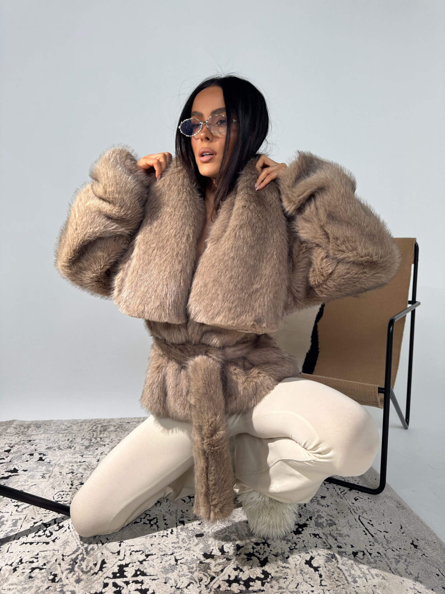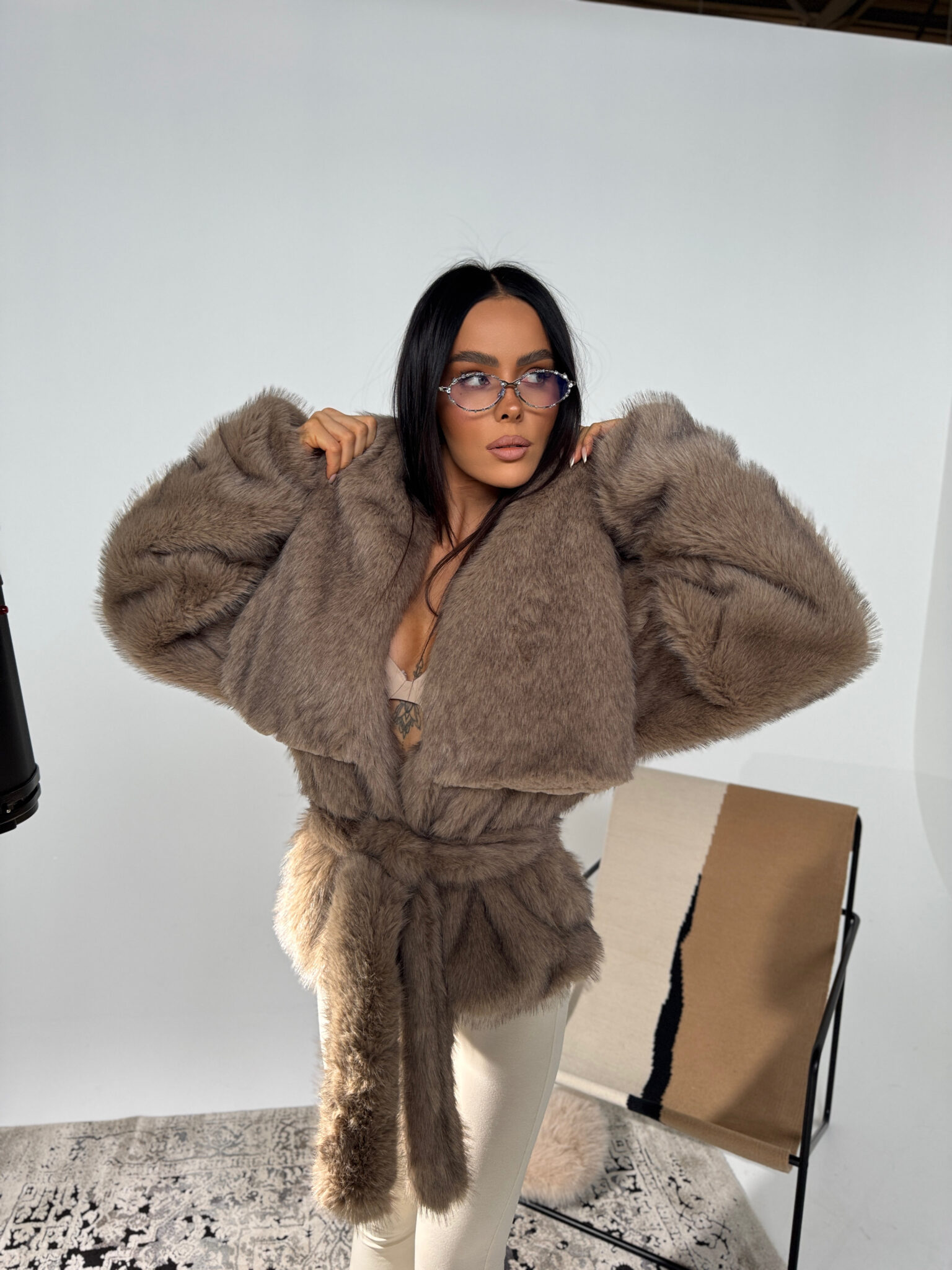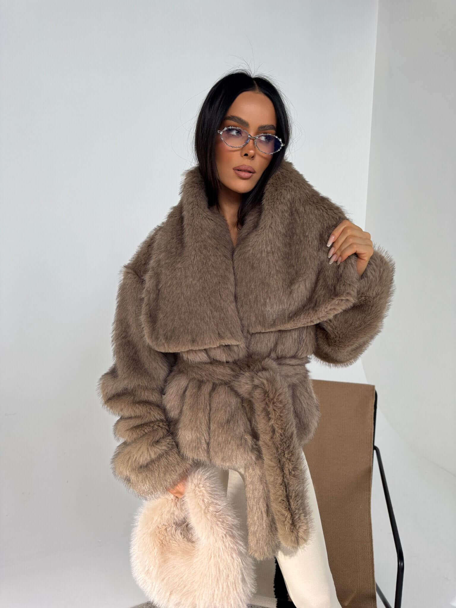 Wyjątkowe futro FUZZY LAMANUEL o luksusowym wyglądzie i kobiecej formie. Mięsista, gęsta tkanina imitująca naturalne futro nadaje całości elegancji, a przy tym skutecznie chroni przed chłodem. Model z obszernym kołnierzem, lekko opuszczoną linią ramion i wiązaniem w pasie, które pięknie podkreśla sylwetkę. Długość do bioder sprawia, że pasuje zarówno do spodni, jak i sukienek. Wygodne, wsuwane rękawy i przemyślany krój zapewniają komfort noszenia i modowy efekt bez wysiłku. Must-have sezonu dla kobiet, które cenią styl, wygodę i jakość wykonania.