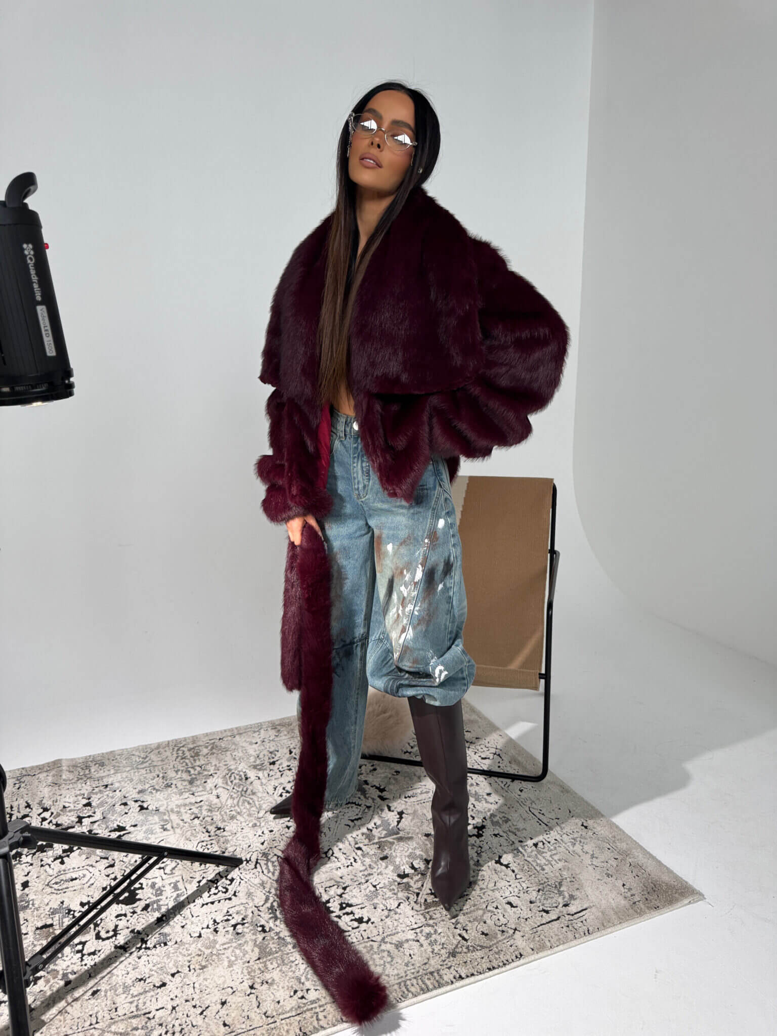 Wyjątkowe futro FUZZY LAMANUEL o luksusowym wyglądzie i kobiecej formie. Mięsista, gęsta tkanina imitująca naturalne futro nadaje całości elegancji, a przy tym skutecznie chroni przed chłodem. Model z obszernym kołnierzem, lekko opuszczoną linią ramion i wiązaniem w pasie, które pięknie podkreśla sylwetkę. Długość do bioder sprawia, że pasuje zarówno do spodni, jak i sukienek. Wygodne, wsuwane rękawy i przemyślany krój zapewniają komfort noszenia i modowy efekt bez wysiłku. Must-have sezonu dla kobiet, które cenią styl, wygodę i jakość wykonania.