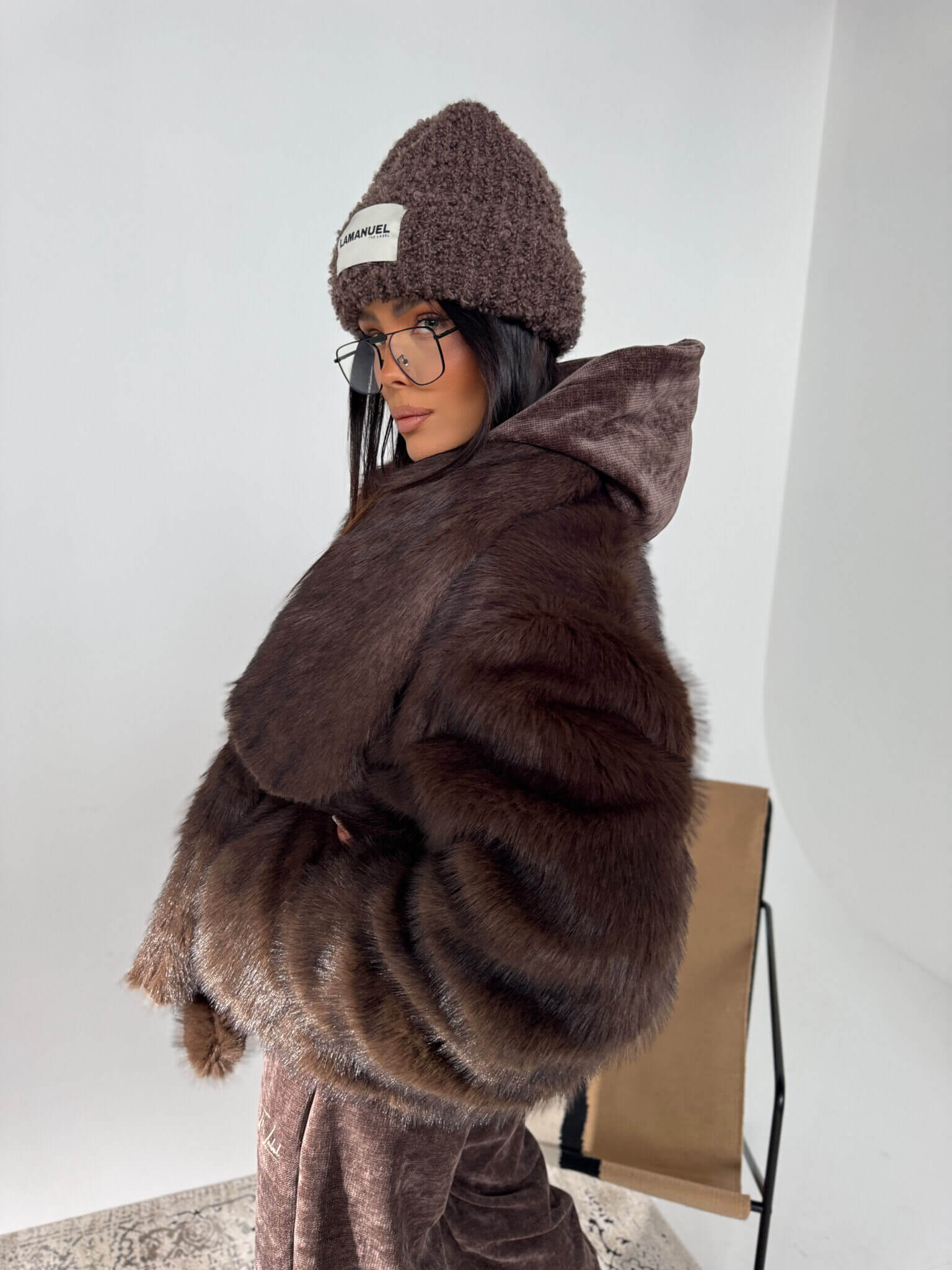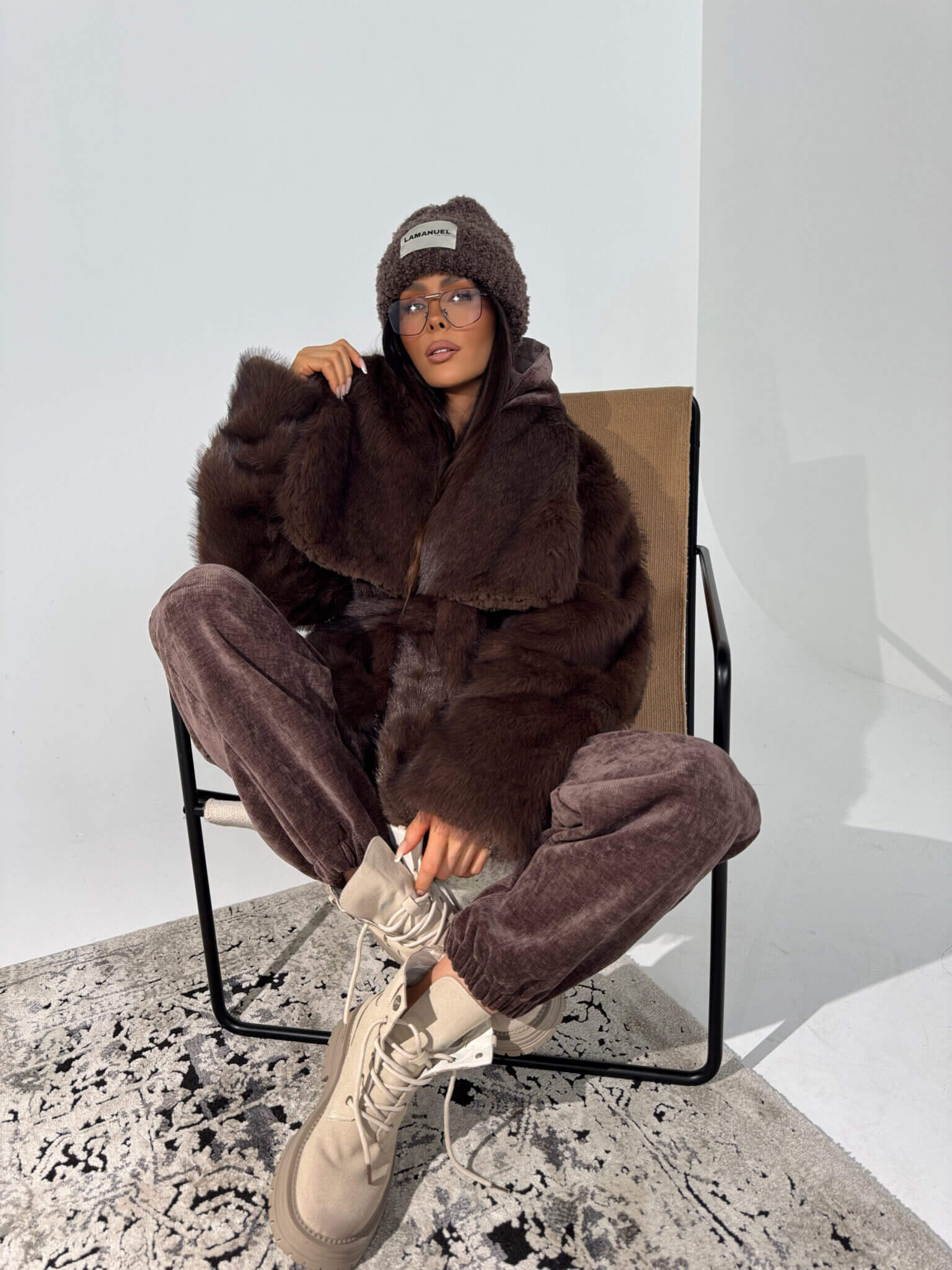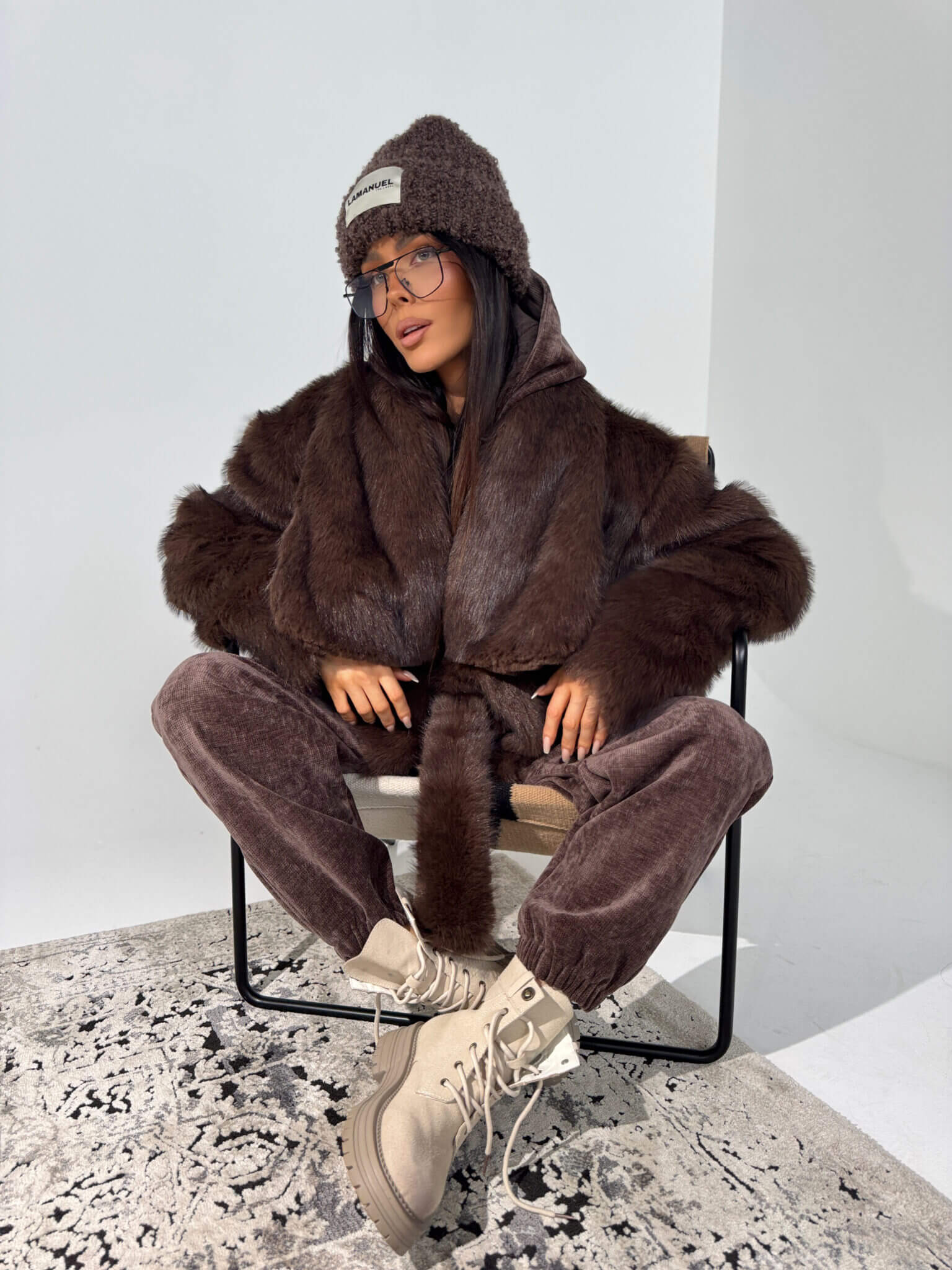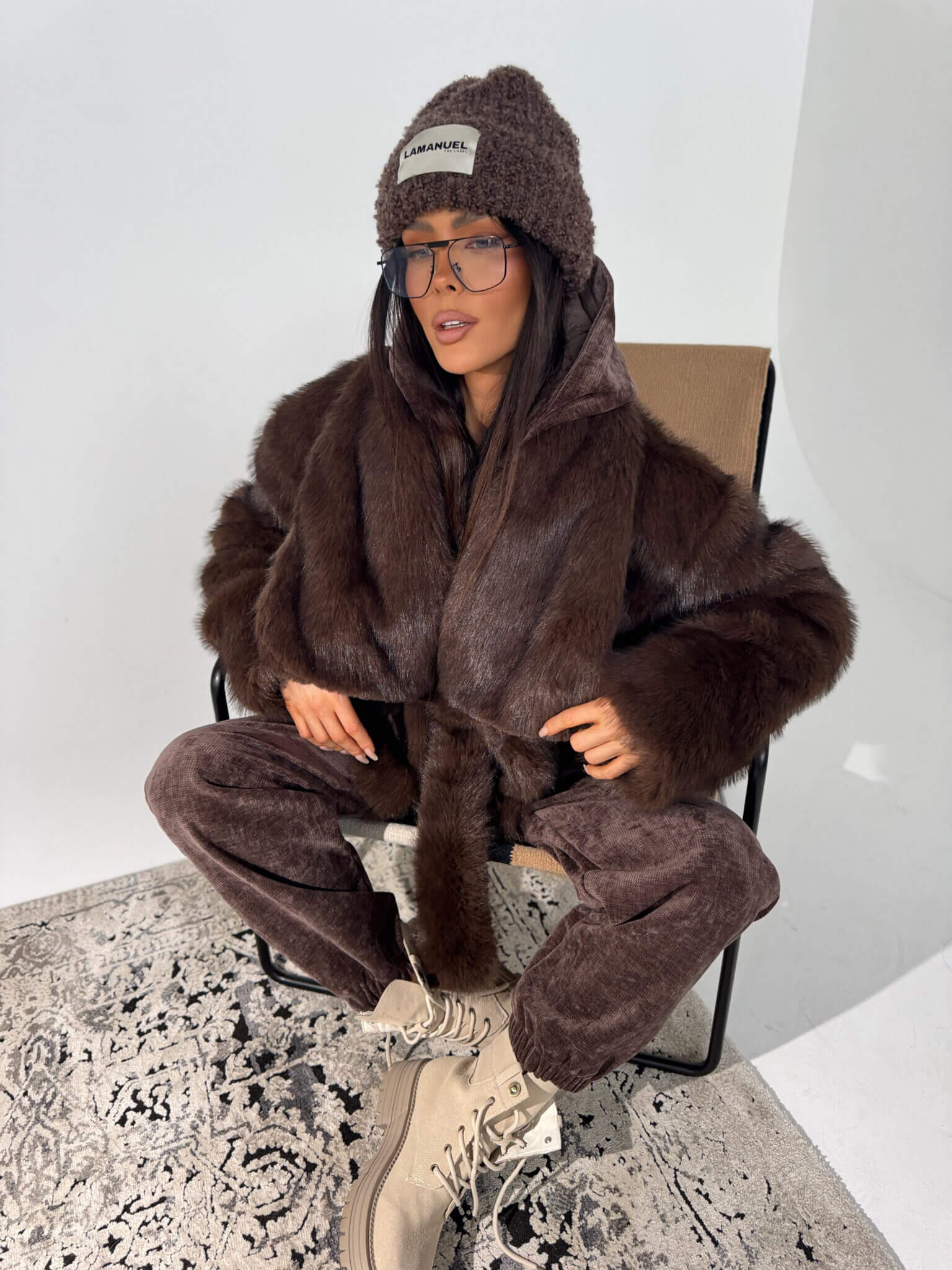 Wyjątkowe futro FUZZY LAMANUEL o luksusowym wyglądzie i kobiecej formie. Mięsista, gęsta tkanina imitująca naturalne futro nadaje całości elegancji, a przy tym skutecznie chroni przed chłodem. Model z obszernym kołnierzem, lekko opuszczoną linią ramion i wiązaniem w pasie, które pięknie podkreśla sylwetkę. Długość do bioder sprawia, że pasuje zarówno do spodni, jak i sukienek. Wygodne, wsuwane rękawy i przemyślany krój zapewniają komfort noszenia i modowy efekt bez wysiłku. Must-have sezonu dla kobiet, które cenią styl, wygodę i jakość wykonania.