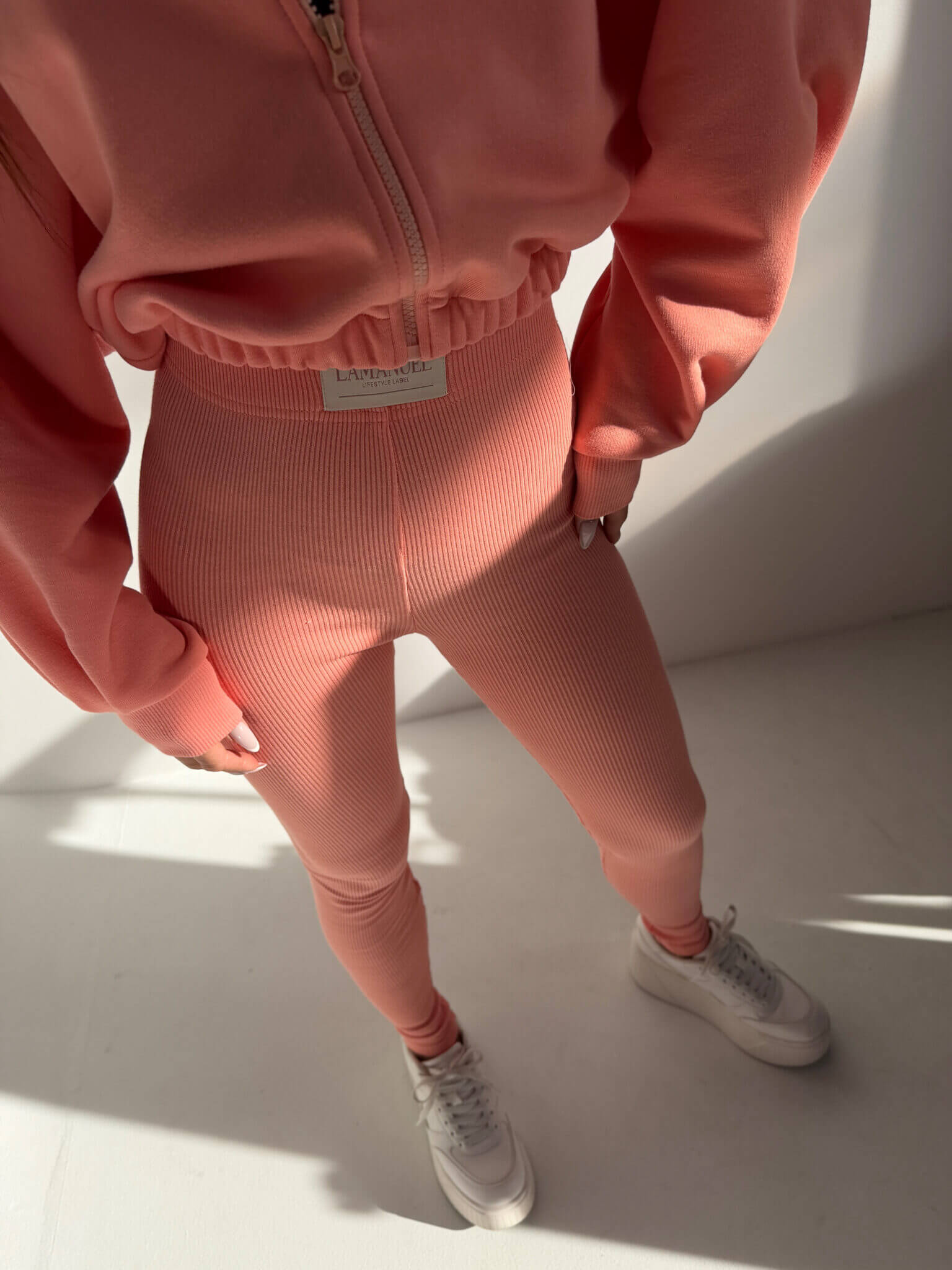 Legginsy DOLL LAMANUEL z wysokim stanem wykonane z elastycznej dzianiny prążkowanej, która pięknie dopasowuje się do ciała i podkreśla kształty. Pas dobrze trzyma talię, a struktura materiału nadaje im bardziej premium wygląd. Model wygodny, a jednocześnie bardzo kobiecy – dopracowany w każdym detalu.