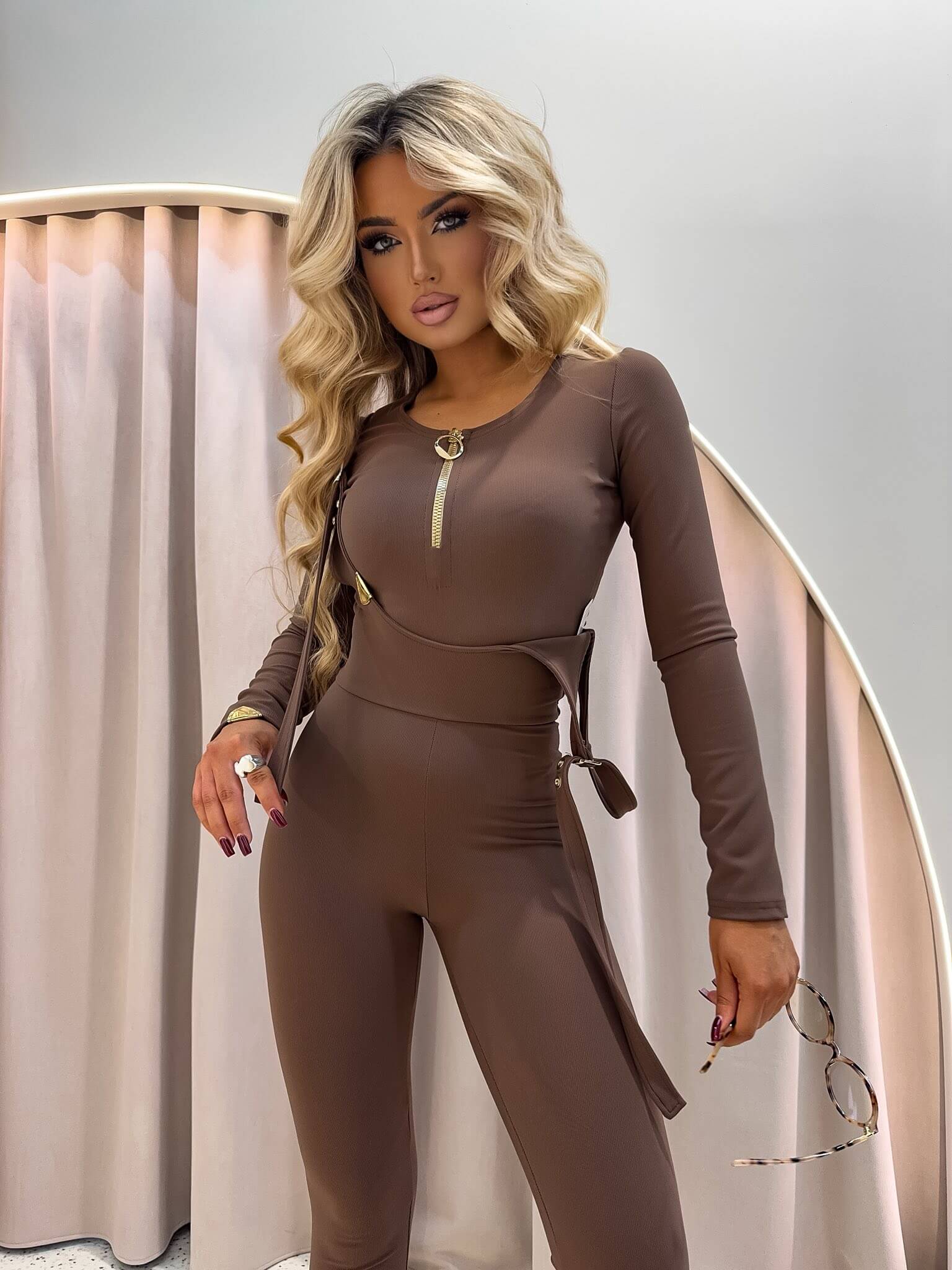 Legginsy szelki LA MONNE jasna czekolada
