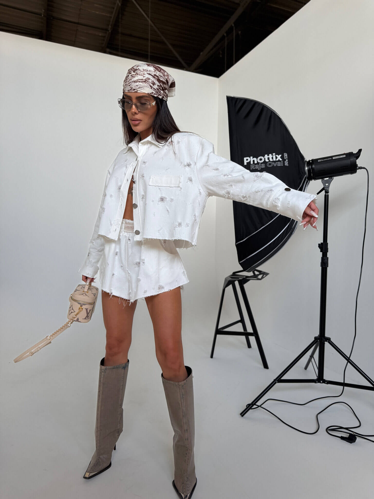 Casualowe szorty DENIM LAMANUEL z elastycznym pasem, które łączą wygodę z wyrazistym charakterem. Wykonane z miękkiego, ale trwałego denimu z nieregularnymi przetarciami i postarzanym wykończeniem. Surowo cięty dół dodaje lekkości i swobody, a tylna naszywka z logo LAMANUEL podkreśla ich charakter premium. Idealne do letnich stylizacji – zarówno solo, jak i jako część zestawu z kurtką z tej samej tkaniny.