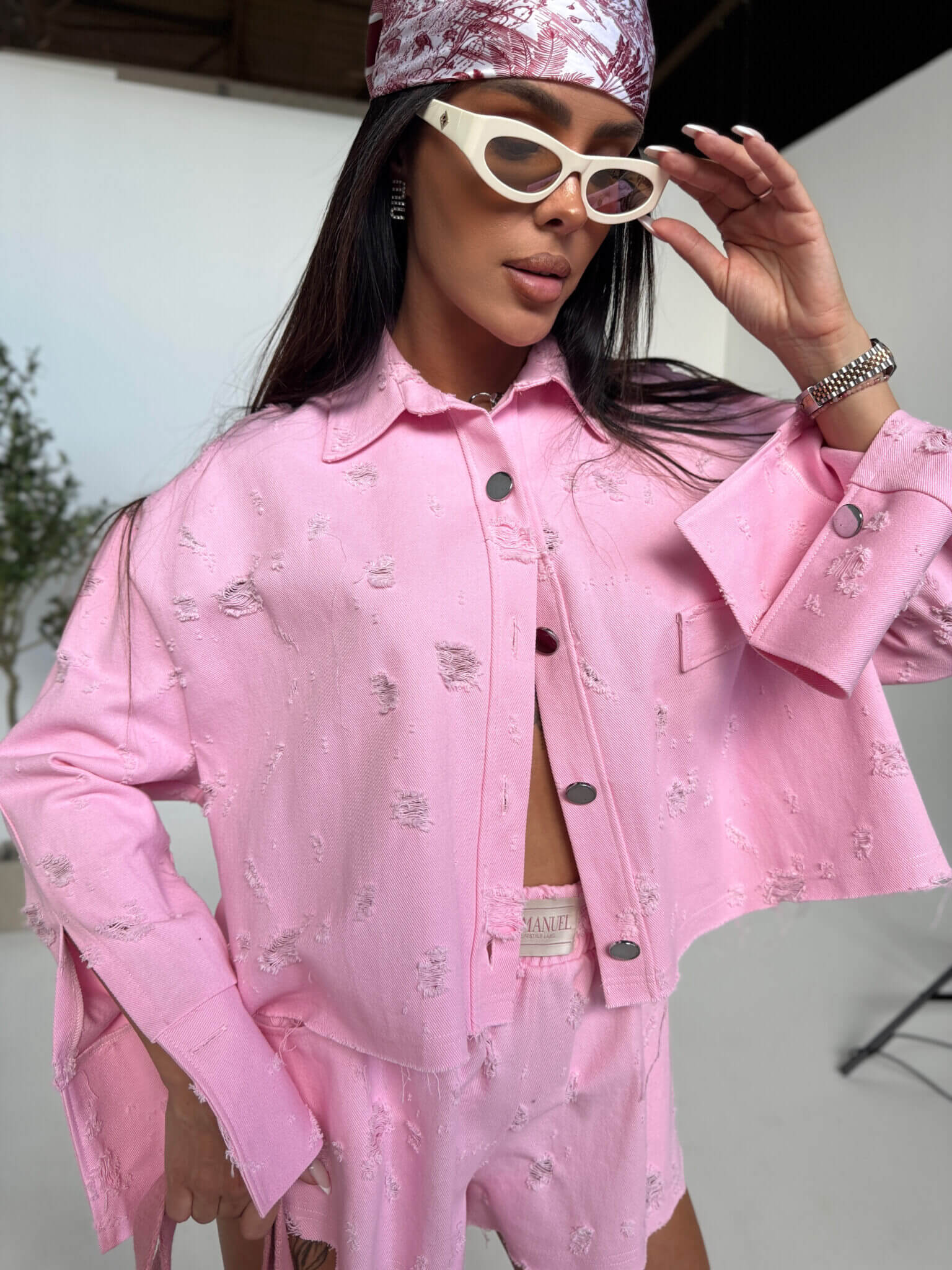 Casualowe szorty DENIM LAMANUEL z elastycznym pasem, które łączą wygodę z wyrazistym charakterem. Wykonane z miękkiego, ale trwałego denimu z nieregularnymi przetarciami i postarzanym wykończeniem. Surowo cięty dół dodaje lekkości i swobody, a tylna naszywka z logo LAMANUEL podkreśla ich charakter premium. Idealne do letnich stylizacji – zarówno solo, jak i jako część zestawu z kurtką z tej samej tkaniny.