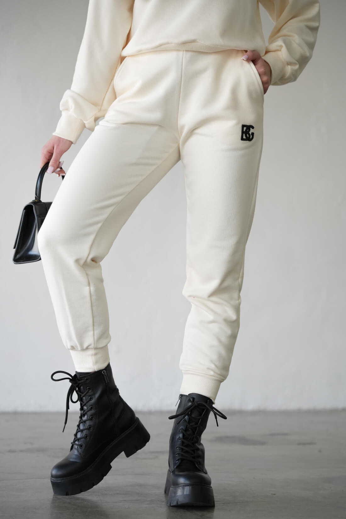 Spodnie z wysokiej jakości bawełny nieocieplanej. Klasyczne spodnie dresowe z wyhaftowanym logo marki na nogawce. Kieszenie w boku oraz gumka ze sznurkiem w pasie. Spodnie wykończone ściągaczami. Modelka na zdjęciu ma rozmiar S.