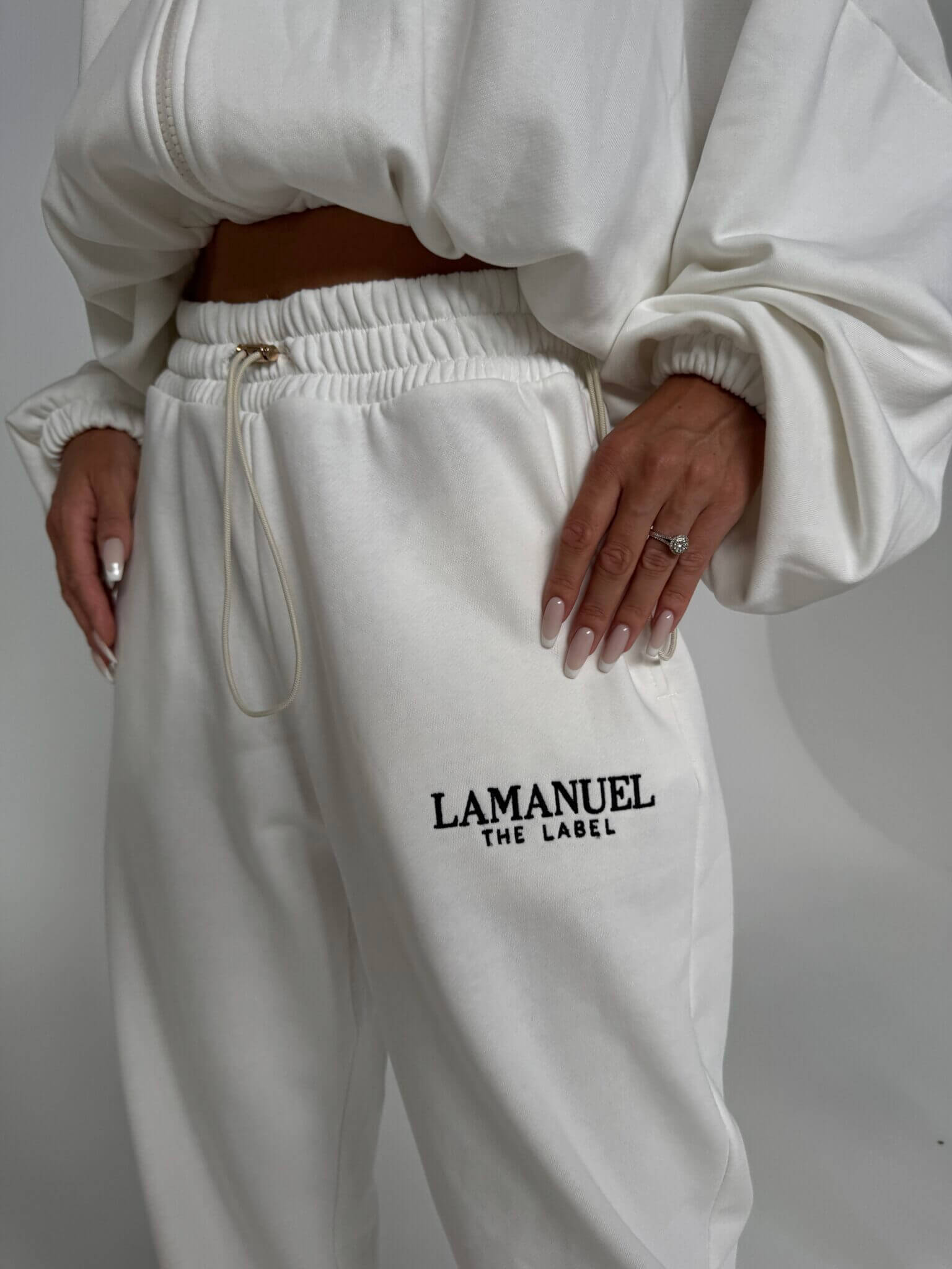 Szerokie spodnie dresowe BASIC LAMANUEL, stylizowane na męskie z wysokim stanem i elastyczną gumką w pasie oraz dodatkowym troczkiem do regulacji. Szeroka, prosta nogawka i wygodny krój zapewniają komfort noszenia i swobodę ruchów. Na biodrze widoczne logo LAMANUEL, które spójnie komponuje się z bluza CLOUDY. tworząc kompletny, modny zestaw. Spodnie mimo, że są szerokie pasują idealnie od rozmiaru XS-L.