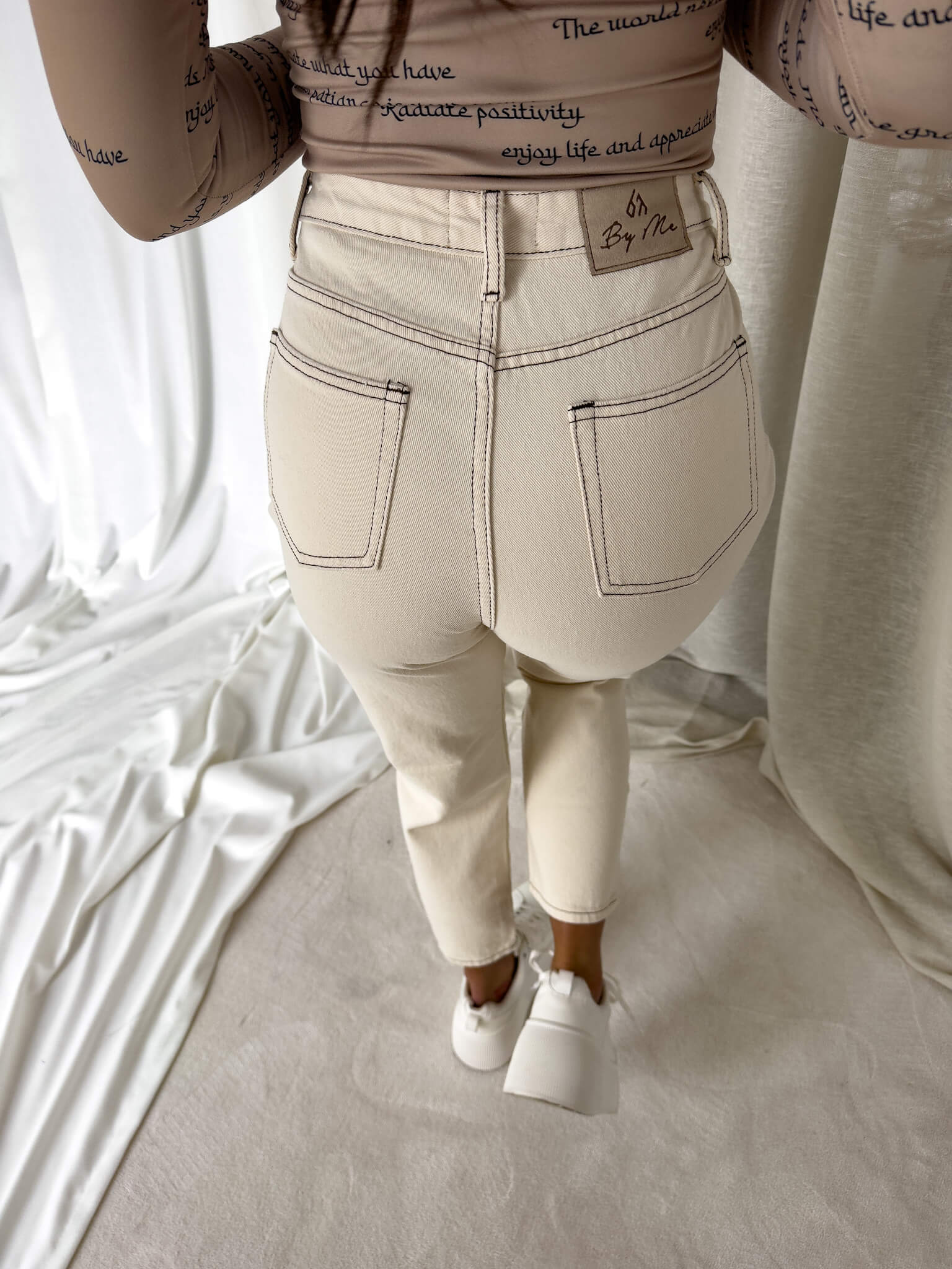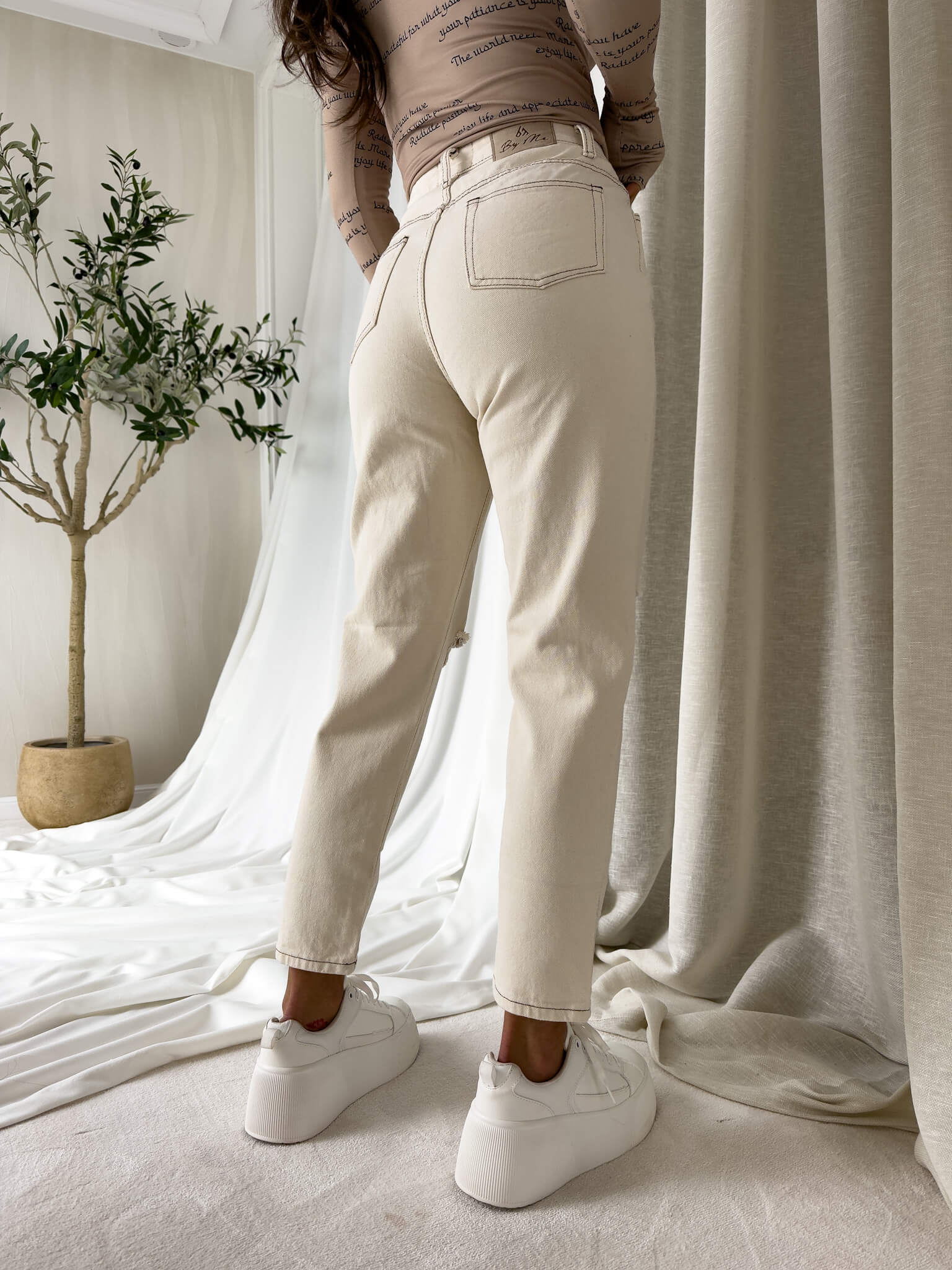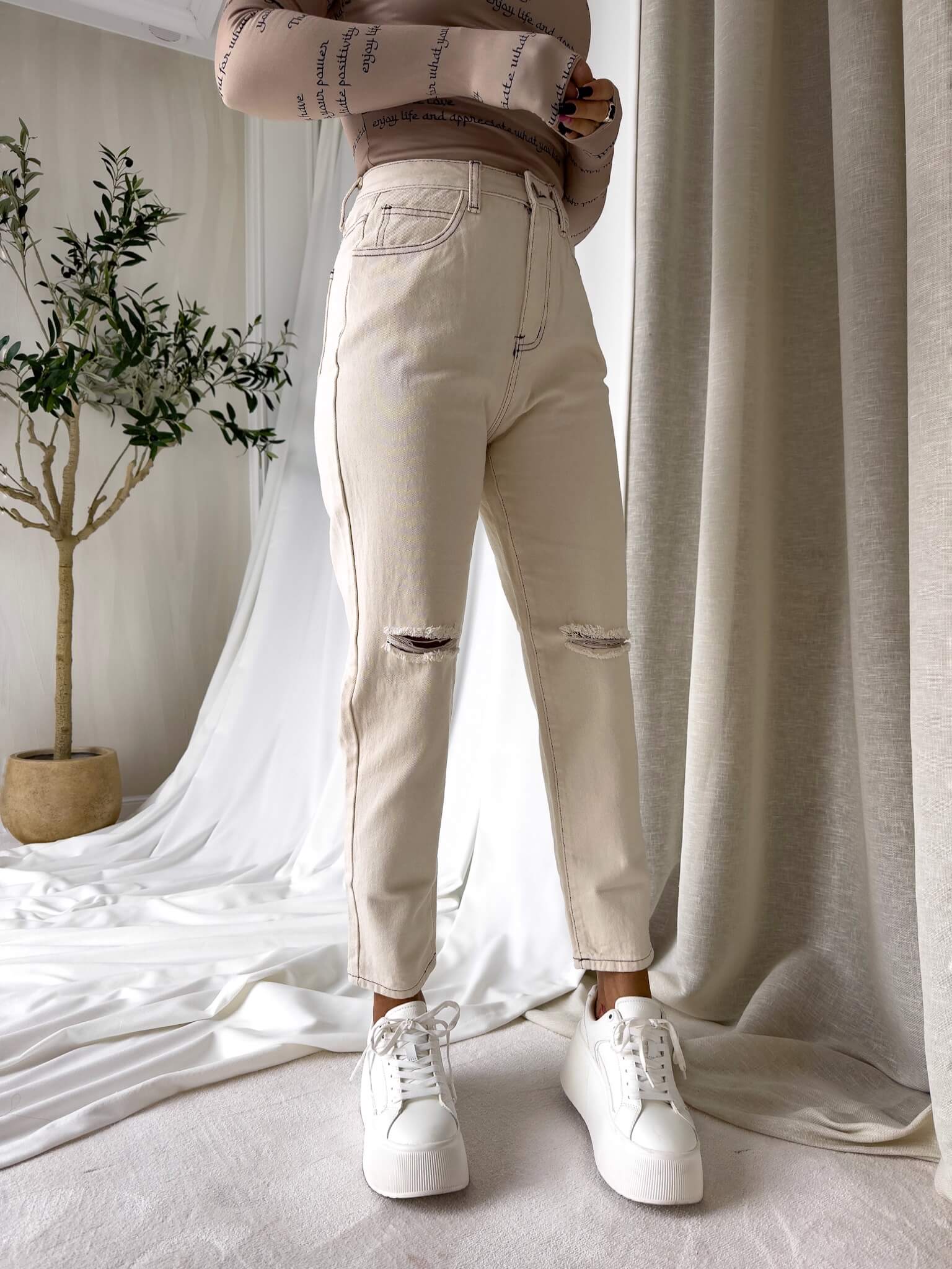 Spodnie jeans MOM FIT HOLES By Me jasny beż