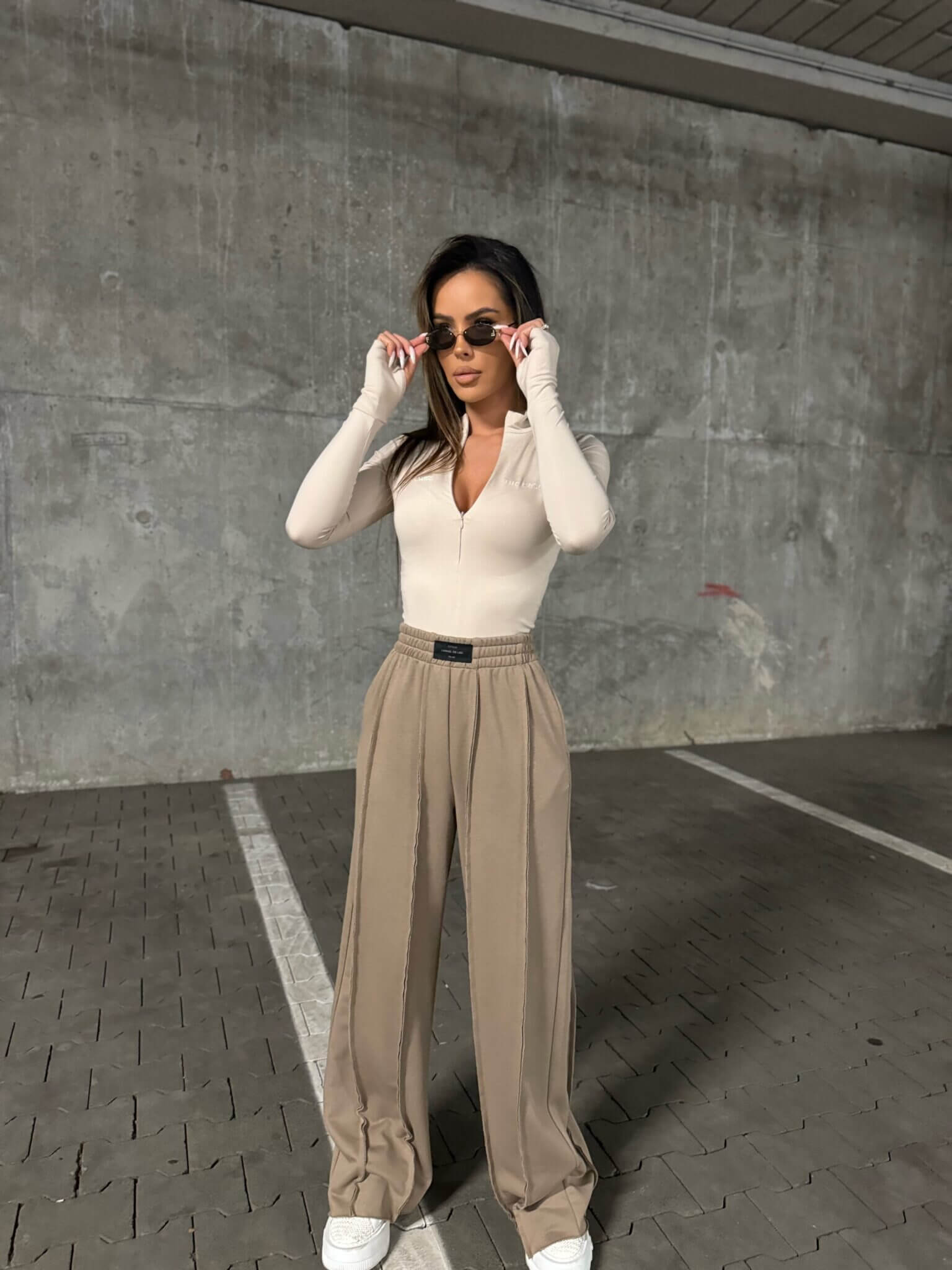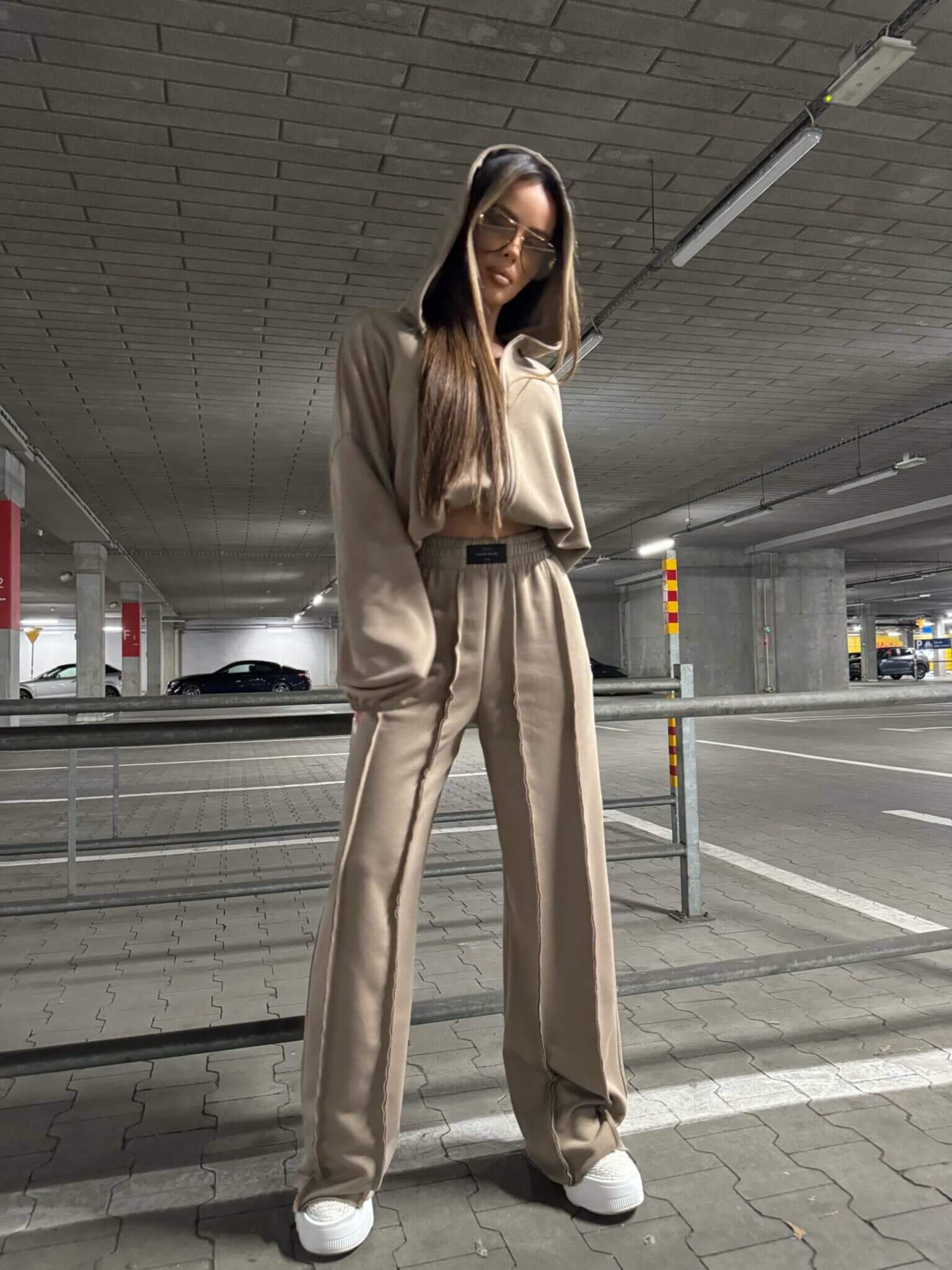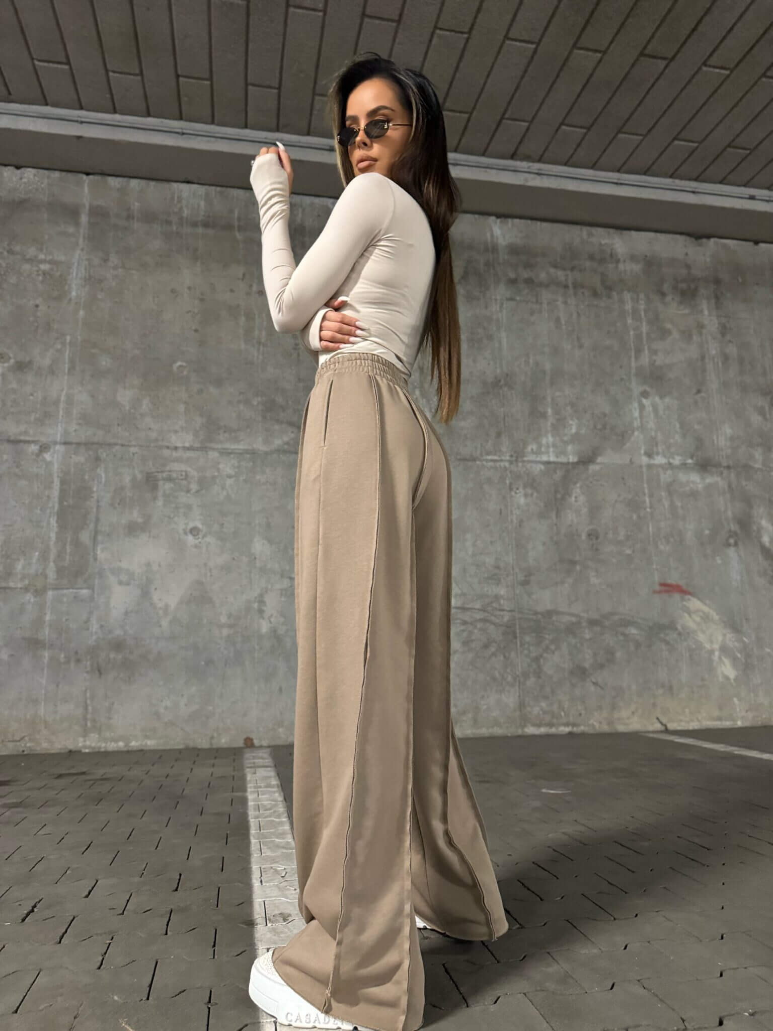 Spodnie dresowe z przeszyciami PHANTOM LA MANUEL to doskonałe połączenie komfortu i stylu. Wykonane z wysokiej jakości materiału, zapewniają pełną swobodę ruchów. Wysoki stan podkreśla talię, dodając sylwetce kobiecego kształtu, a rozszerzane nogawki nadają spodniom nowoczesnego, modnego charakteru. Dodatkowo, praktyczne kieszenie po bokach są idealne do przechowywania drobiazgów, co czyni je funkcjonalnym wyborem na co dzień. Przeszycia dodają całości oryginalności i ciekawego wyglądu, sprawiając, że te dresy doskonale sprawdzą się w casualowych oraz sportowych stylizacjach.