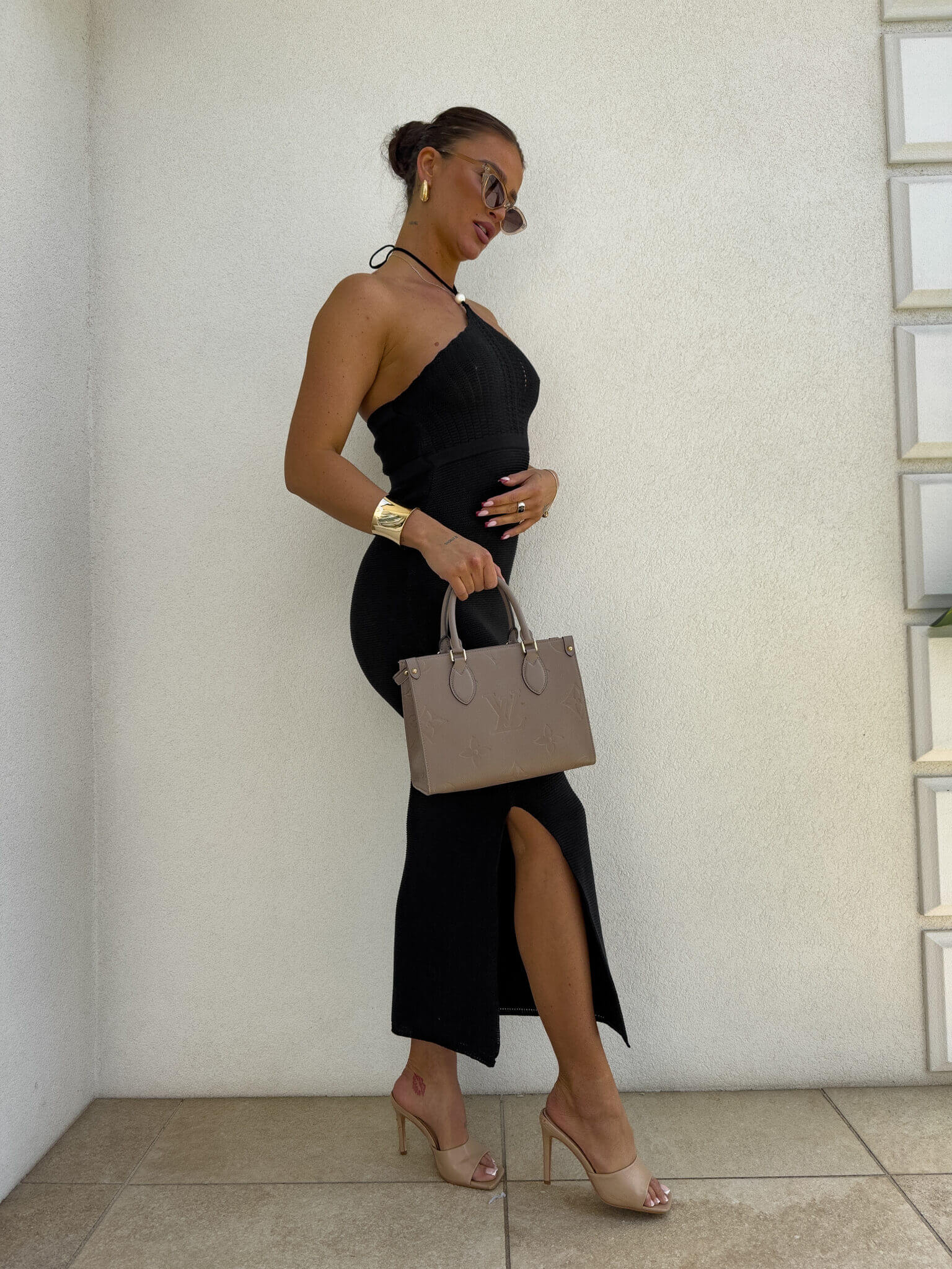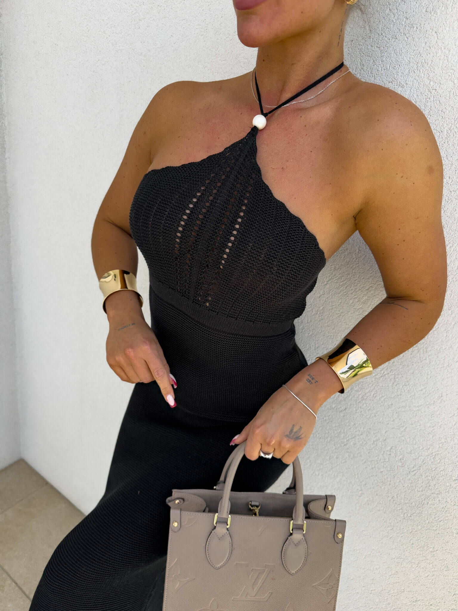 Elegancka sukienka maxi to idealny wybór na letnie przyjęcia, romantyczne kolacje czy wakacyjne spacery. Model z wiązaniem na szyi ozdobiony subtelną perełką nad biustem dodaje całości kobiecego uroku i delikatności. Gumka pod biustem pięknie podkreśla talię, zapewniając jednocześnie komfort noszenia. Lekki, zwiewny materiał oraz efektowne rozcięcie z boku nadają sukience lekkości i zmysłowego charakteru.