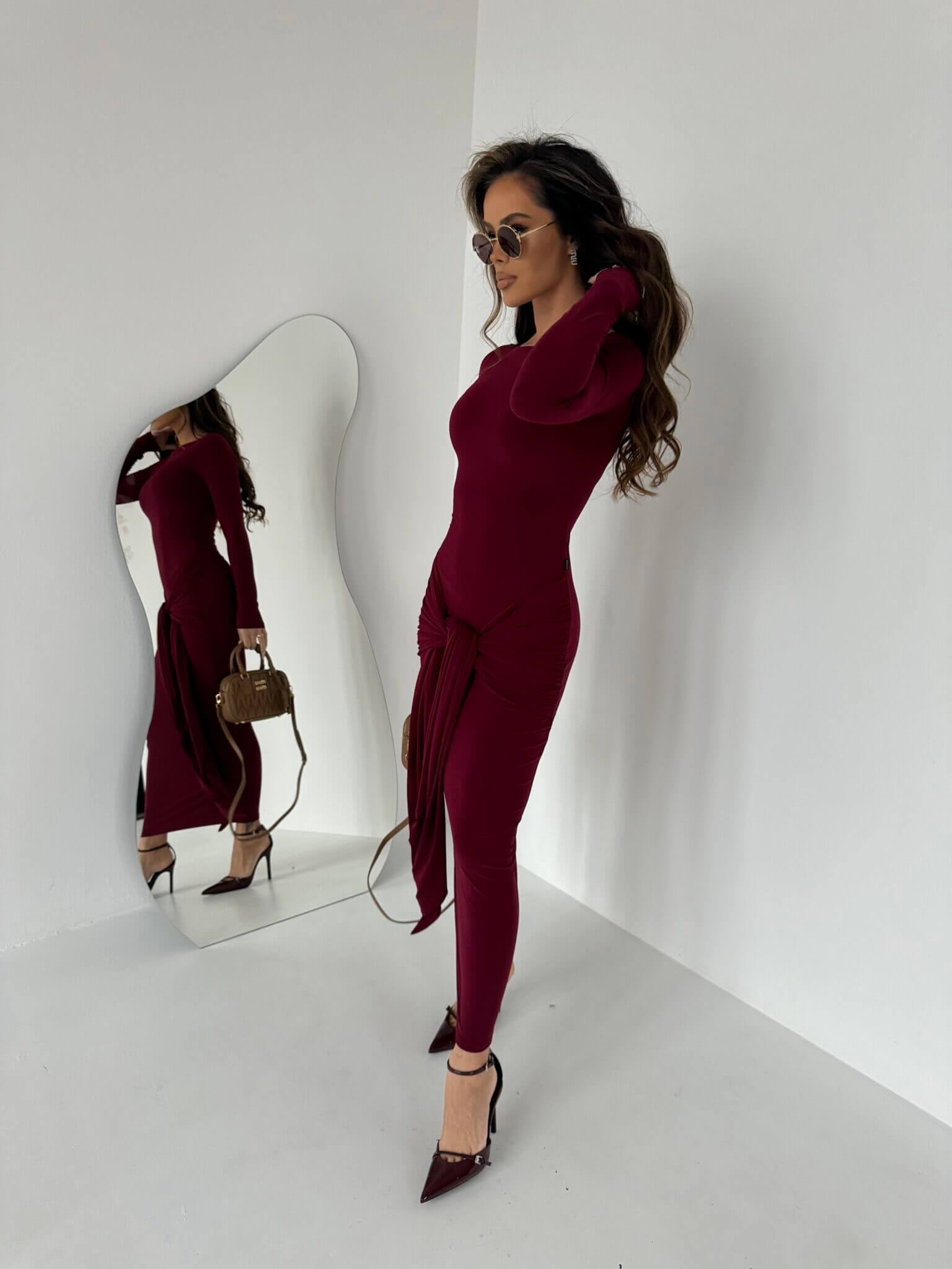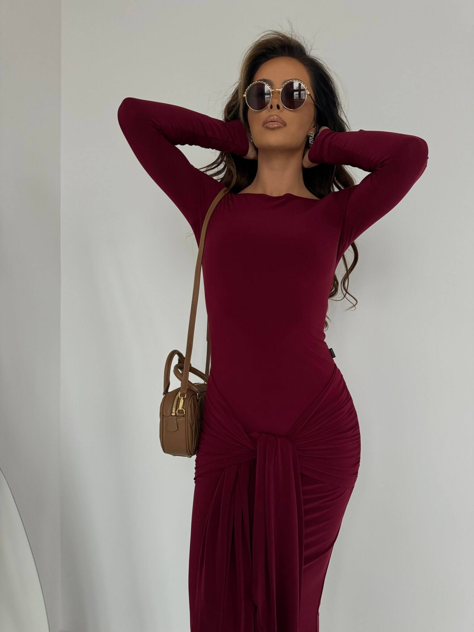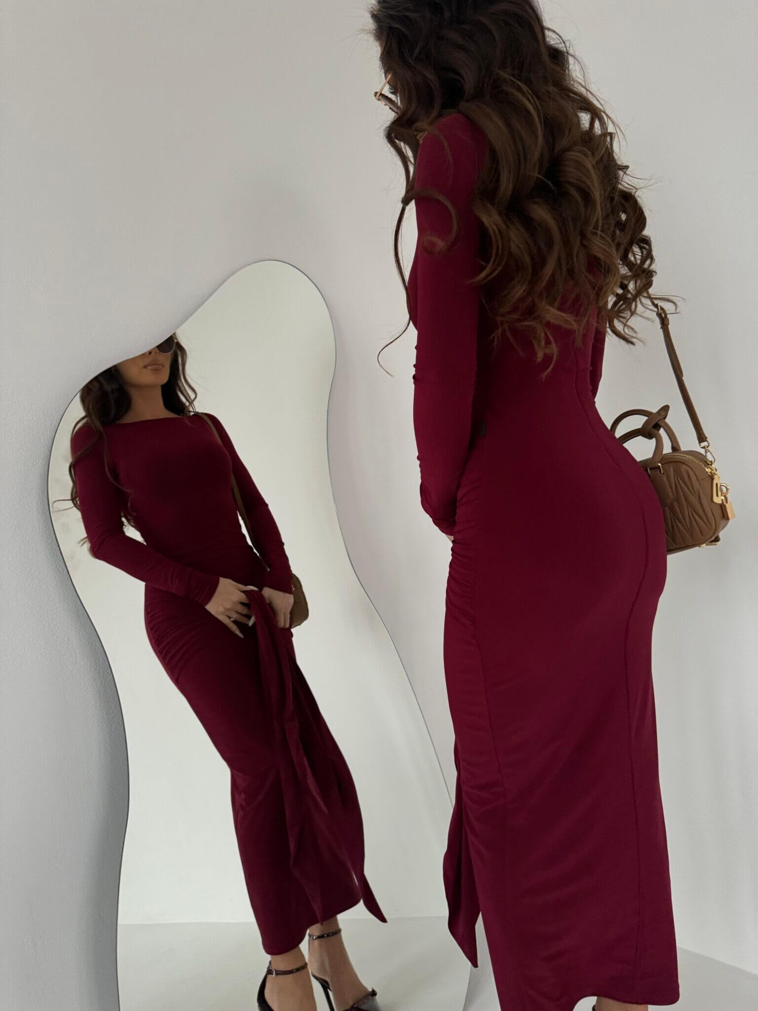Elegancka sukienka SAINT LA MANUEL z lejącego materiału to idealna propozycja dla kobiet ceniących sobie klasyczną elegancję połączoną z wygodą. Sukienka jest wykonana z delikatnie opływającego materiału, który doskonale dopasowuje się do sylwetki, podkreślając jej atuty. Model posiada długi rękaw, co dodaje jej szyku i sprawia, że jest idealna na chłodniejsze dni lub wieczorne wyjścia. Wiązanie w biodrach pozwala na dowolne dopasowanie i subtelne podkreślenie figury, a rozkloszowana, maxi spódnica nadaje kreacji lekkości i elegancji. To idealny wybór na wyjątkowe okazje, gdy chcesz wyglądać stylowo i czuć się swobodnie.