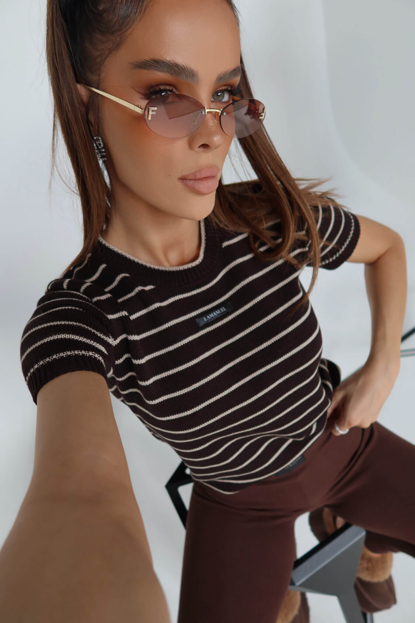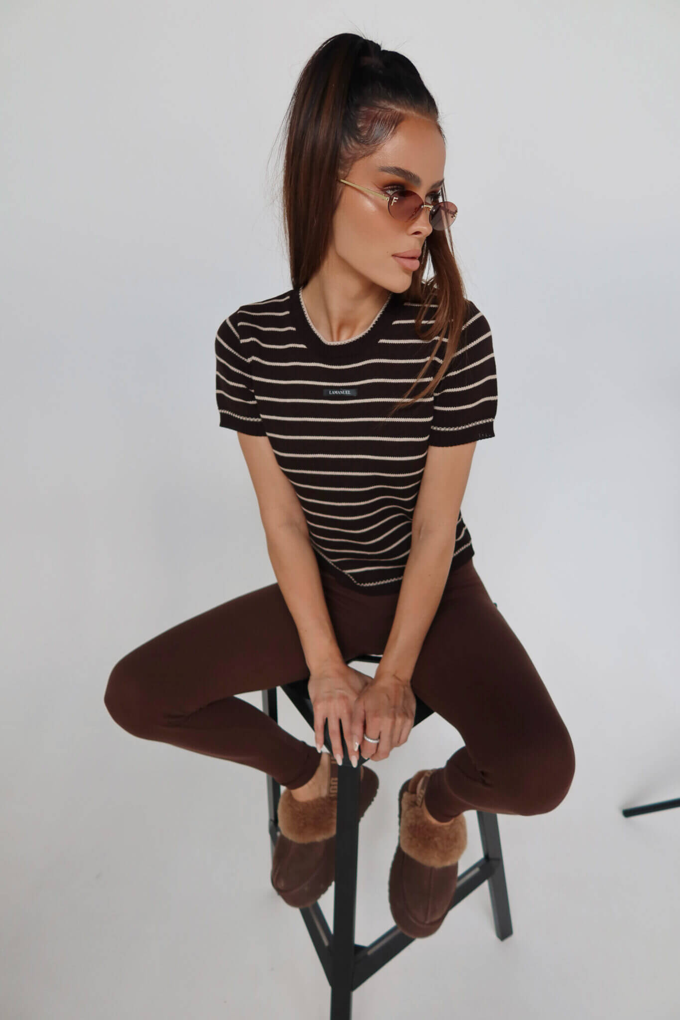 Krótko rękawowy sweter COFFE LAMANUEL z dzianiny o gęstym splocie i prostym, lekko dopasowanym fasonie. Model w ponadczasowy wzór w paski z okrągłym dekoltem i wykończeniem ściągaczowym przy szyi, rękawach i dole. Z przodu naszywka z logo, która subtelnie domyka look. Idealny do jeansów, spódnic i pod marynarkę – must have na cały rok.