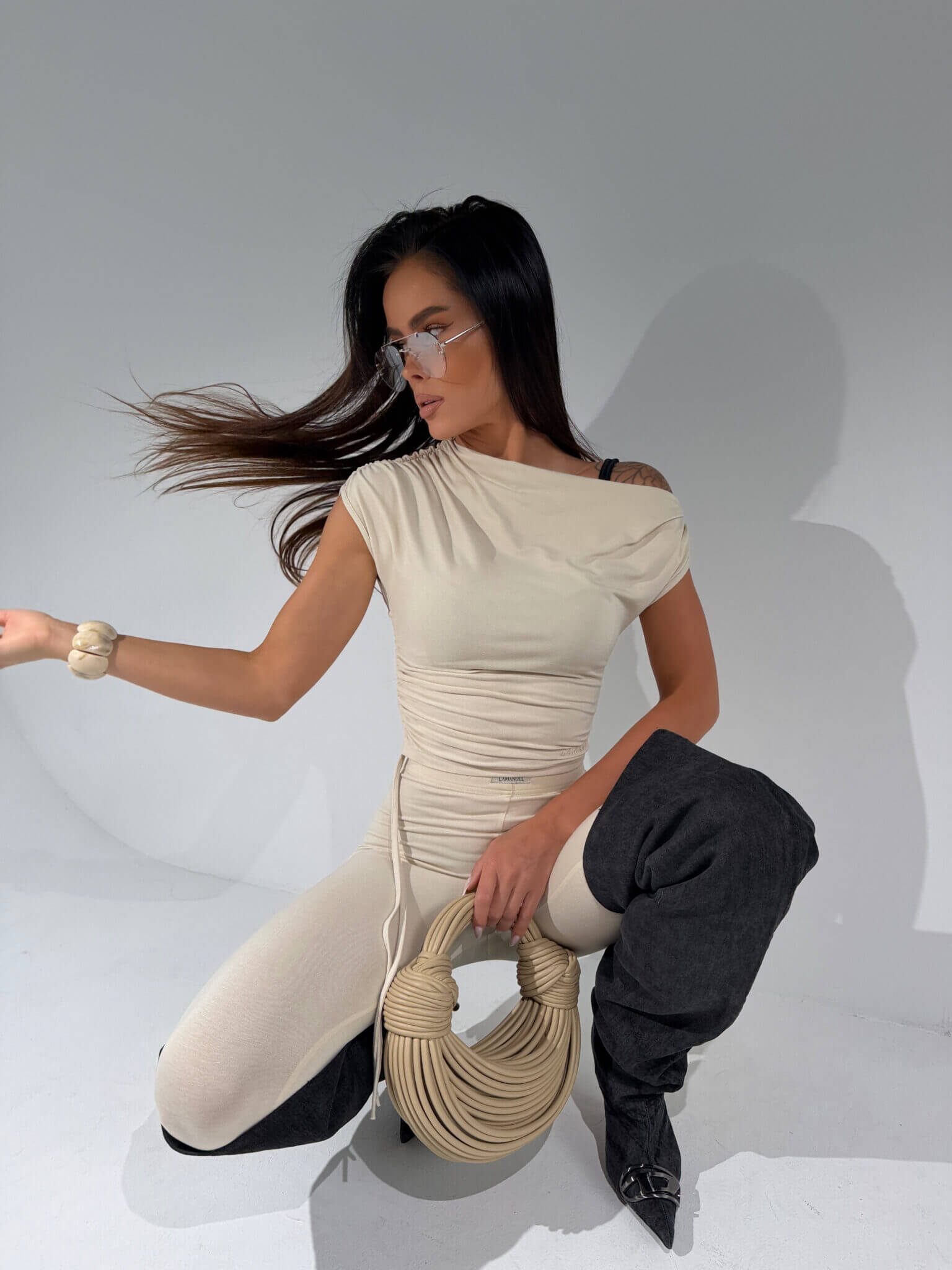 Top CHAOS LAMANUEL z elastycznej wiskozy, która idealnie dopasowuje się do sylwetki i miękko układa na ciele. Model z efektownym marszczeniem po boku oraz regulacją długości, dzięki czemu klientka może dopasować go do stylizacji – bardziej klasycznie lub w wersji skróconej. Asymetryczna linia ramion i delikatne drapowanie w okolicy talii podkreślają kobiece kształty i optycznie modelują sylwetkę. Materiał jest przyjemny w dotyku, oddychający i komfortowy w noszeniu, a jednocześnie trzyma formę. To propozycja, która świetnie sprawdzi się zarówno w komplecie, jak i jako osobny element do jeansów, marynarki czy spódnicy. Uniwersalny, sprzedażowy fason, który dobrze leży na różnych typach sylwetek i wpisuje się w aktualne trendy dopasowanych, kobiecych form.