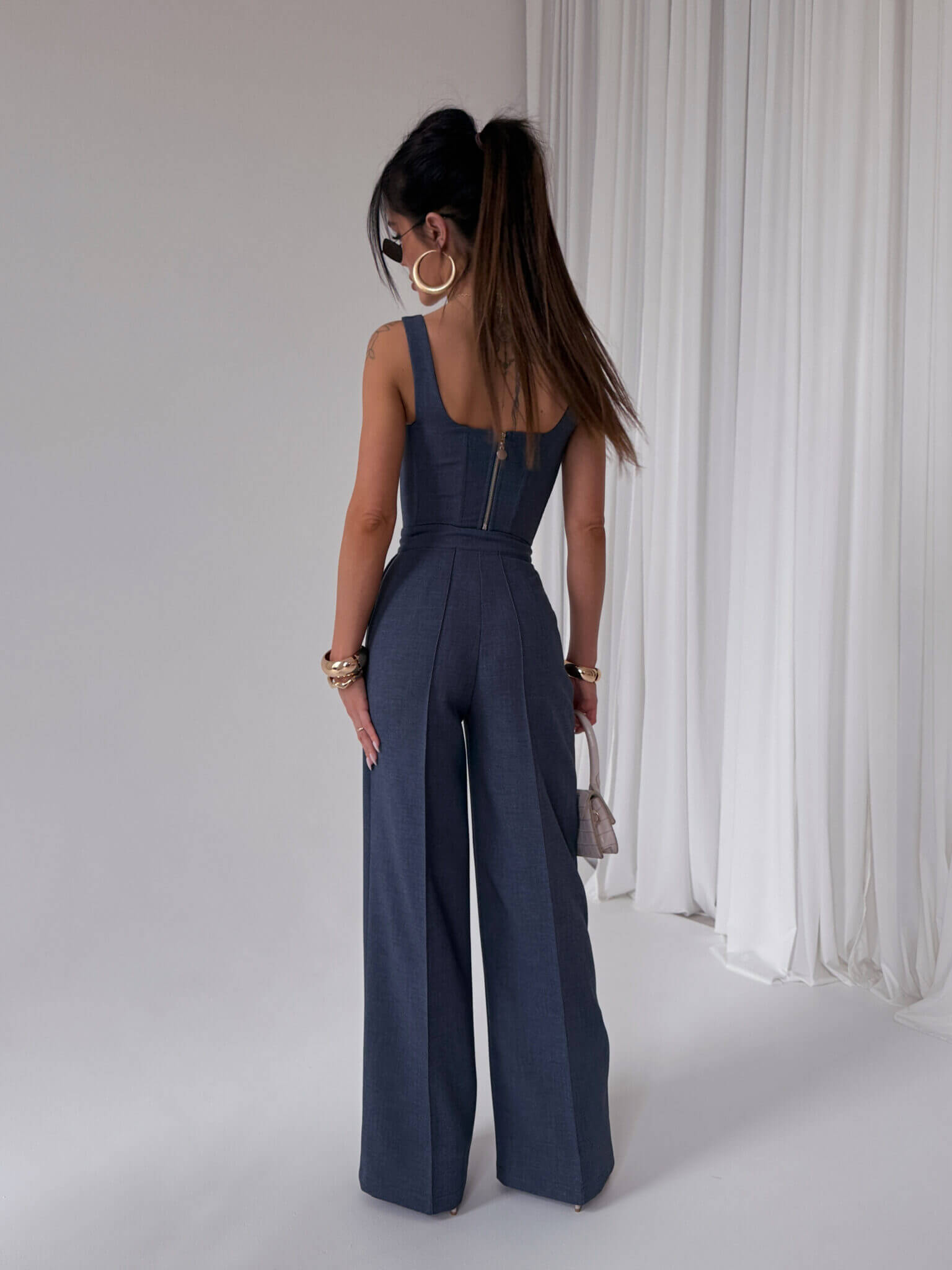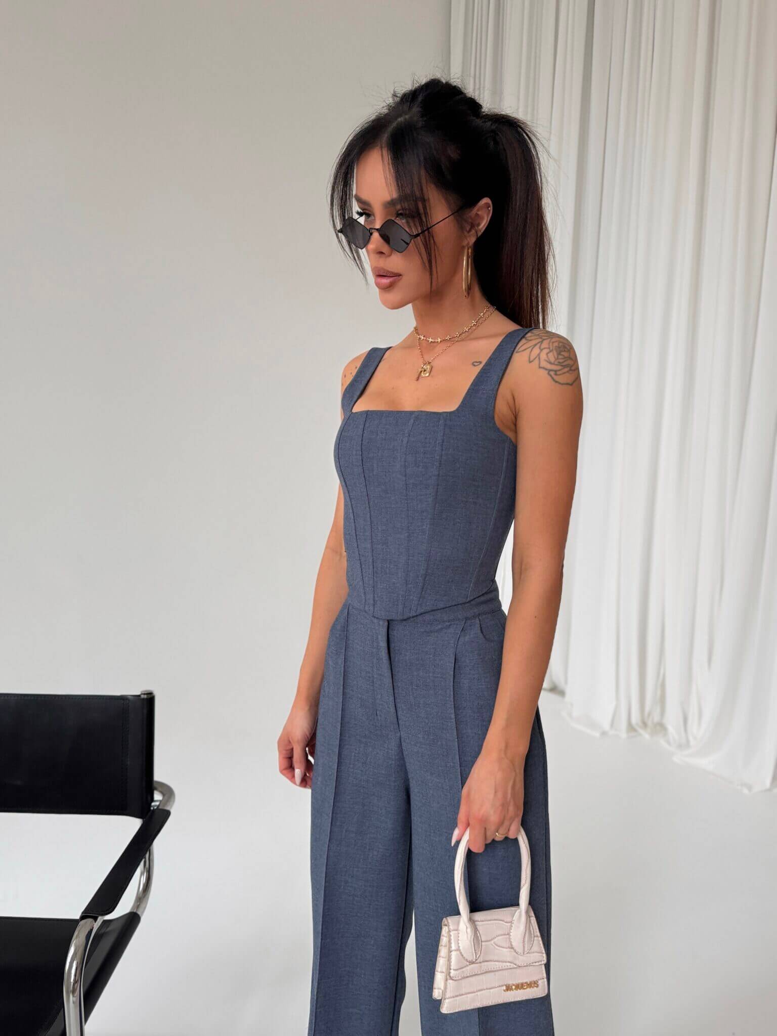 Gorset DYNASTY LA MANUEL o dopasowanym kroju, wykonany z eleganckiej tkaniny z subtelną fakturą. Posiada szerokie ramiączka i geometryczny dekolt podkreślający linię ramion. Model usztywniony przeszyciami i fiszbinami, które optycznie wysmuklają sylwetkę. Zapinany na suwak z tyłu, co zapewnia wygodne dopasowanie. Doskonały zarówno do klasycznych, jak i nowoczesnych stylizacji, świetnie komponuje się z szerokimi spodniami i dopasowanymi spódnicami oraz spodenkami.
