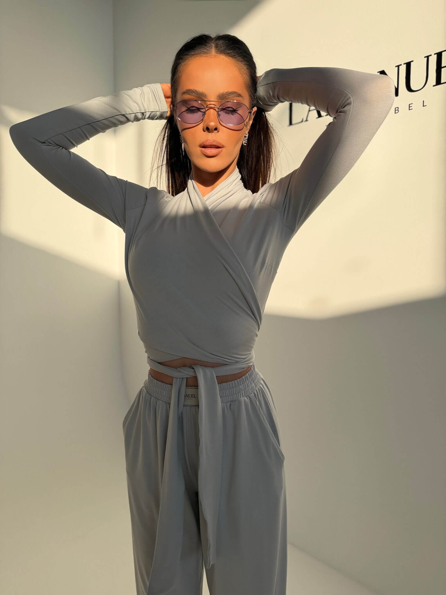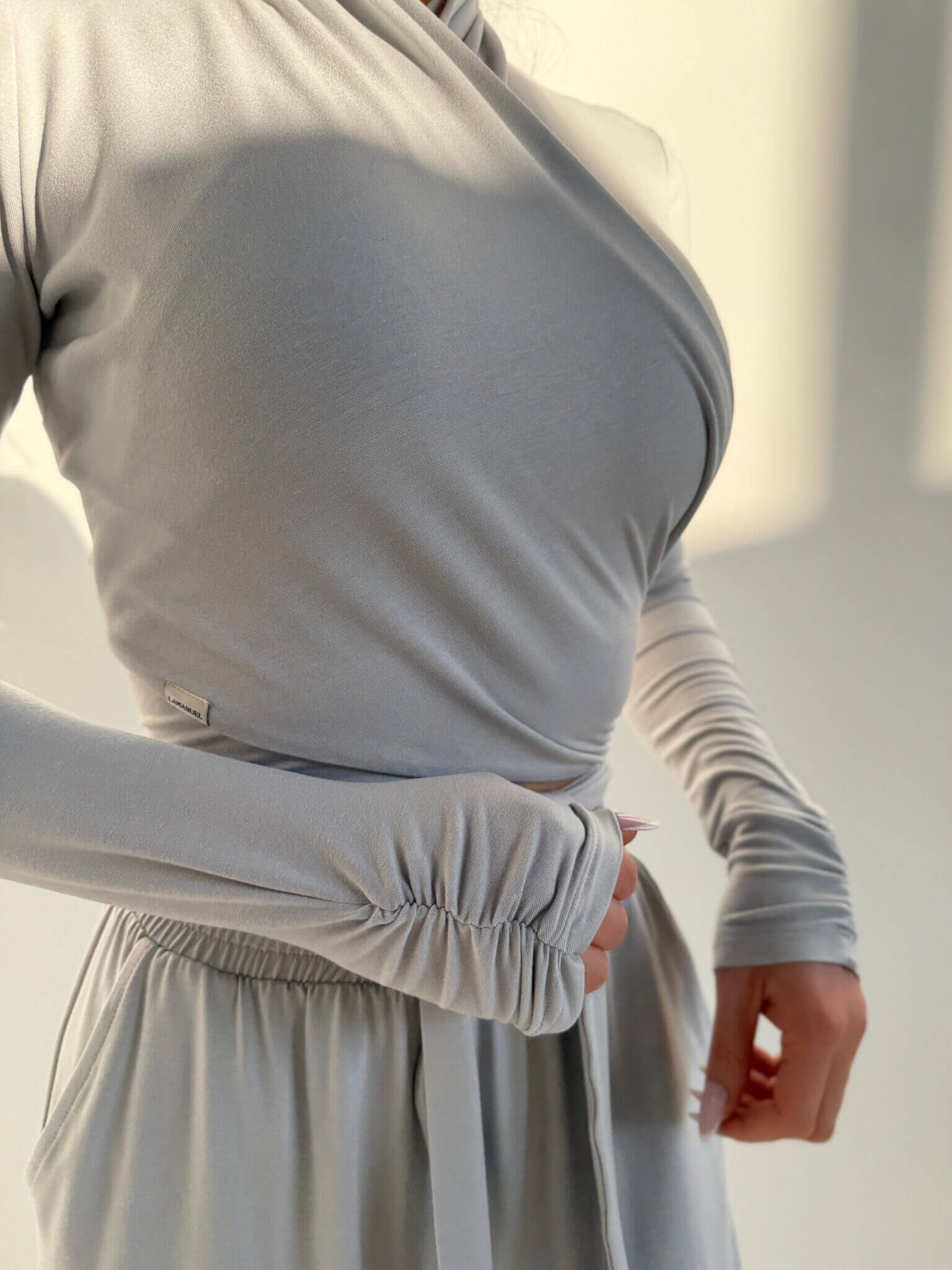 Miękki top RIOT LAMANUEL z elastycznej wiskozy, który dopasowuje się do sylwetki i podkreśla jej linię. Krzyżowe wiązanie daje możliwość noszenia na dwa sposoby – blisko przy szyi lub z dekoltem w kształcie V. Rękawy z delikatnym marszczeniem dodają lekkości i kobiecego charakteru. Z boku wszyta subtelna metka lamanuel. Model, który łączy wygodę z efektem „wow” – idealny do stylizacji dziennych i wieczornych.