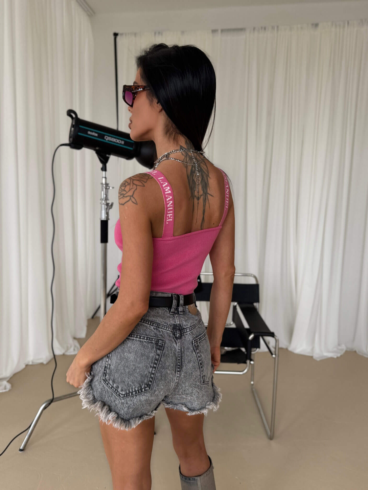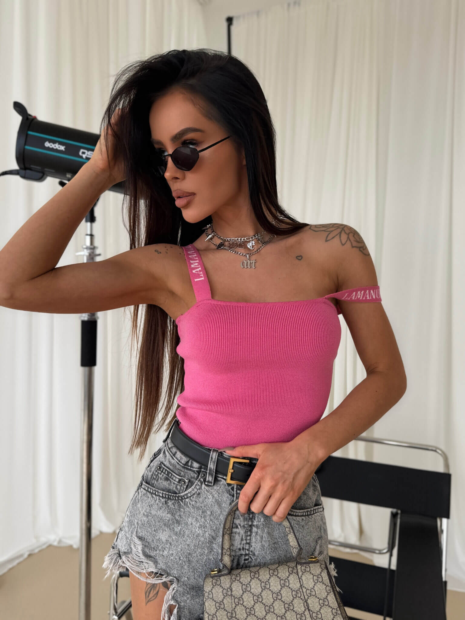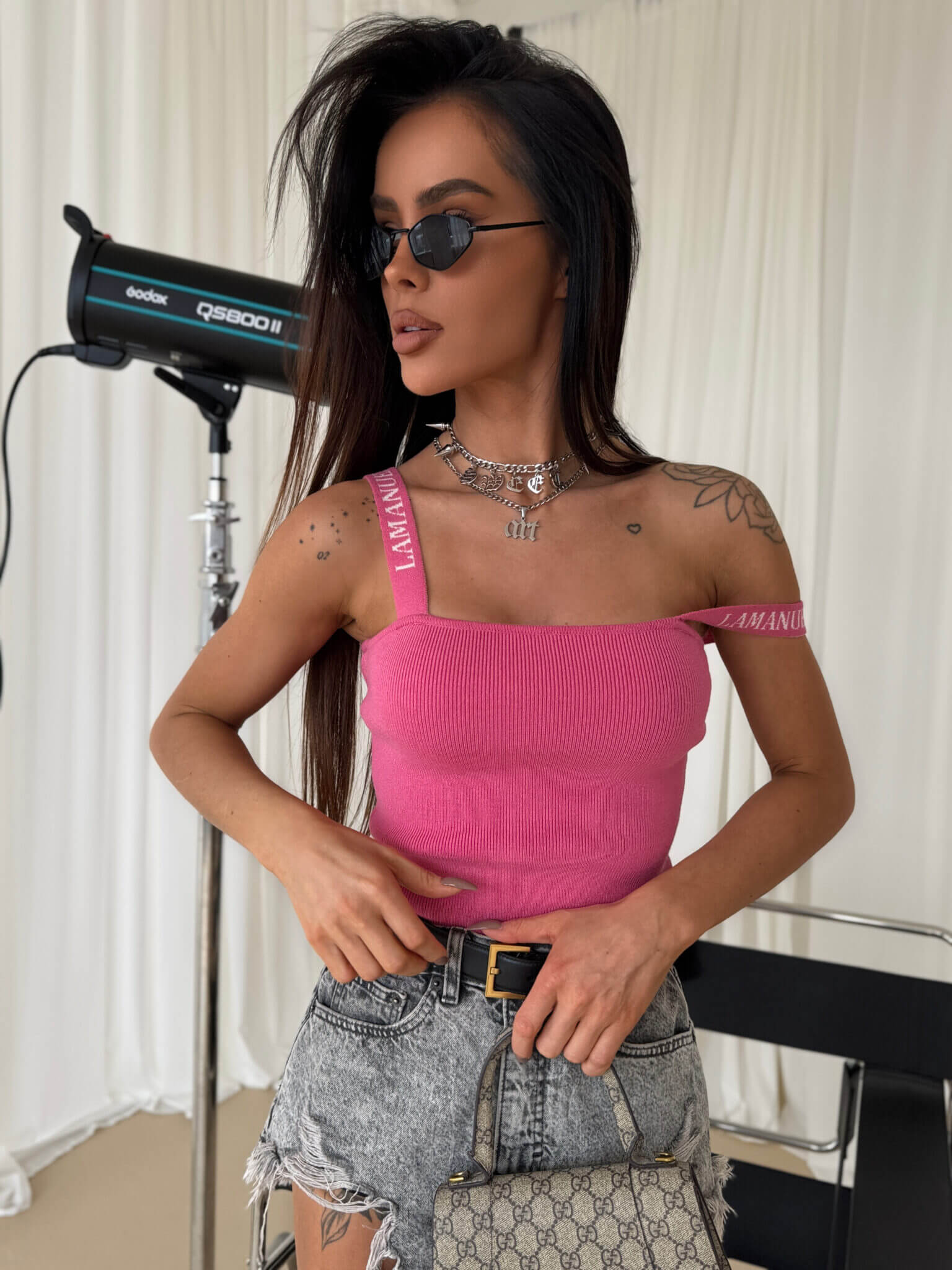 Prążkowany top SHADE LA MANUEL wykonany z wysokiej jakości dziewiarskiej przędzy, dopasowujący się do sylwetki. Posiada elastyczne ramiączka z logo, które nadają mu sportowego, ale jednocześnie eleganckiego charakteru. Minimalistyczny design sprawia, że świetnie komponuje się zarówno z jeansami, jak i bardziej eleganckimi stylizacjami.