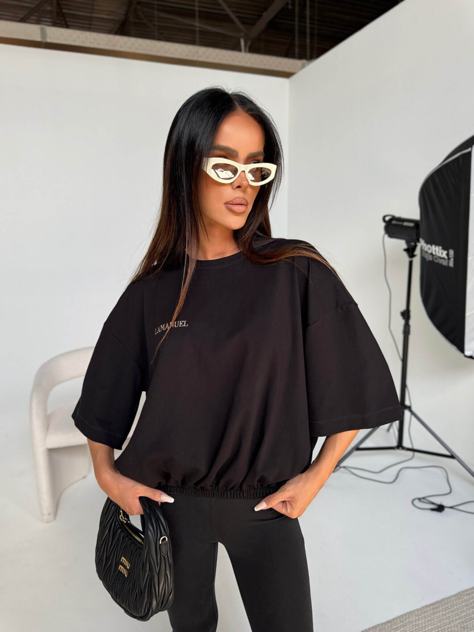 T-shirt HUNT LAMANUEL o oversize’owym kroju z krótkim rękawem i subtelnym logo lamanuel na piersi. Uszyty z przyjemnej w dotyku bawełnianej dzianiny, zapewnia maksymalny komfort noszenia i swobodę ruchów. Dół wykończony elastyczną gumką, dzięki czemu możesz nosić go luźno lub lekko podciągnięty, eksponując talię. Uniwersalny fason sprawdzi się zarówno w sportowych zestawieniach, jak i w codziennych, minimalistycznych stylizacjach.