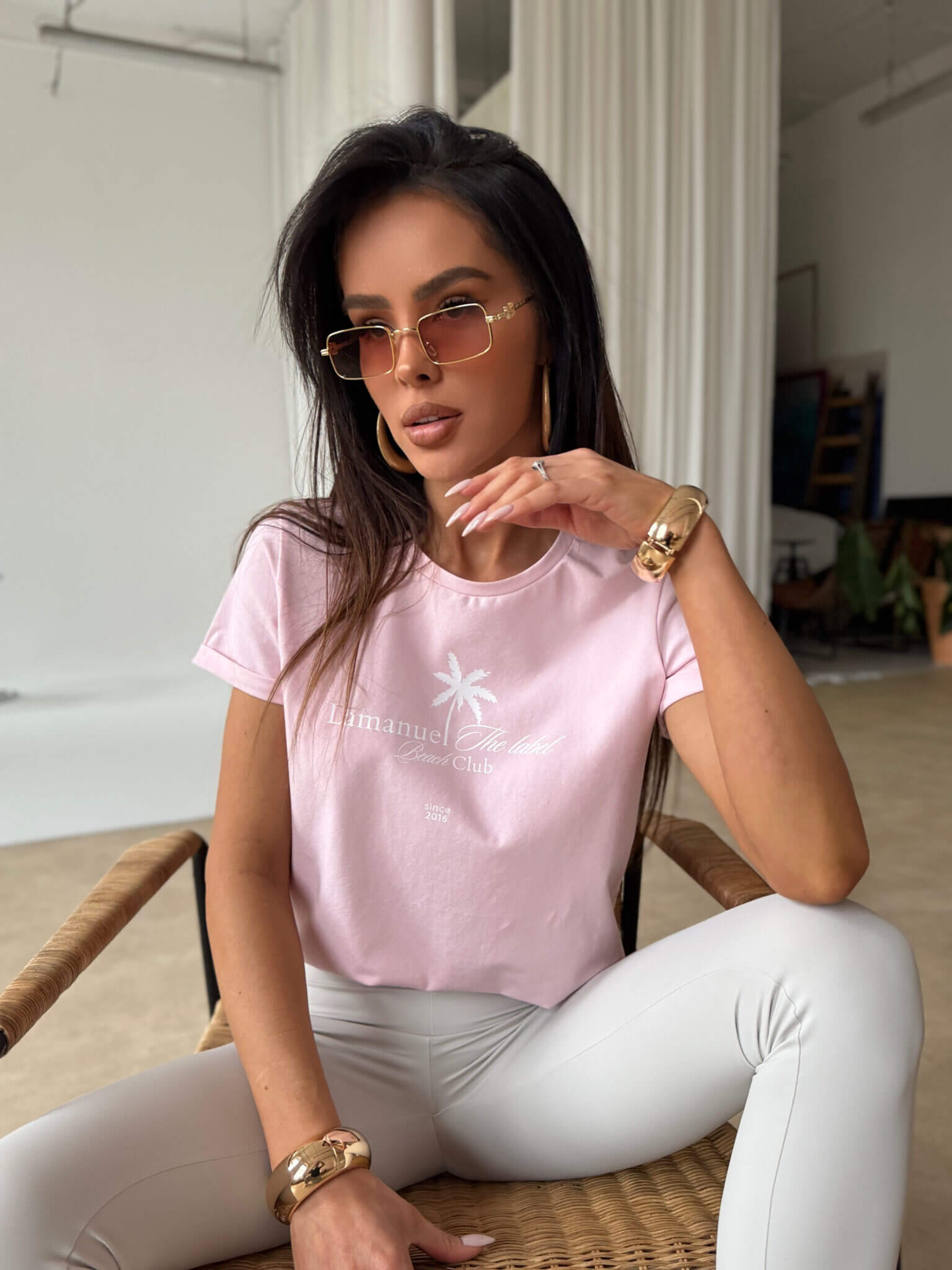 Ten t-shirt MALIBU LA MANUEL to połączenie klasyki i wakacyjnego luzu. Wykonany z miękkiej, przyjemnej w dotyku tkaniny, zapewnia komfort noszenia na co dzień. Jego minimalistyczny design urozmaicony jest subtelnym nadrukiem z motywem palmy oraz logo marki, co nadaje mu unikalnego charakteru. Podwinięte rękawki dodają mu lekkości i swobodnego stylu. Doskonale sprawdzi się zarówno w casualowych stylizacjach, jak i w zestawach na letnie dni. Można go połączyć ze skarpetkami z tym samym motywem, tworząc spójny komplet.