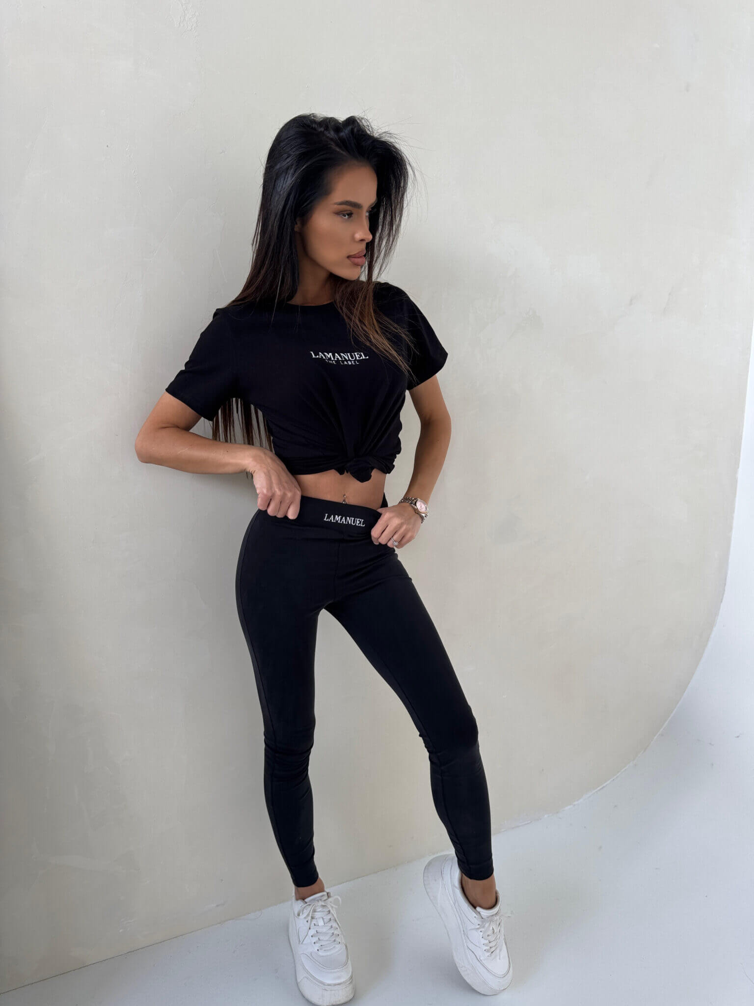 Klasyczny t-shirt o prostym kroju MIRA LAMANUEL wykonany z miękkiej, elastycznej dzianiny. Model z okrągłym dekoltem, zakończony podwójnym szwem. Na piersi haftowane logo marki. Koszulka o standardowej długości – na zdjęciach przedstawiona w stylizacji z zawiniętym dołem. Idealna baza do codziennych zestawów.